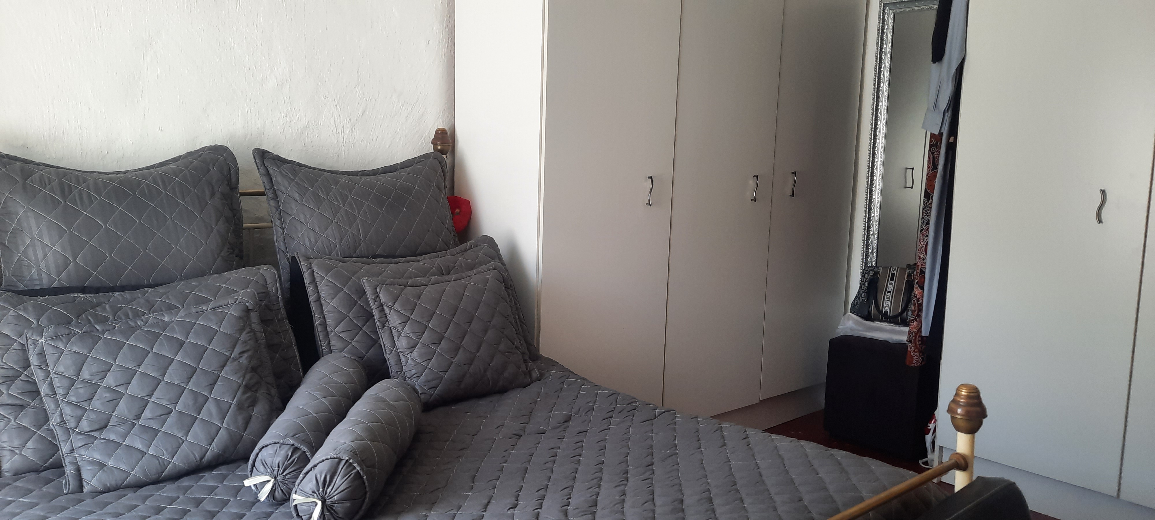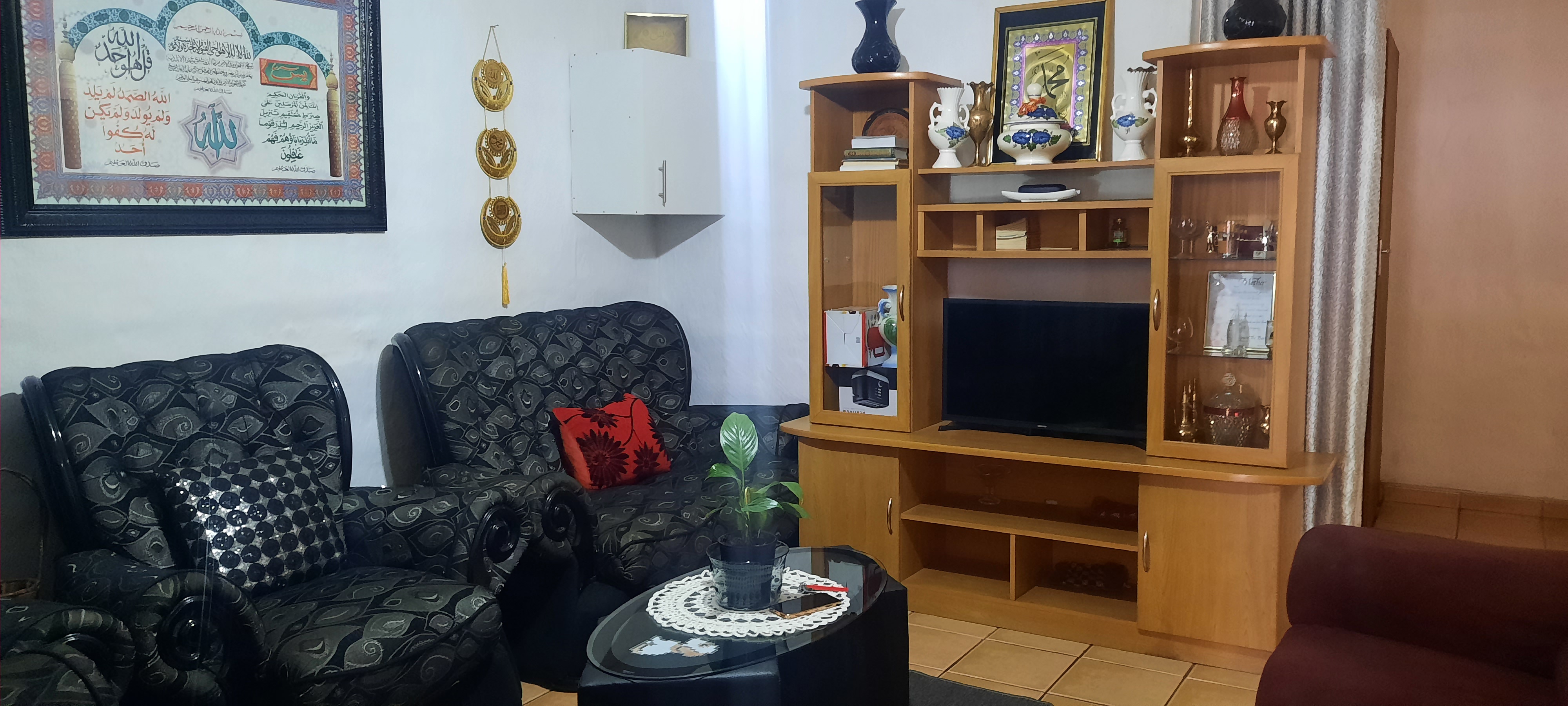 The property features a generous lounge area and a kitchen equipped with built-in cupboards. A bathroom with a shower serves the household, with 2 bedrooms conveniently located on the ground floor and 3 upstairs, providing ample living space for your family or guests.
