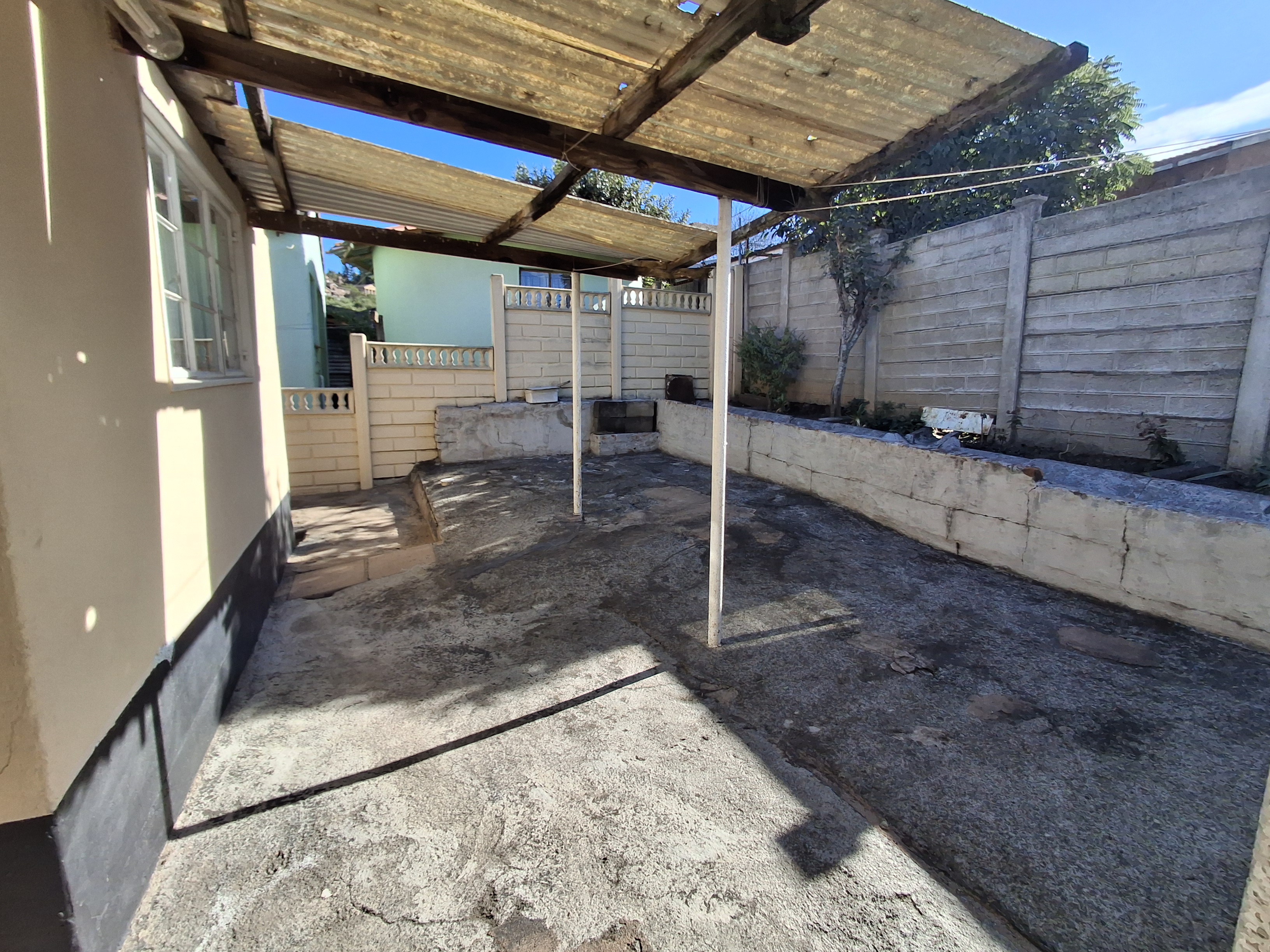 Exterior - The property is set in a neat fully walled yard, offering security and peace of mind. The front yard is attractively tarred and feature a well kept garden, enhancing the homes curb appeal. A closed garage provides secure parking for one vehicle while the paved outer area can comfortable accommodate two additional cars.