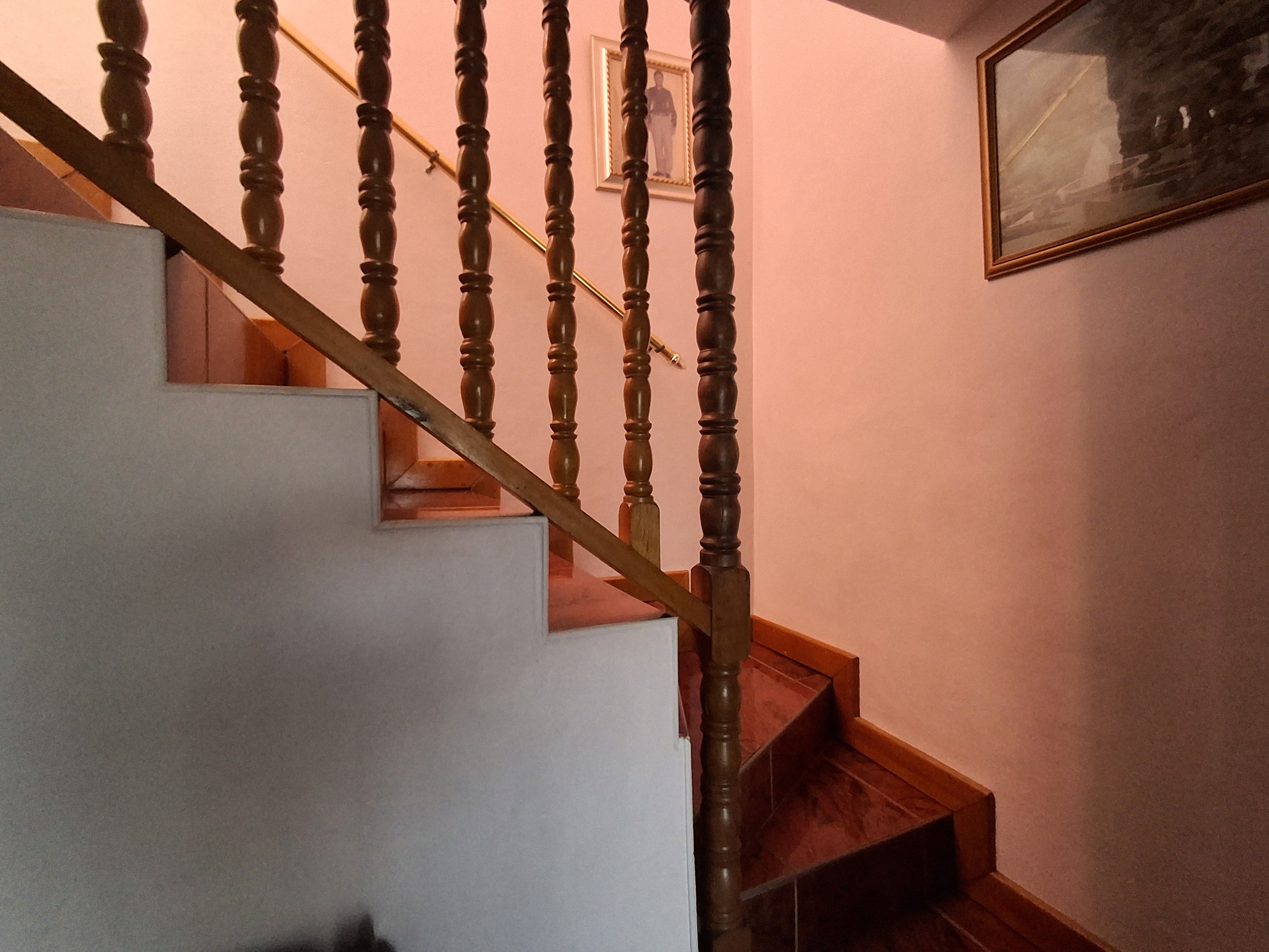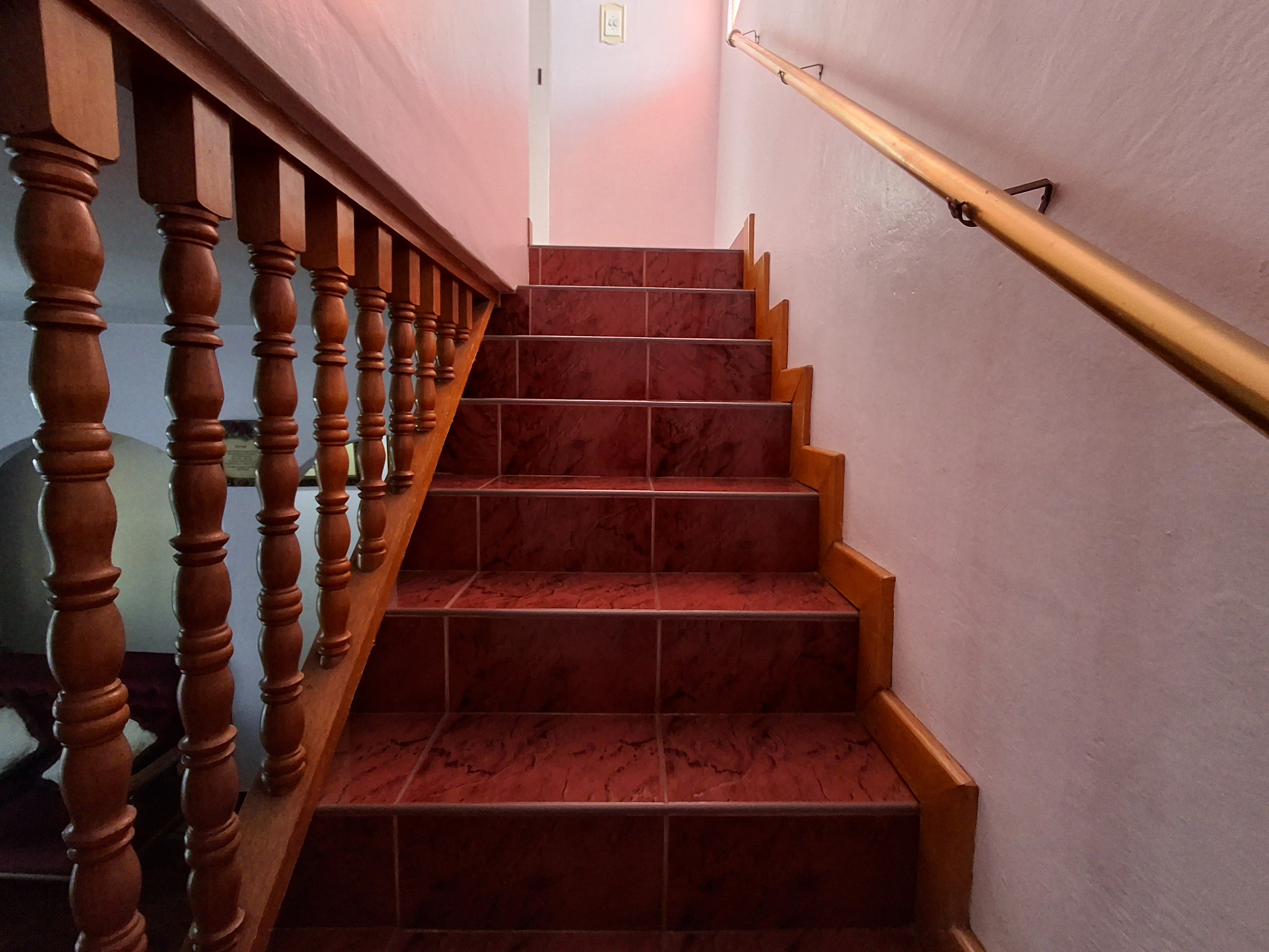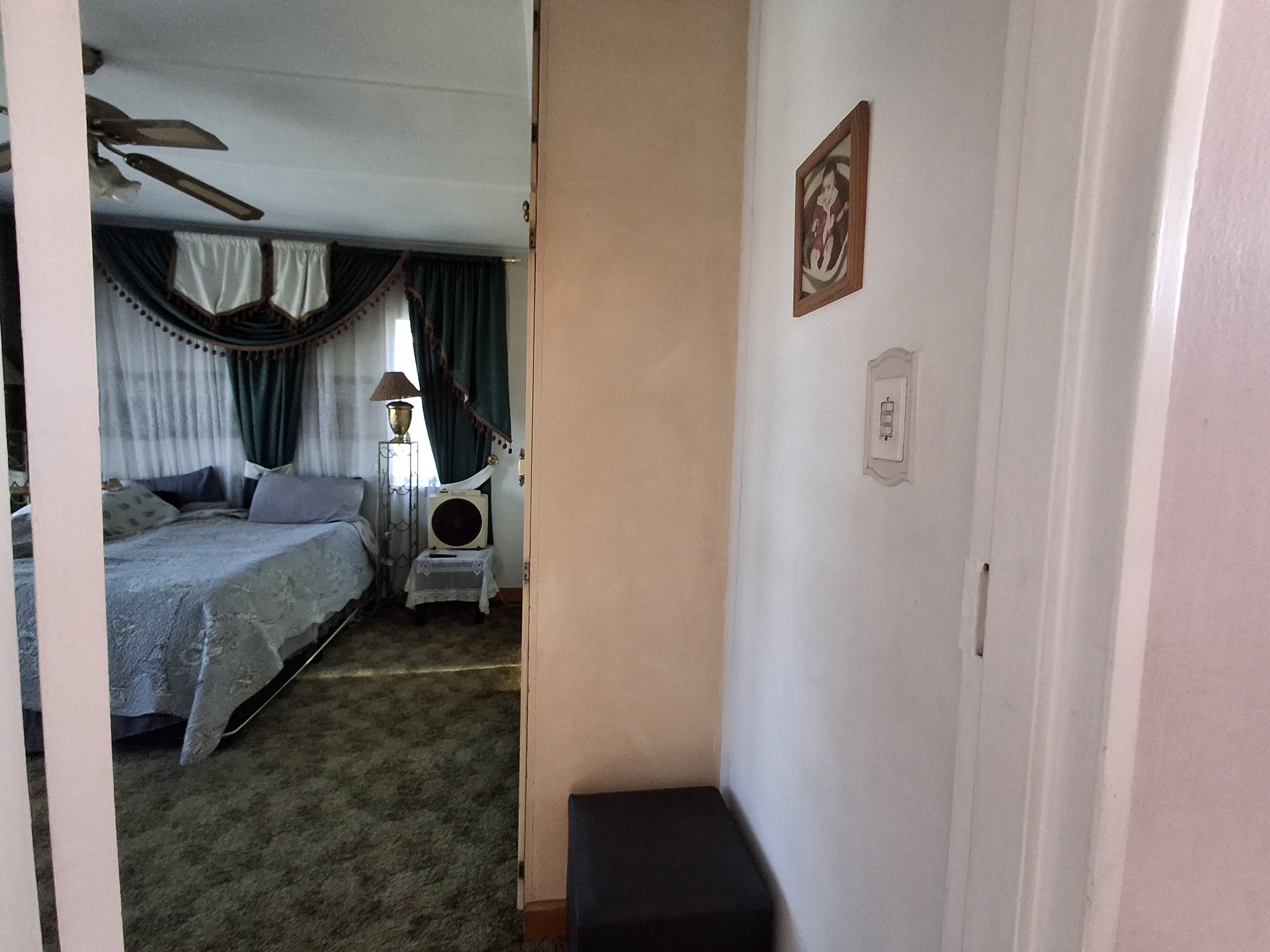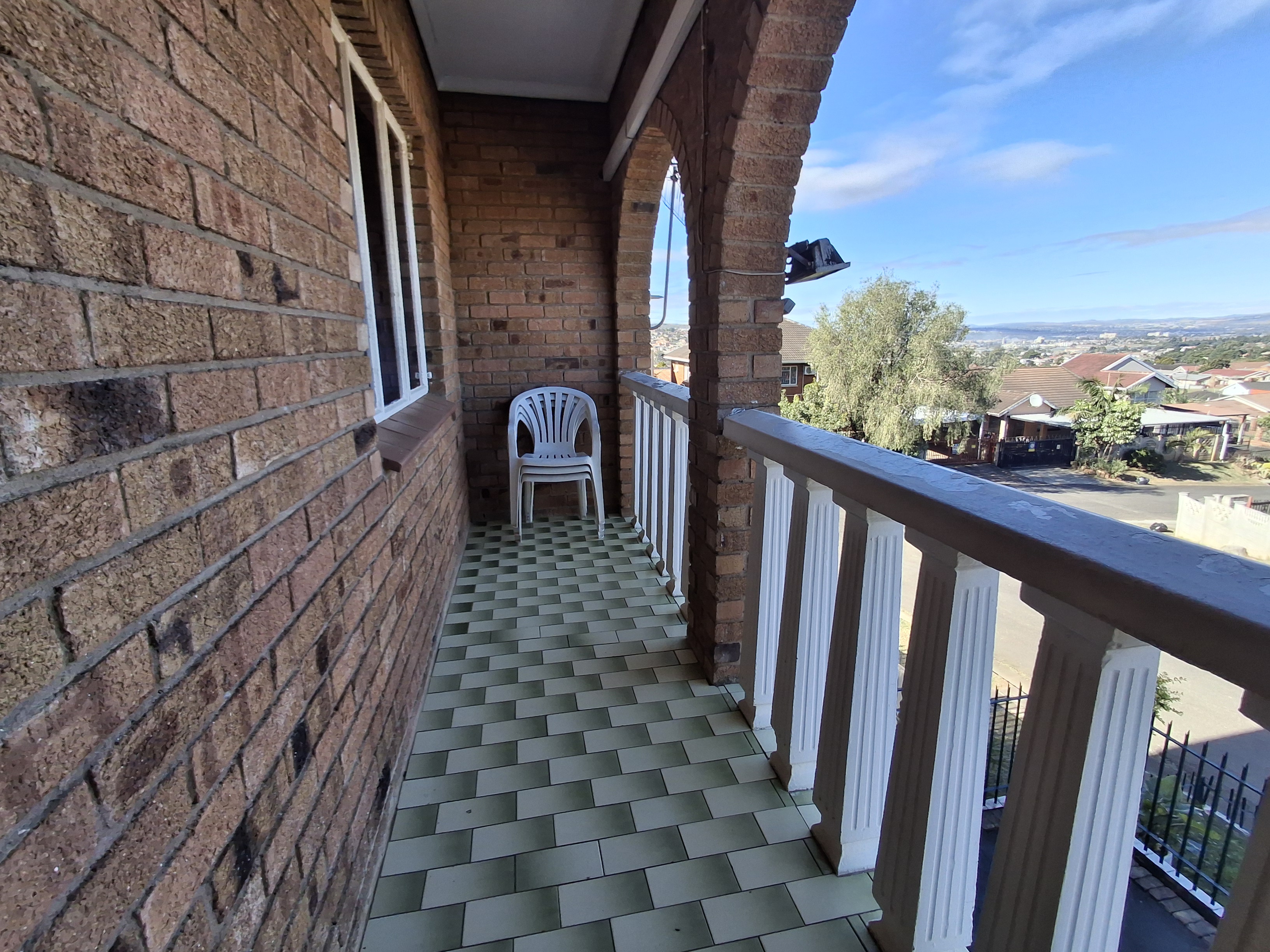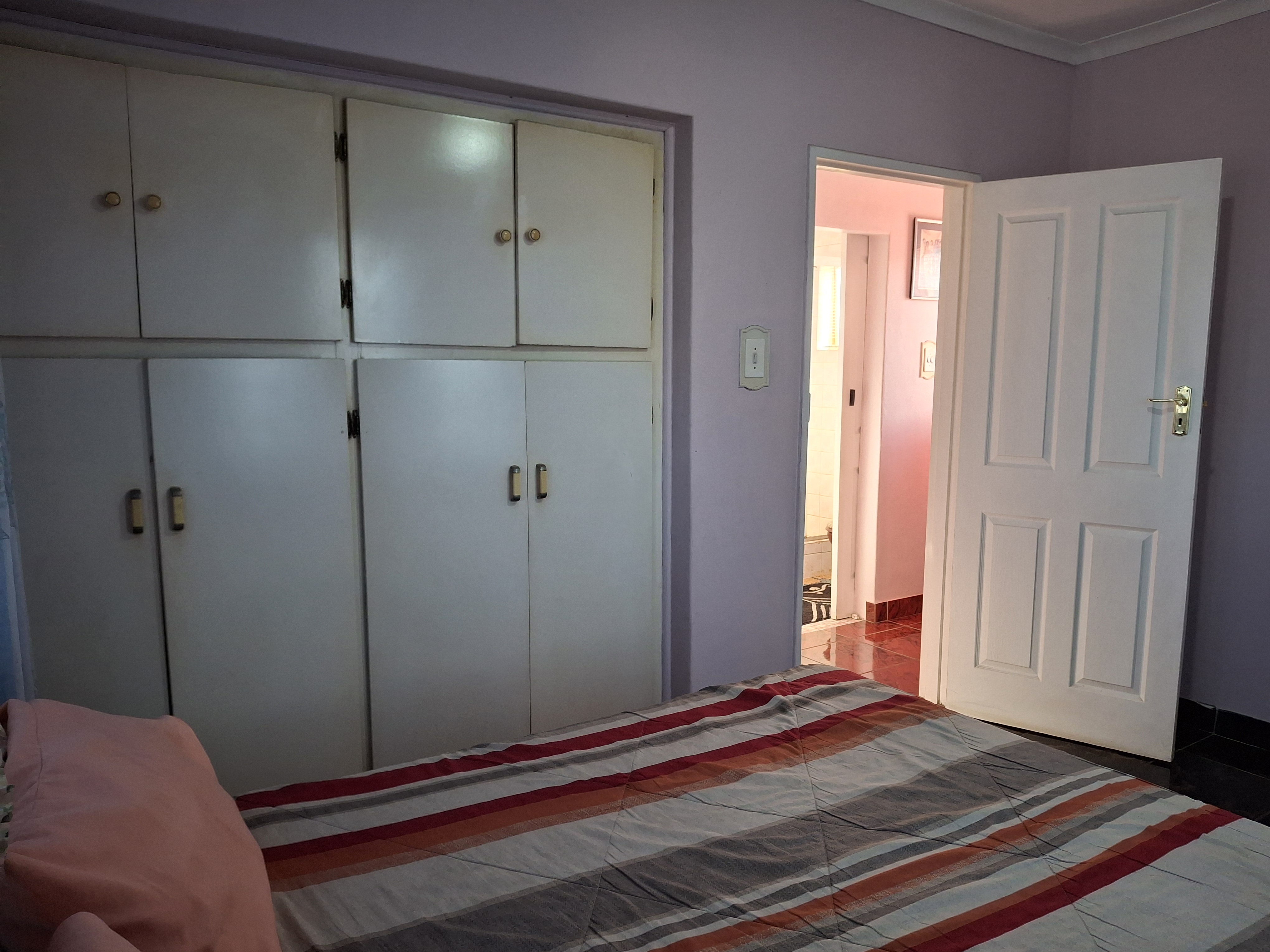 Upstairs - The upper floor is a private haven, boasting a large main bedroom that includes a relaxing bathtub. A door opens onto a private balcony, providing a lovely space to unwind. There is also a second upstairs bedroom fitted with built -in cupboards and a common bath and shower.