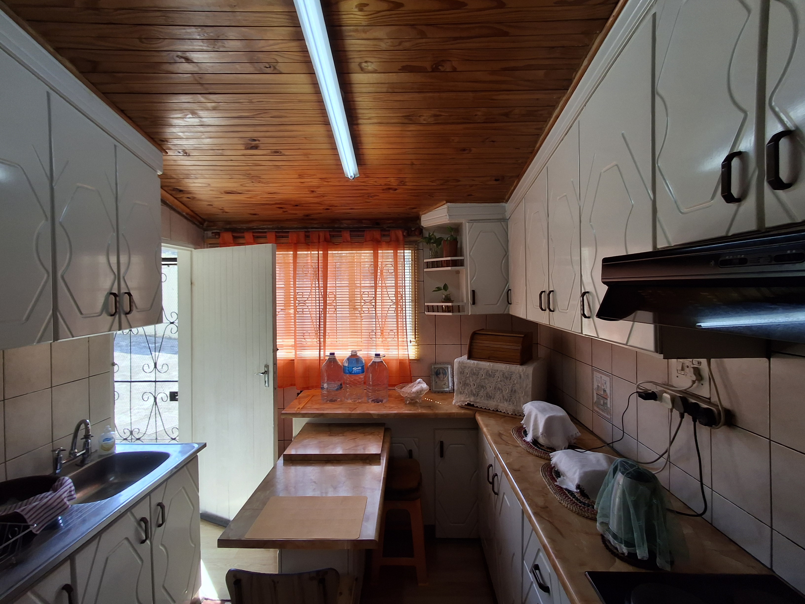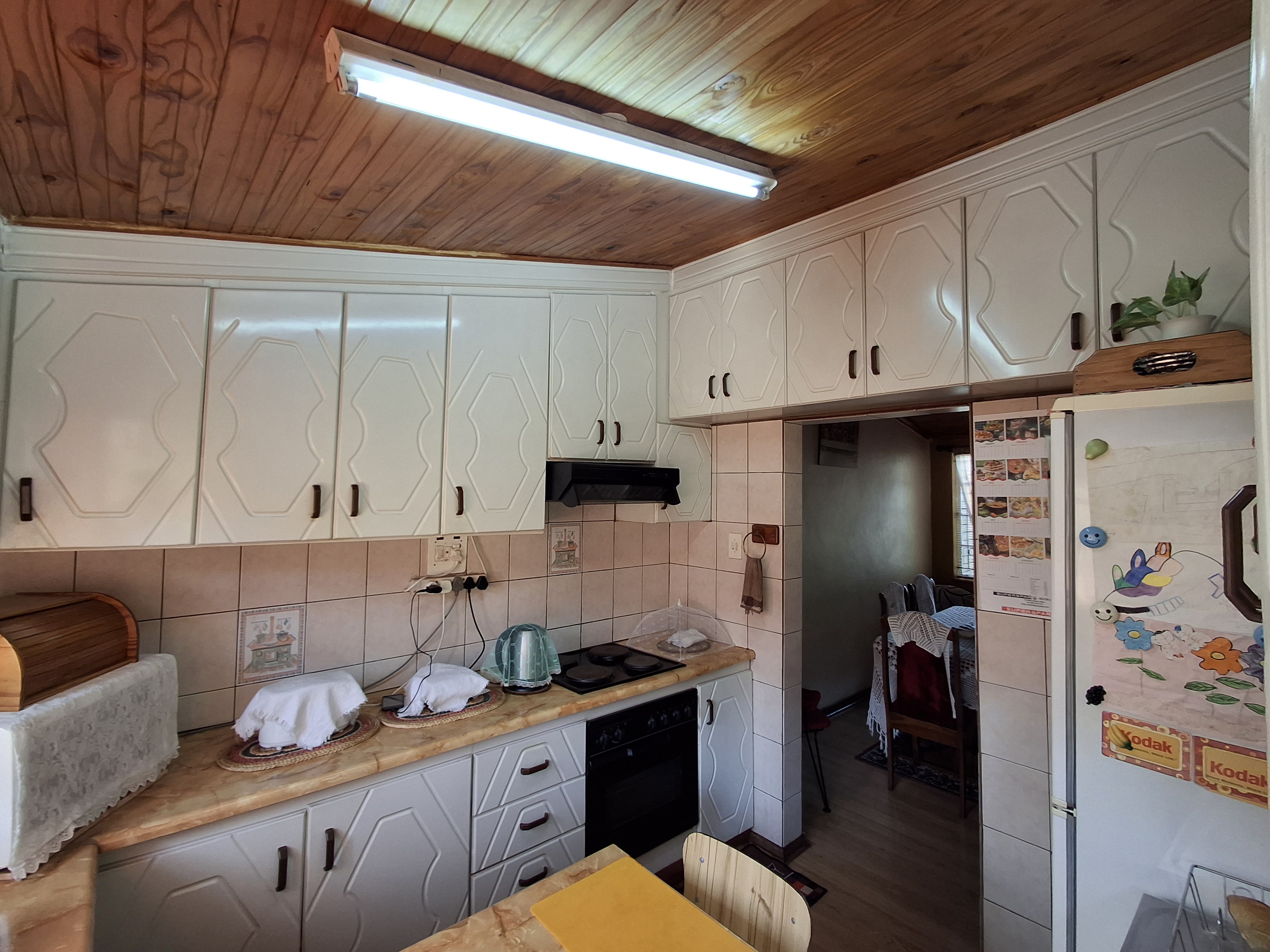 The kitchen is fully fitted with ample cupboard space, providing a practical and functional layout.