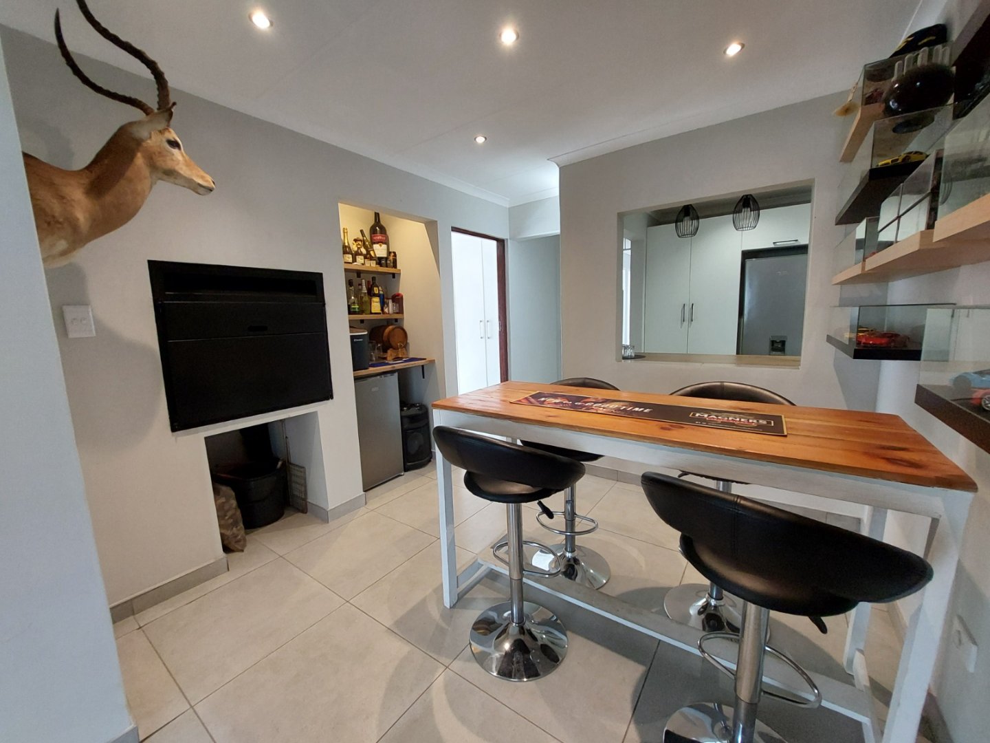 An Outdoor Oasis: Push open the doors to your personal resort. A magnificent lapa, featuring a chic built-in bar and braai, is the centerpiece of a sprawling backyard designed for unforgettable alfresco moments. Picture sun-splashed afternoons by the sparkling pool, the sound of joyful laughter filling the air as you host the perfect weekend get-together.