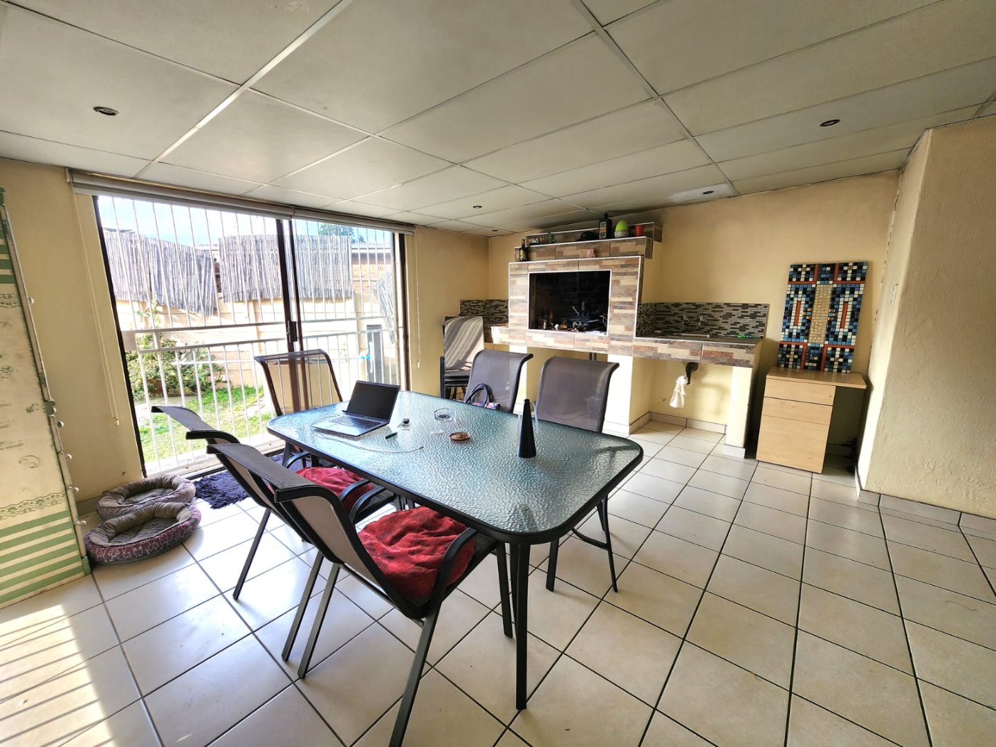 At the heart of the home is a versatile indoor entertainment area with a built in braai. Step outside to discover an inviting swimming pool and a covered outdoor patio with a built in braai as well, perfect for hot summer days, weekend braais, or relaxed family gatherings under the stars.