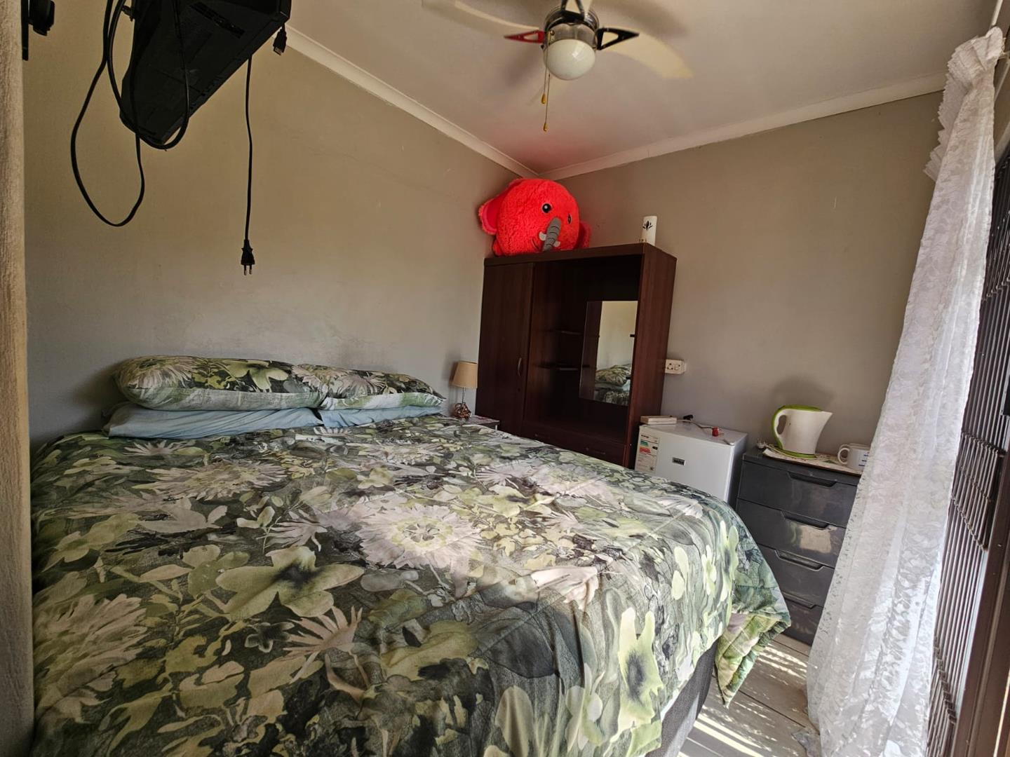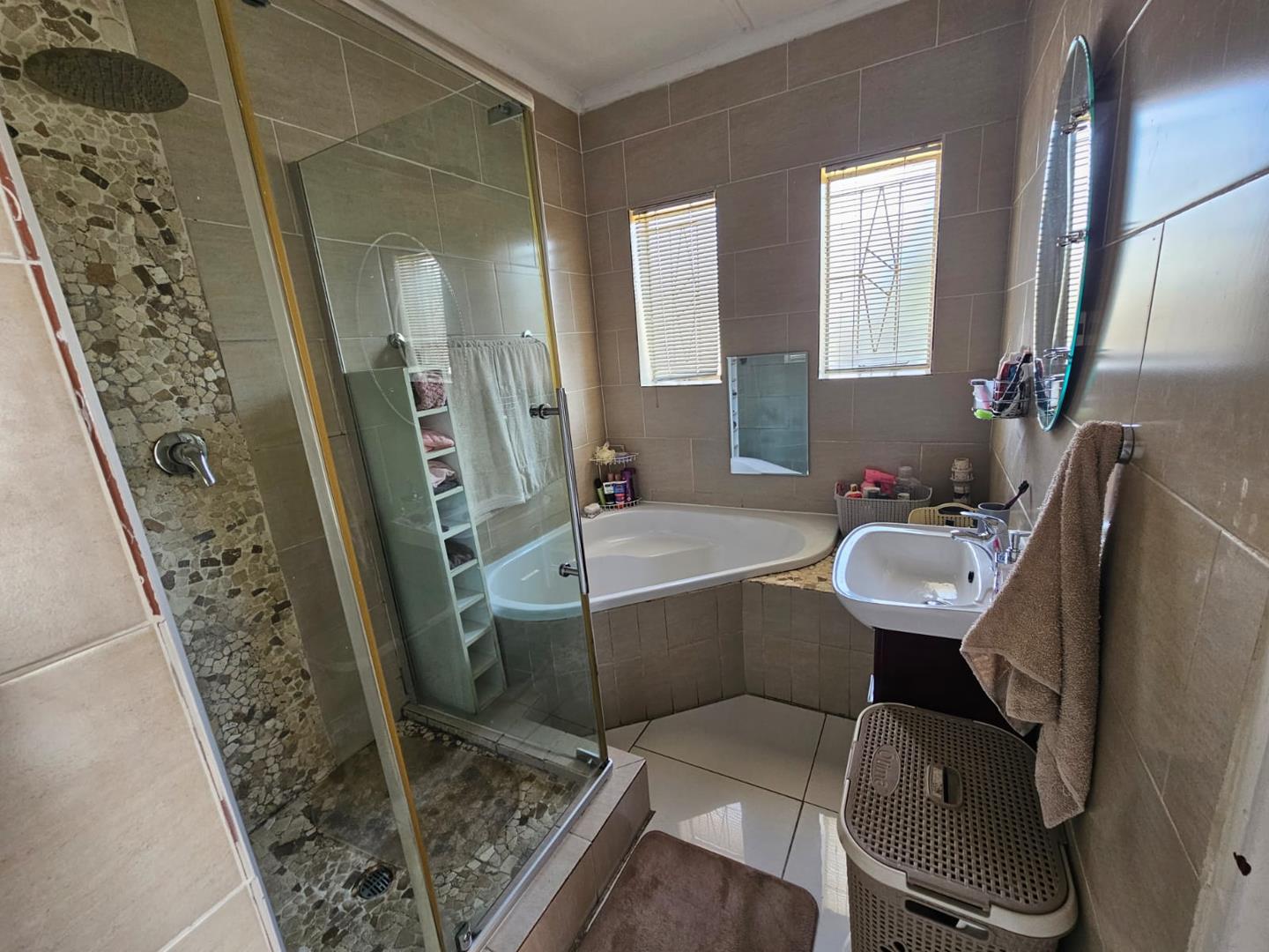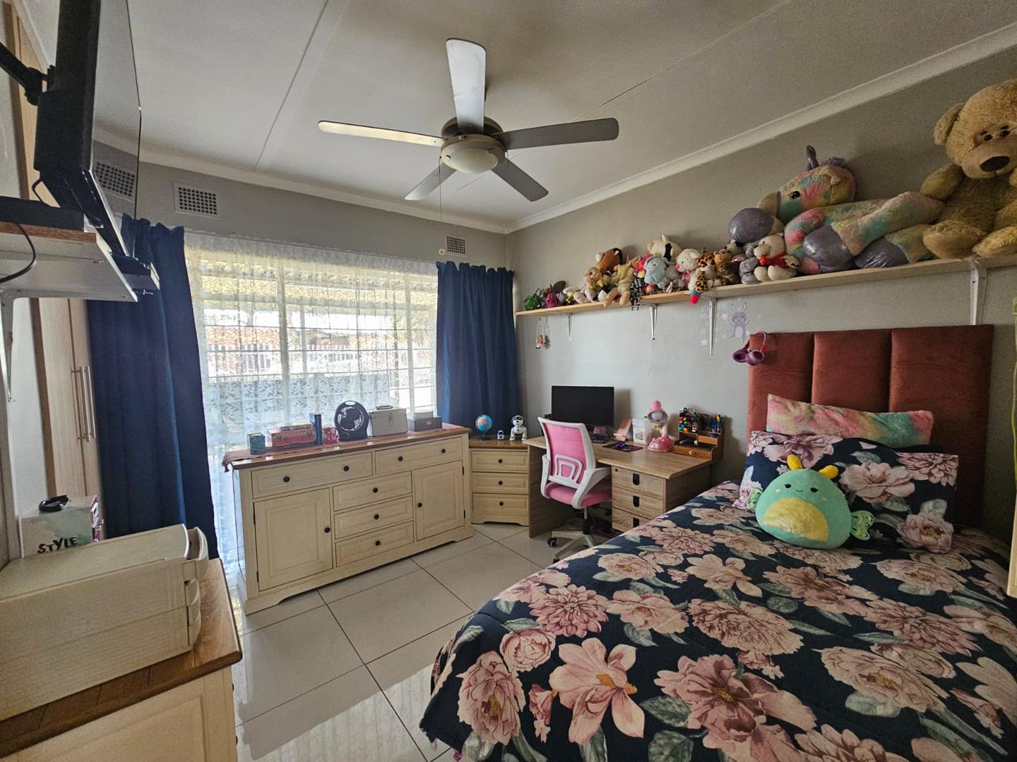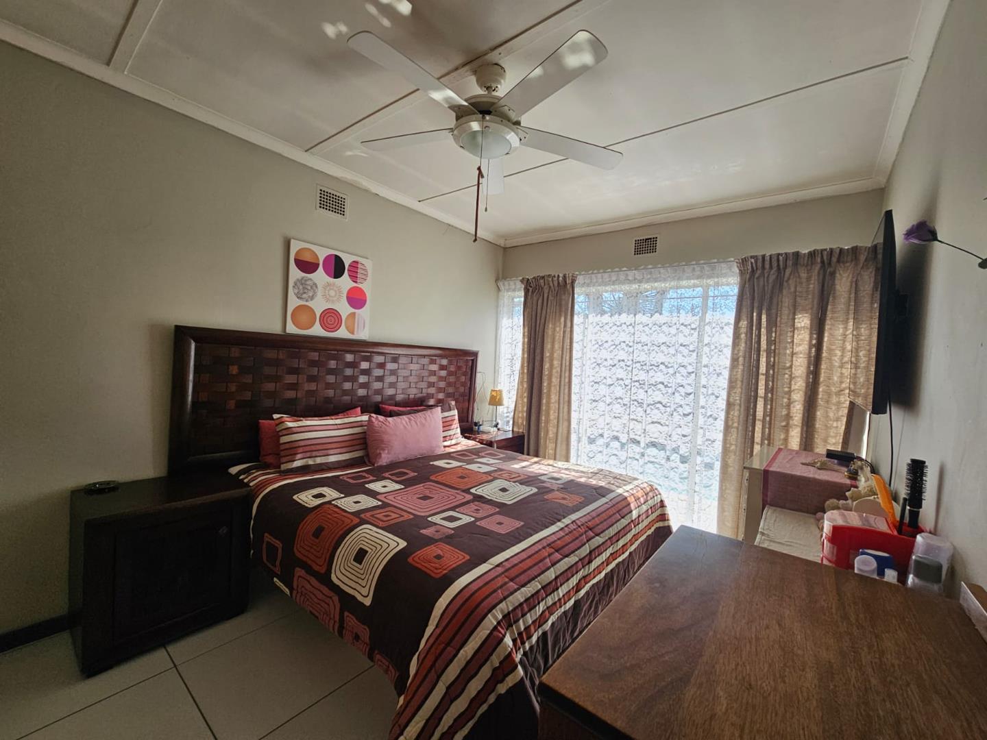 The scullery provides additional space for kitchen tasks. There are three cozy bedrooms and a modern bathroom. Each bedroom includes built-in cupboards (BIC), offering ample storage. The property boasts a large carport with space for six vehicles and two garages for secure parking.