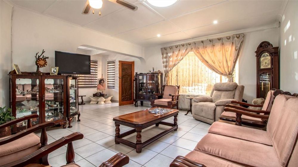The family room provides extra space for relaxation, while the main bedroom boasts a luxurious en-suite bathroom. With three spacious bedrooms and two bathrooms, each with built-in cupboards (BIC), this home offers both comfort and practicality. Outside, enjoy ample parking with two carports and four garages, ideal for vehicles or storage.