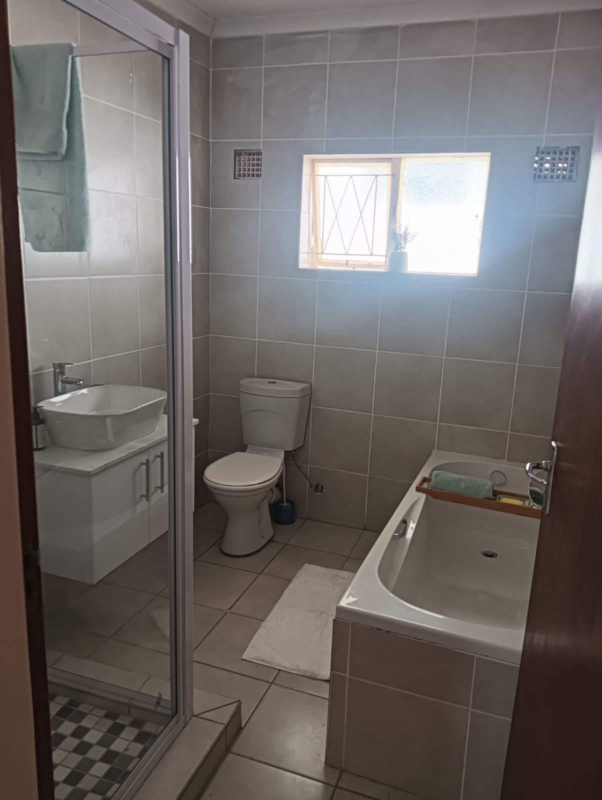 3 Bedrooms with built-in cupboards. 2 Full bathrooms with en-suite, tiled and modern.