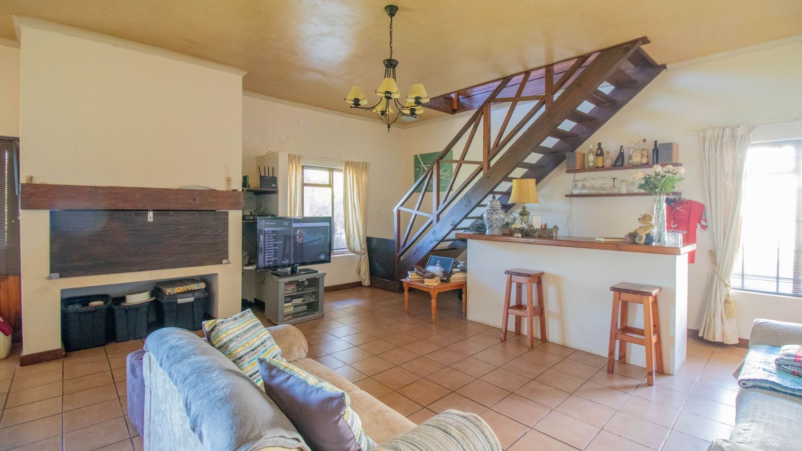 Inside, the family room with a built in braai and guest restroom is the vocal point of your home. From here, you are introduced to the dining area and a kitchen with a separate scullery and laundry. As you ascend up the staircase, an open plan lounge and dining area leads to the 6 bedrooms that share 4 bathrooms. The walk-in closet is ideally situated here for your convenience.