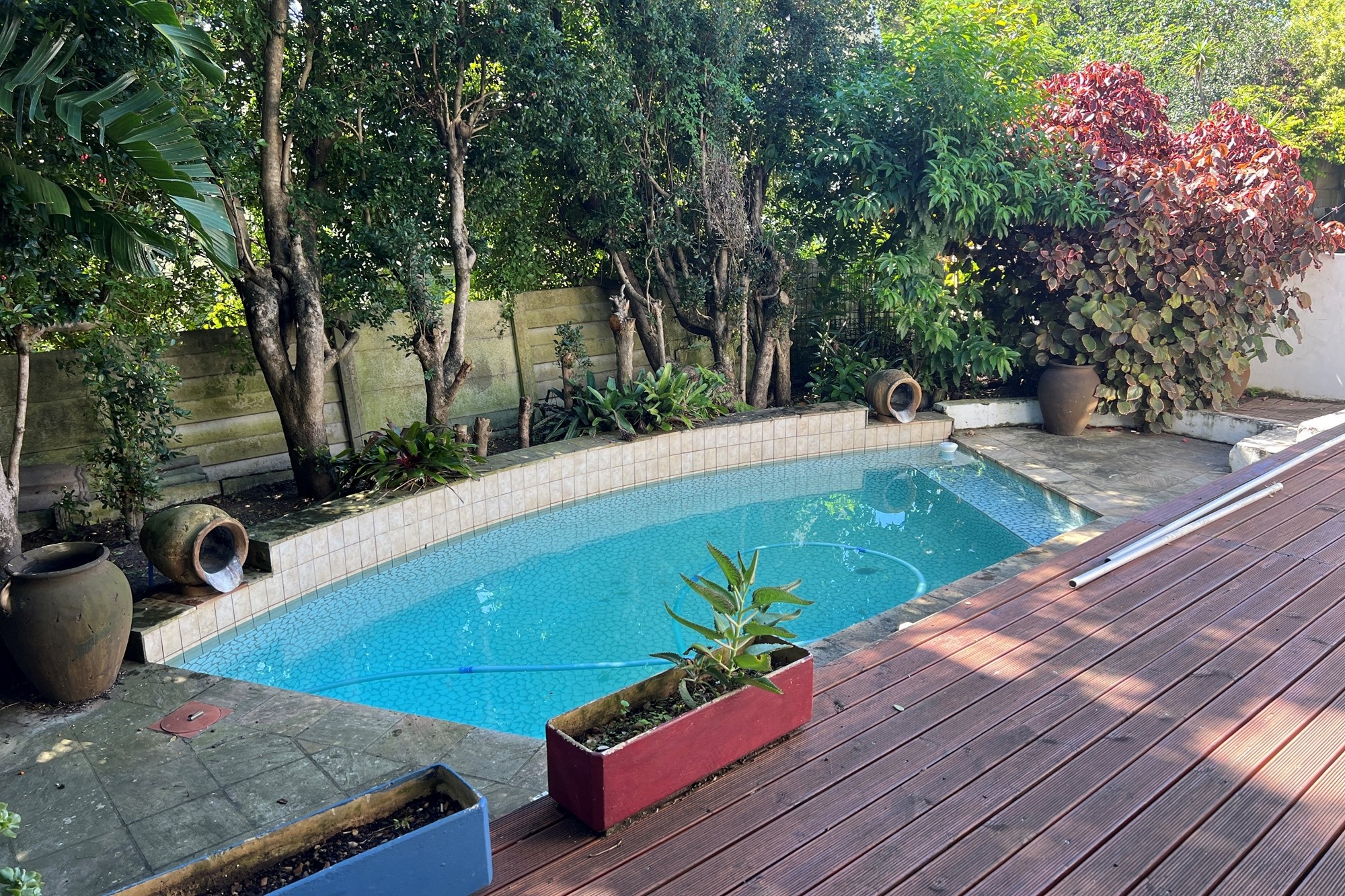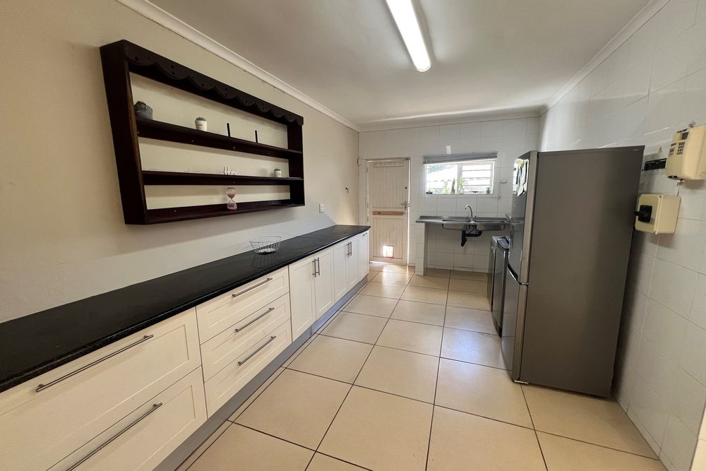 The open plan lounge & dining area effortlessly flow onto a sun-drenched deck where a sparkling pool beckons for a refreshing dip on those laxy, sun-kissed days. Let`s not forget the spacious kitchen & remarkably spacious scullery & laundry.