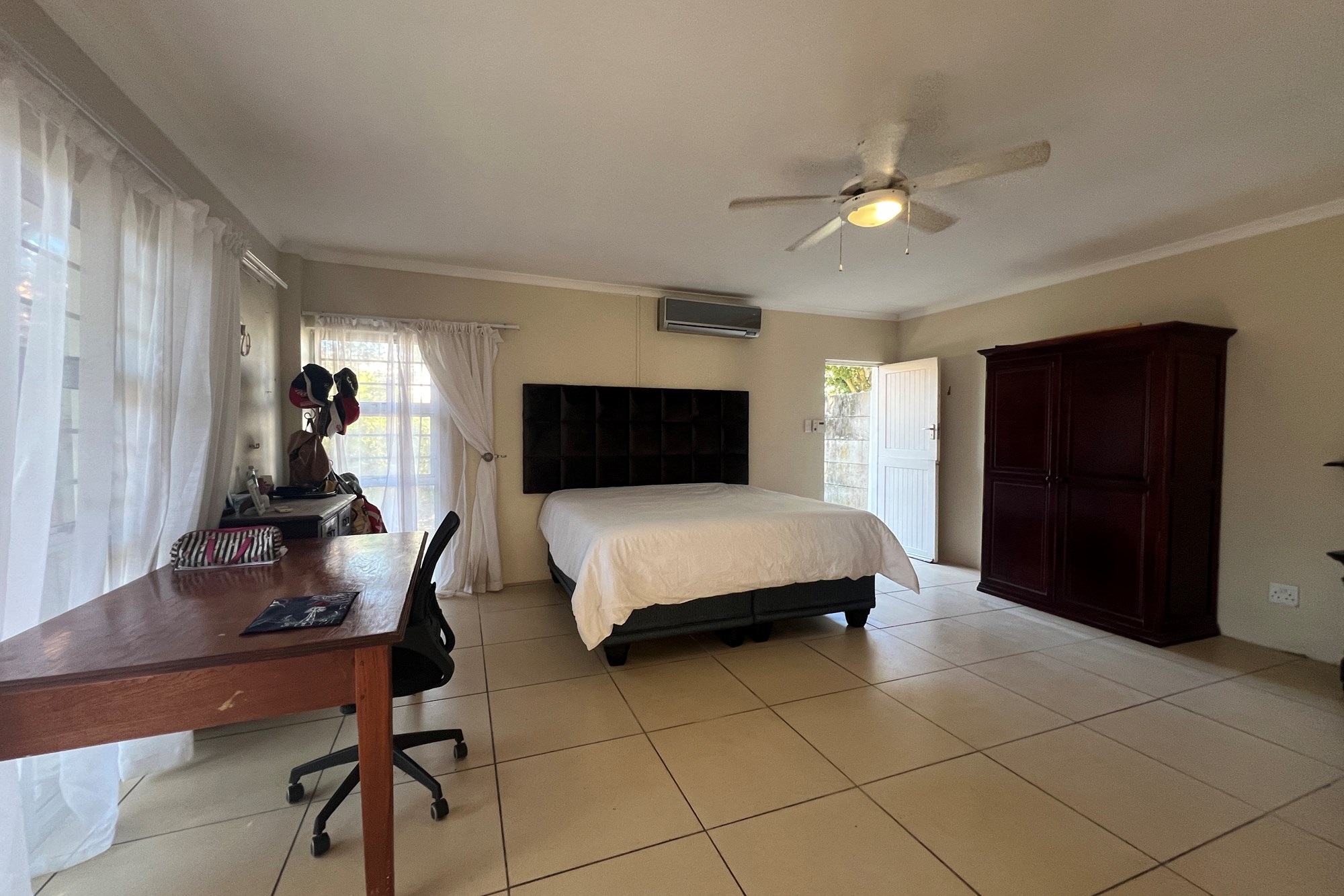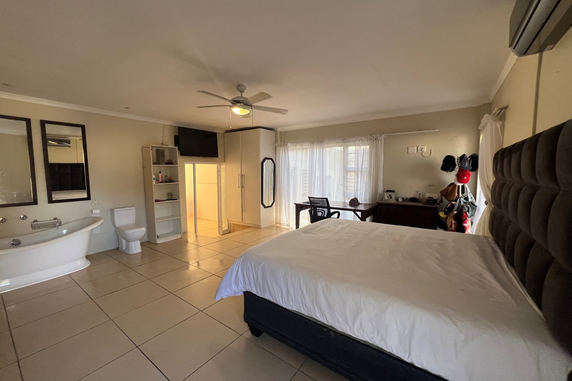 The master bedroom is a daring declaration of open-plan luxury, where a slipper bath stands as a call to relaxation when you sink into its soothing depths on those chilly winter nights. In summer you can enjoy the cool breeze of an air conditioner for added comfort.