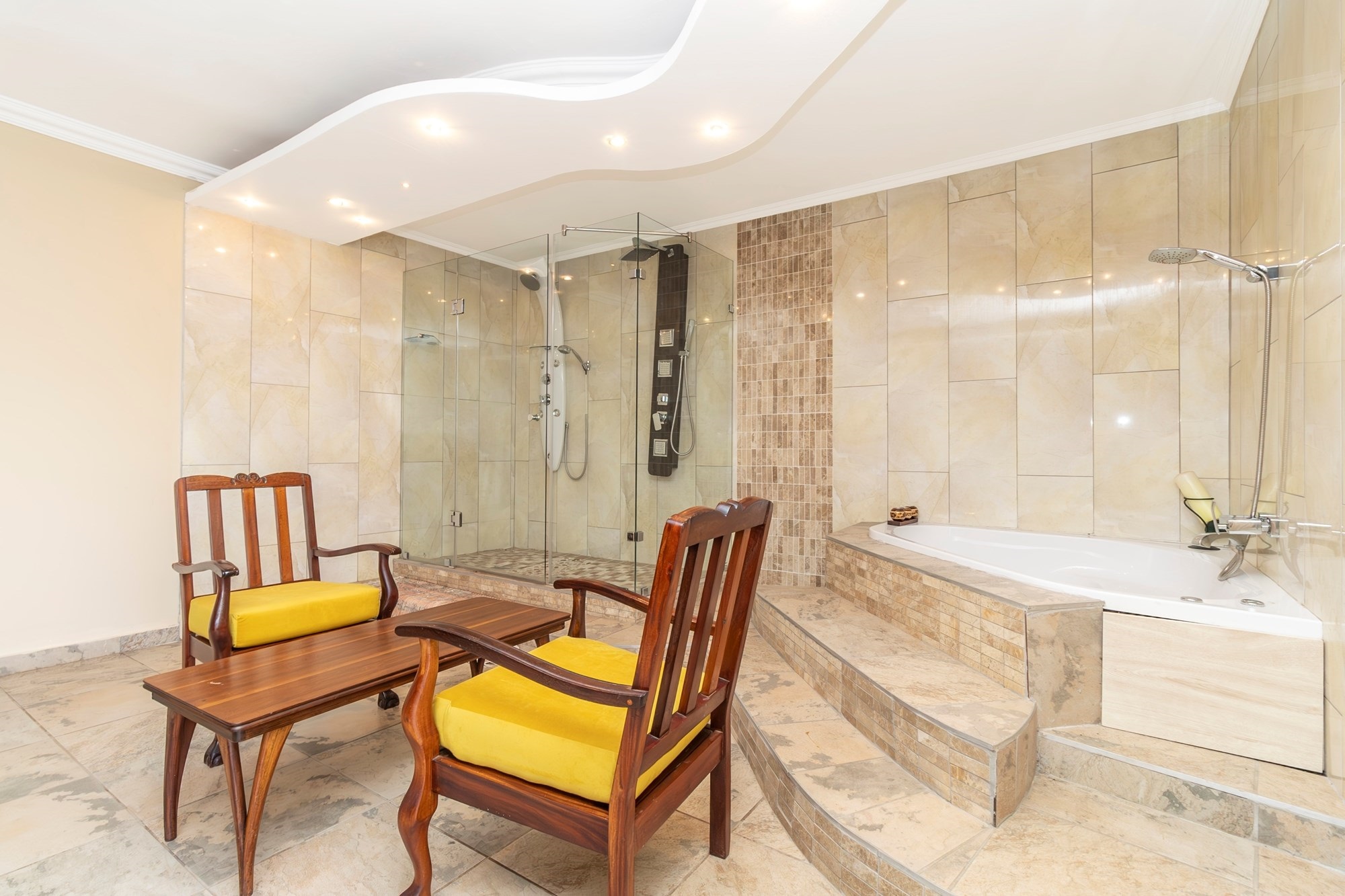 Grand double volume entrance hall with dining area that flows through to the spacious bedrooms , 2 modern bathrooms plus huge master bedroom with luxurious en-suite bathroom with double shower, jacuzzi bath, double vanity and walk in dressing room.