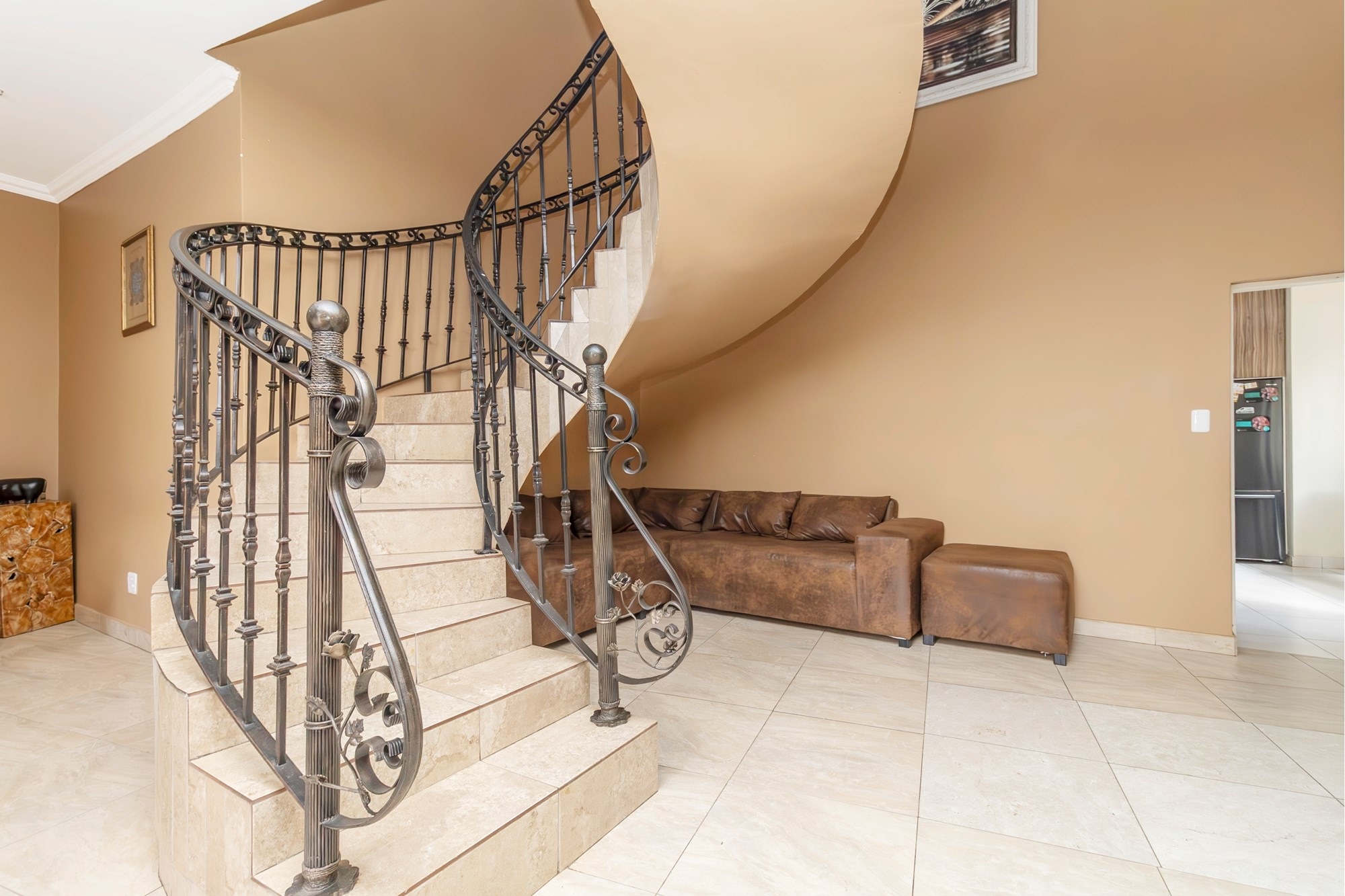 Take the impressive, marble spiral staircase to the upper level where you are greeted with space, light and immaculate laminate flooring to lead you to one of your 6 bedrooms or 2 lounges both with patios to enjoy the outdoors. Bedrooms are large featuring laminate flooring and private balconies.