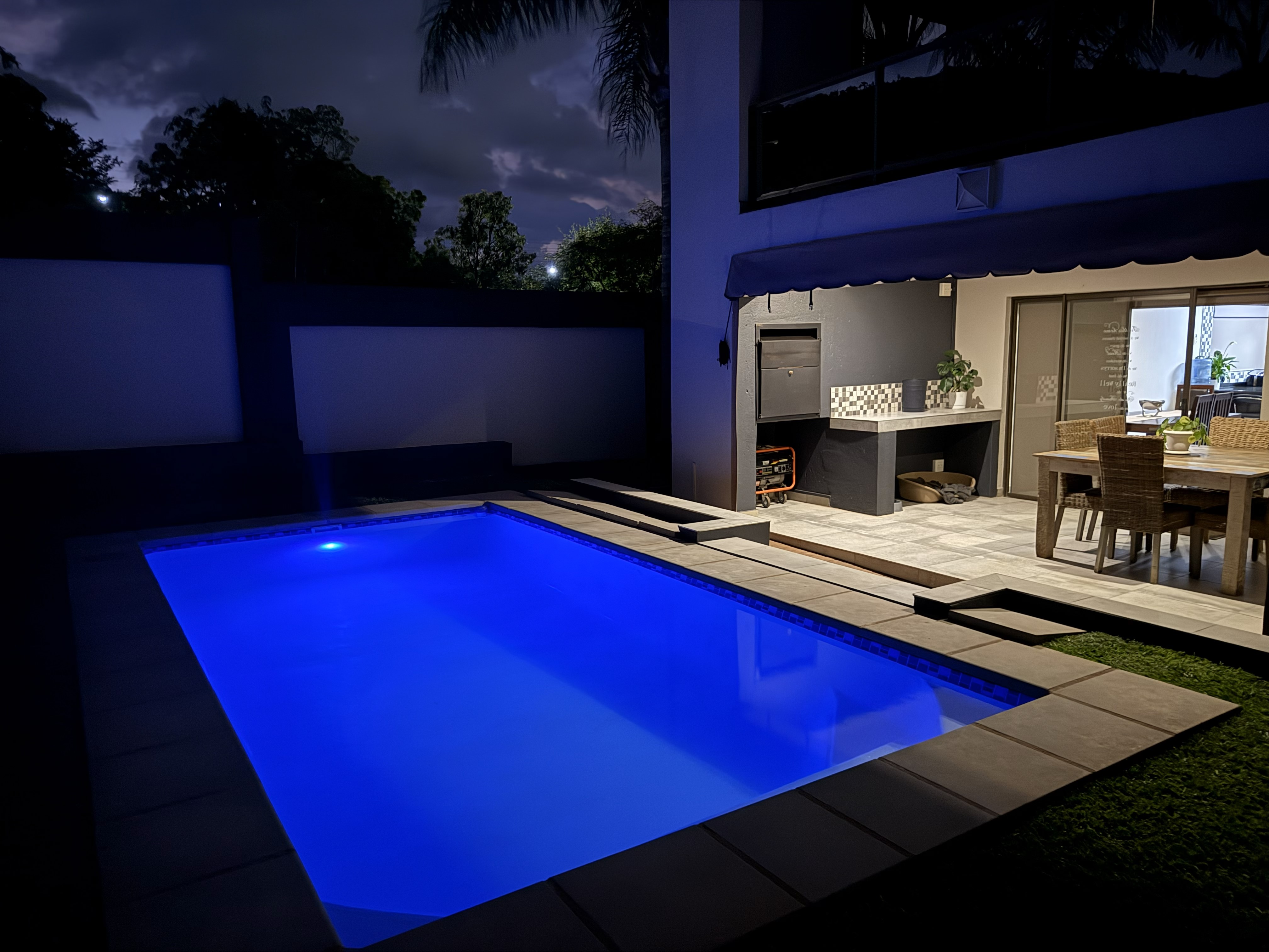 The open-plan living areas flow seamlessly to an outdoor entertainer’s haven featuring a sparkling swimming pool, built-in braai, and a bonus pizza oven — truly an entertainer’s dream. Enjoy breathtaking views that elevate everyday living.