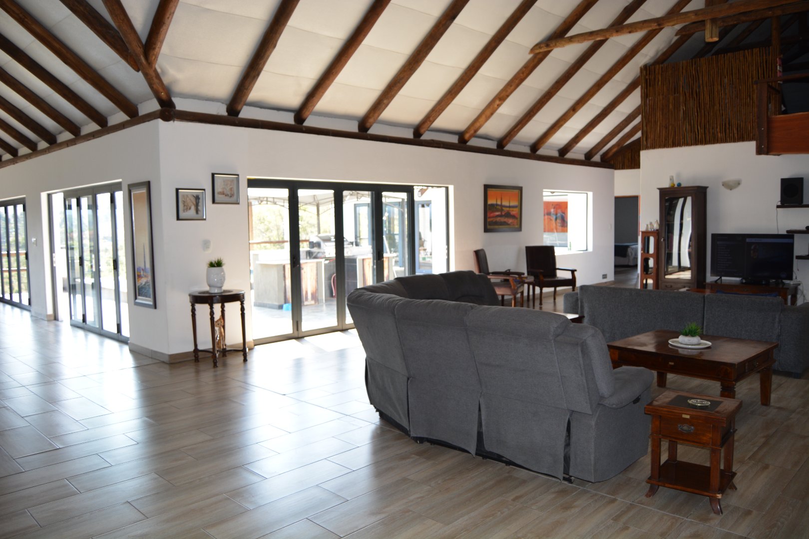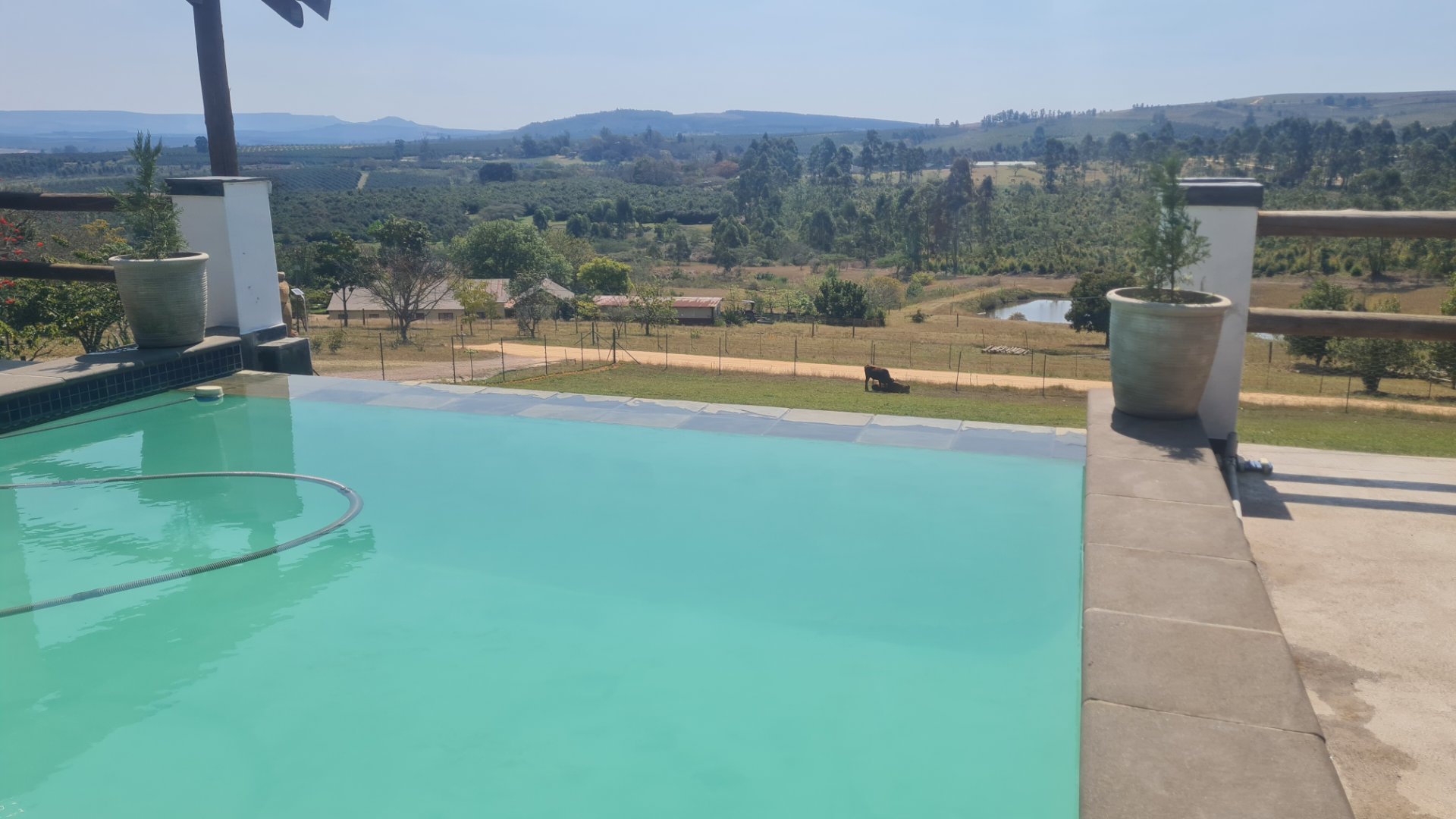 This Absolutely Beautiful Farmstyle, family house, with spectacular views has water supplied by Sandriver project and pumped by neighbour to 270kl holding reservoir and gravity fed. Brown for garden and filtered for kitchen at no cost. This is the water rights registered on the deed.