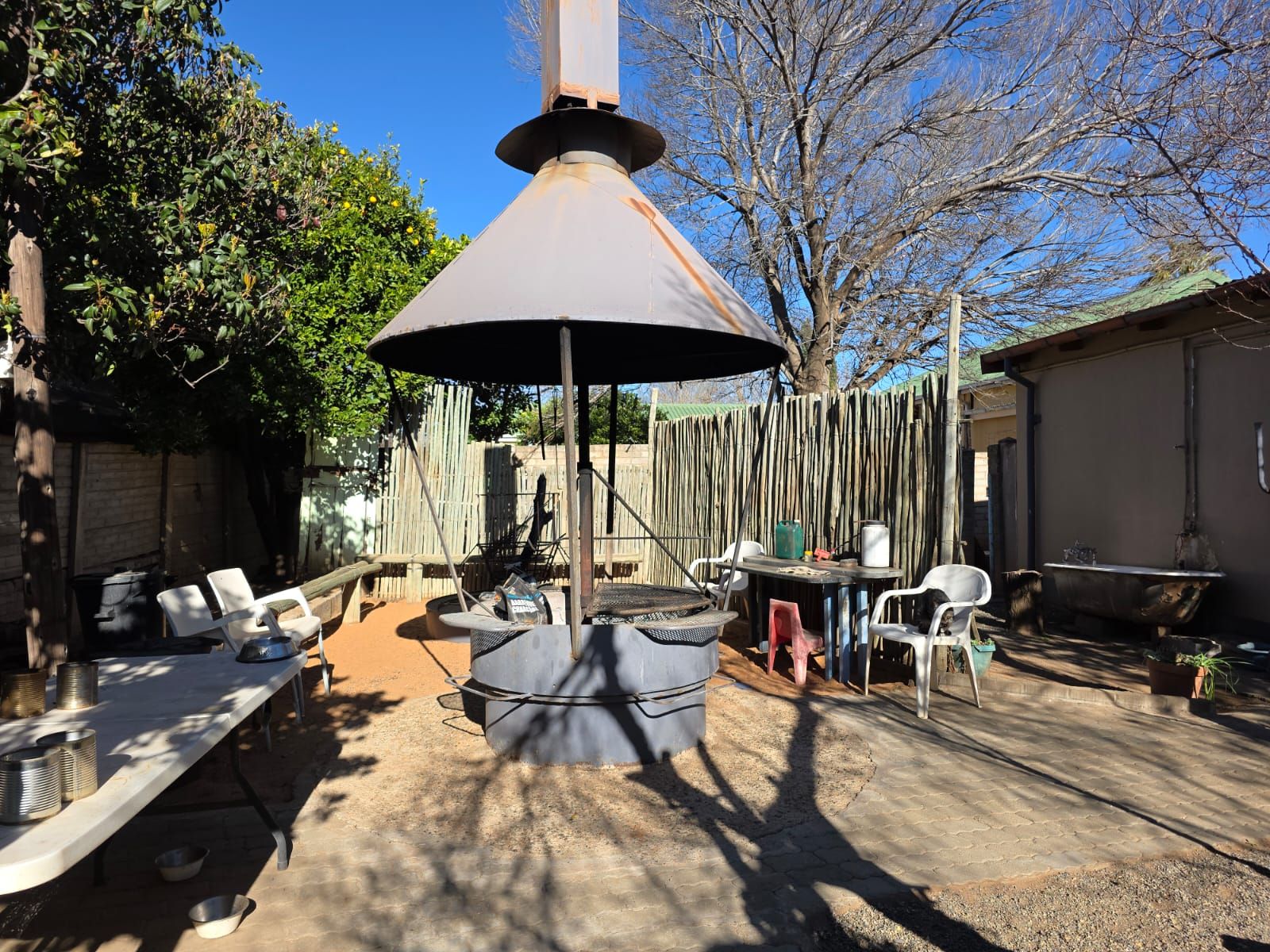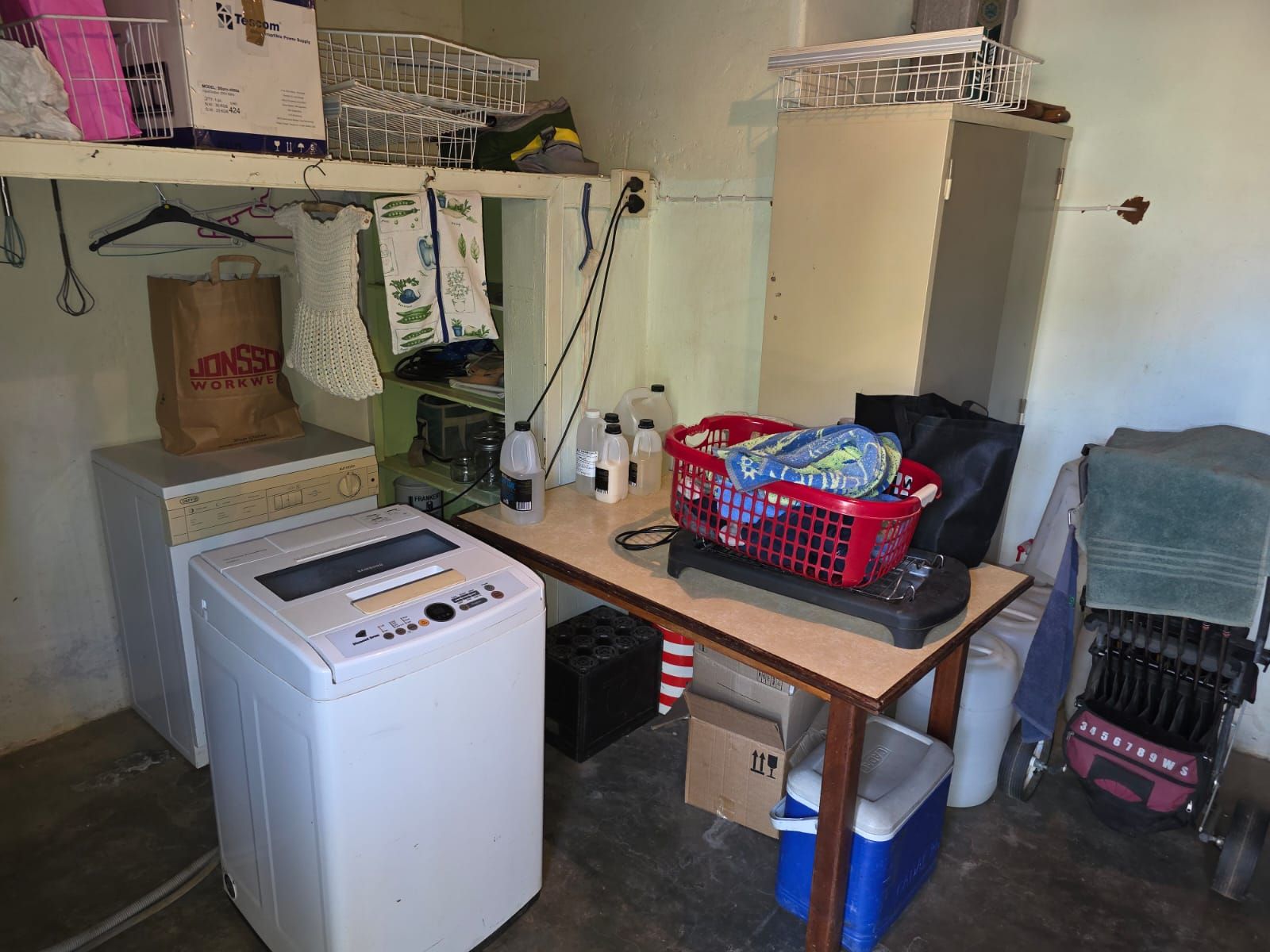 This versatile property, set on three erwe, offers the perfect blend of comfortable family living and small-scale farming opportunities. The main home features three bedrooms, a family room, and a kitchen fitted with built-in cupboards and a stove. A lovely entertainment area provides the ideal space for gatherings.