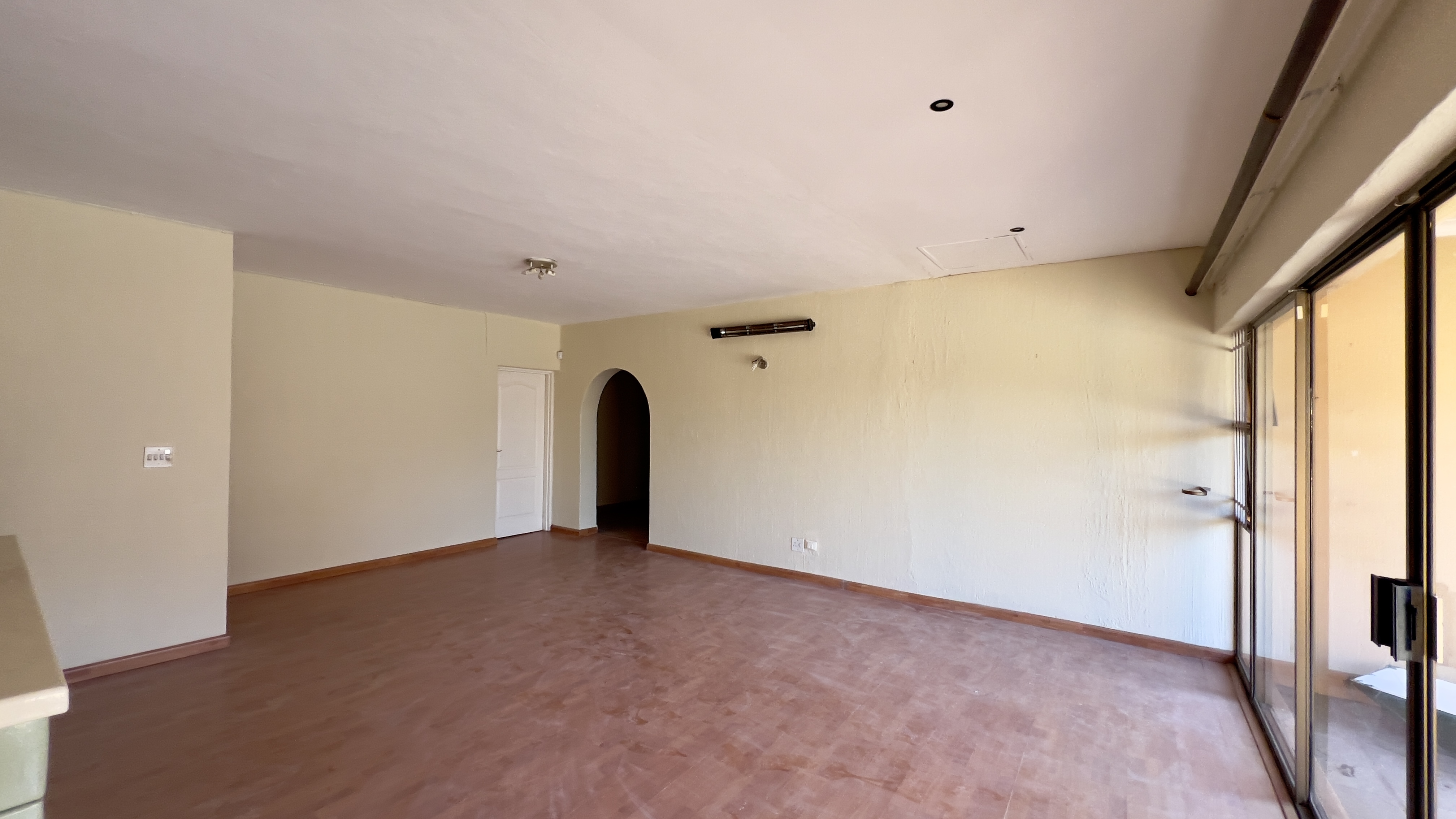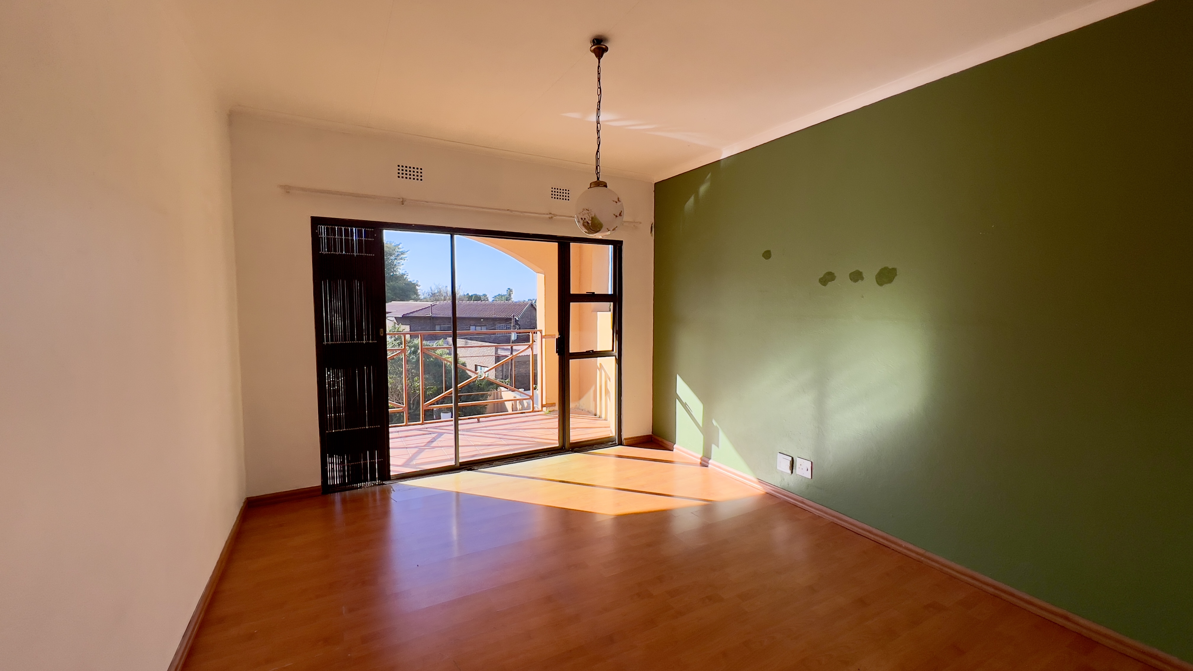 Two additional bedrooms with large sliding doors and a shared balcony, with shared full bathroom.