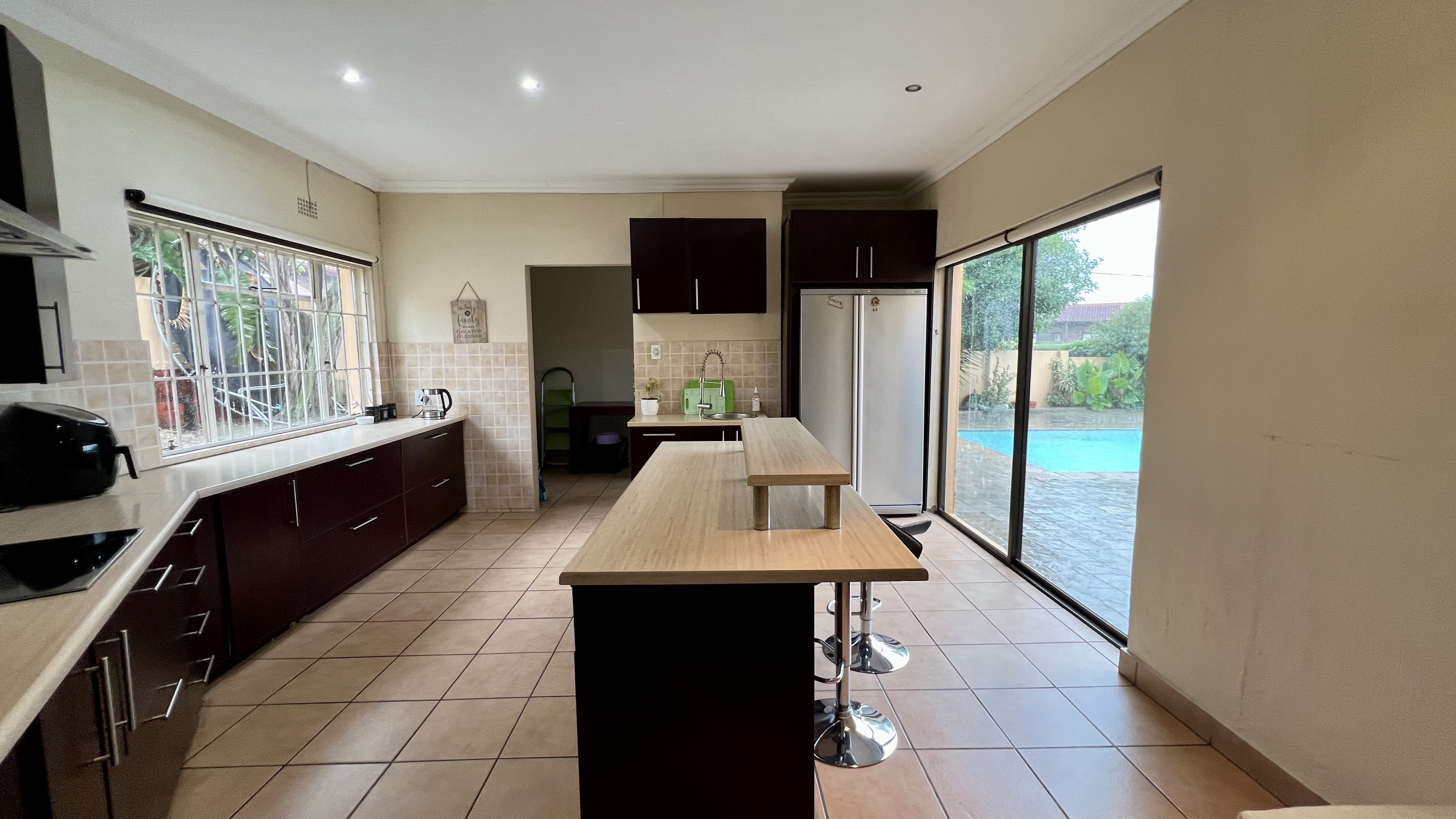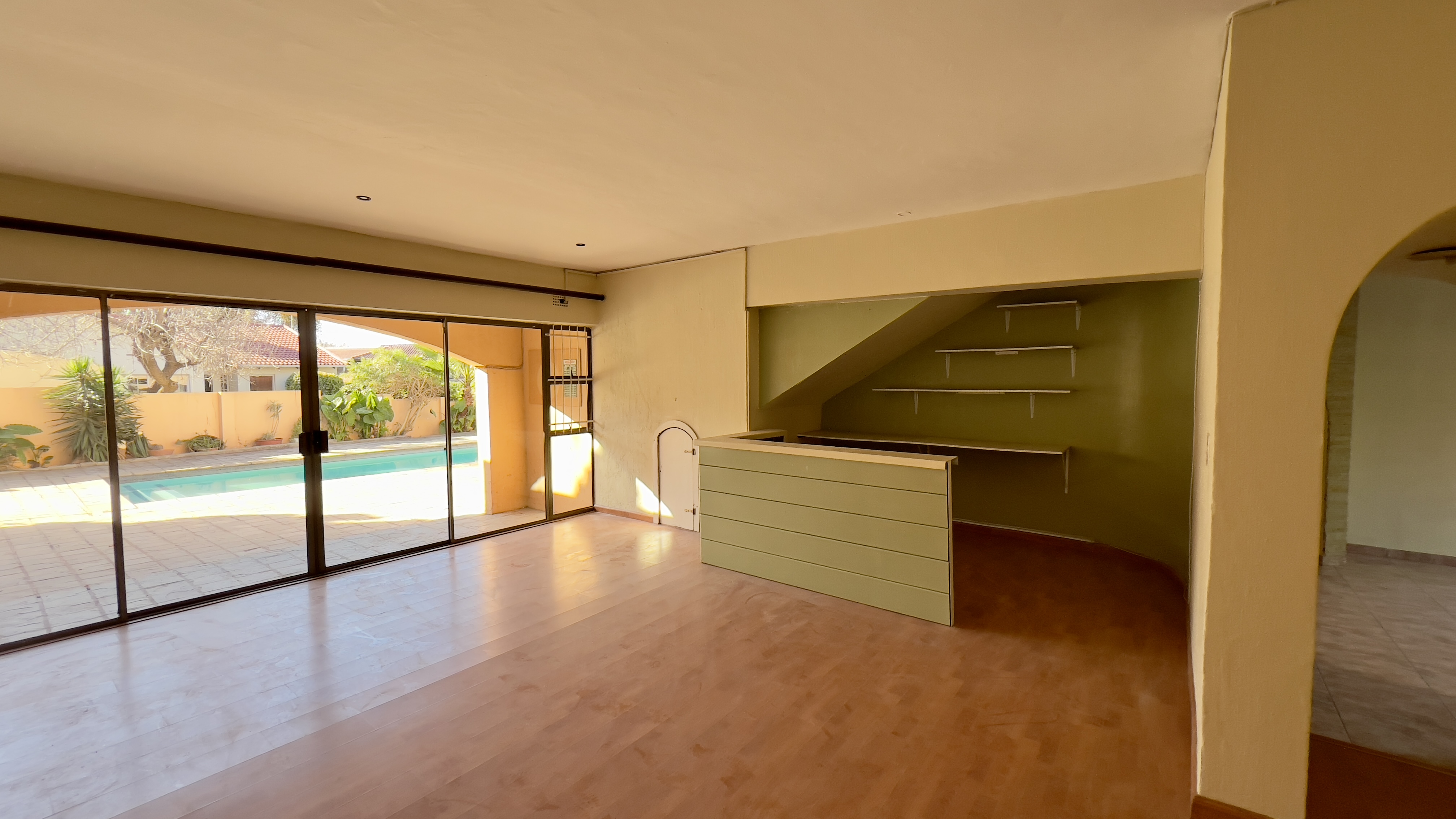 A dedicated entertainment area with a built-in bar, leading directly to the outdoor pool, making it ideal for hosting guests.