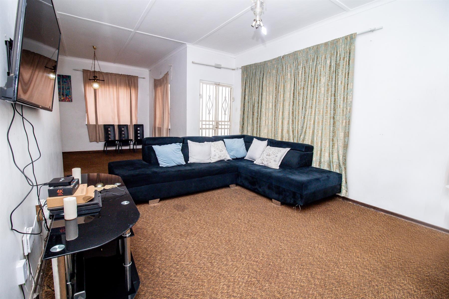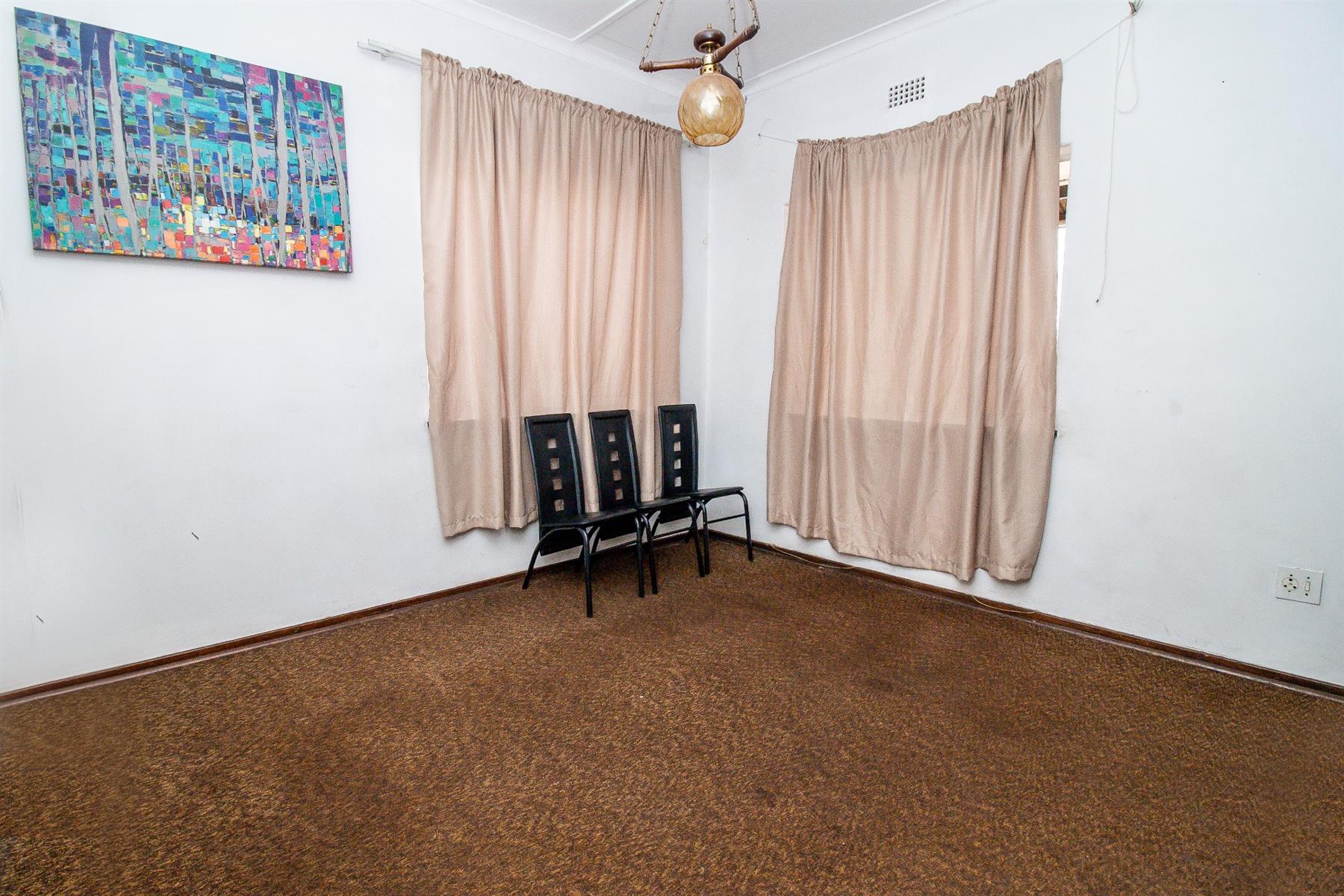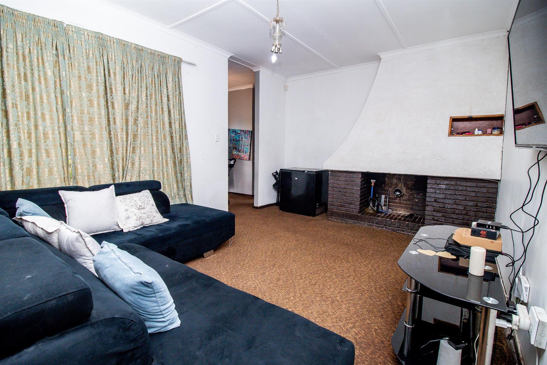 The home features three spacious bedrooms, each fitted with built-in cupboards for ample storage. The kitchen is equipped with built-in cupboards, providing functional workspace and storage for all your culinary needs. A comfortable lounge with a fireplace creates a warm and inviting atmosphere, while the dining room offers an ideal space for family meals and gatherings.