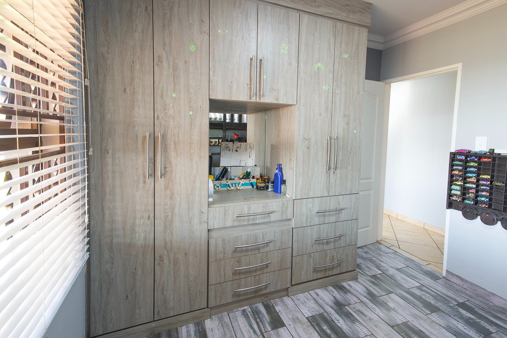 Three Bedrooms and Two Bathrooms: This home features three spacious bedrooms, each with built-in cupboards, providing ample storage. The two well-appointed bathrooms offer convenience and comfort for the whole family.