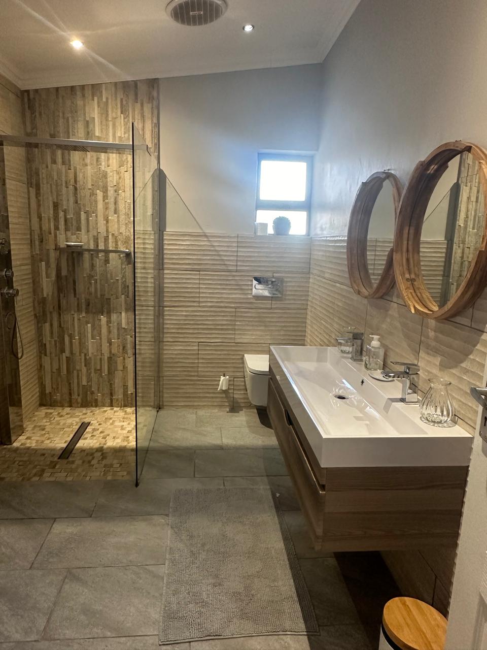 Kitchen flowing onto a lovely relaxing sunny area and onto the outside braai area. Delightful sanctuary of a light Lounge/Family room to enjoy the amazing views over the manicured garden. Study or perfect work from home area, entrance hall and a dedicated, fully equipped entertainment area enhances your functions & celebrations or just to unwind – this flows onto a sparkling pool! (for lovely pool parties)