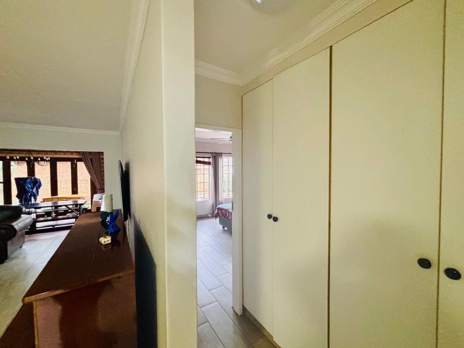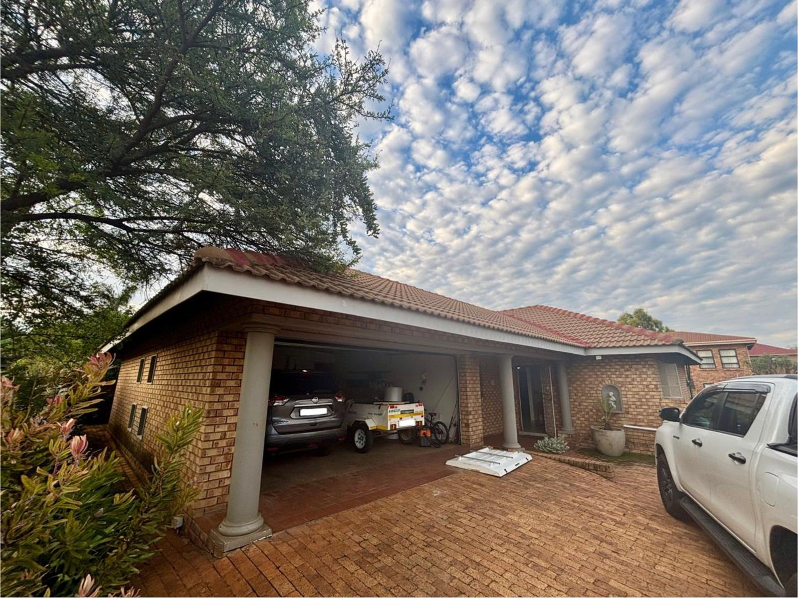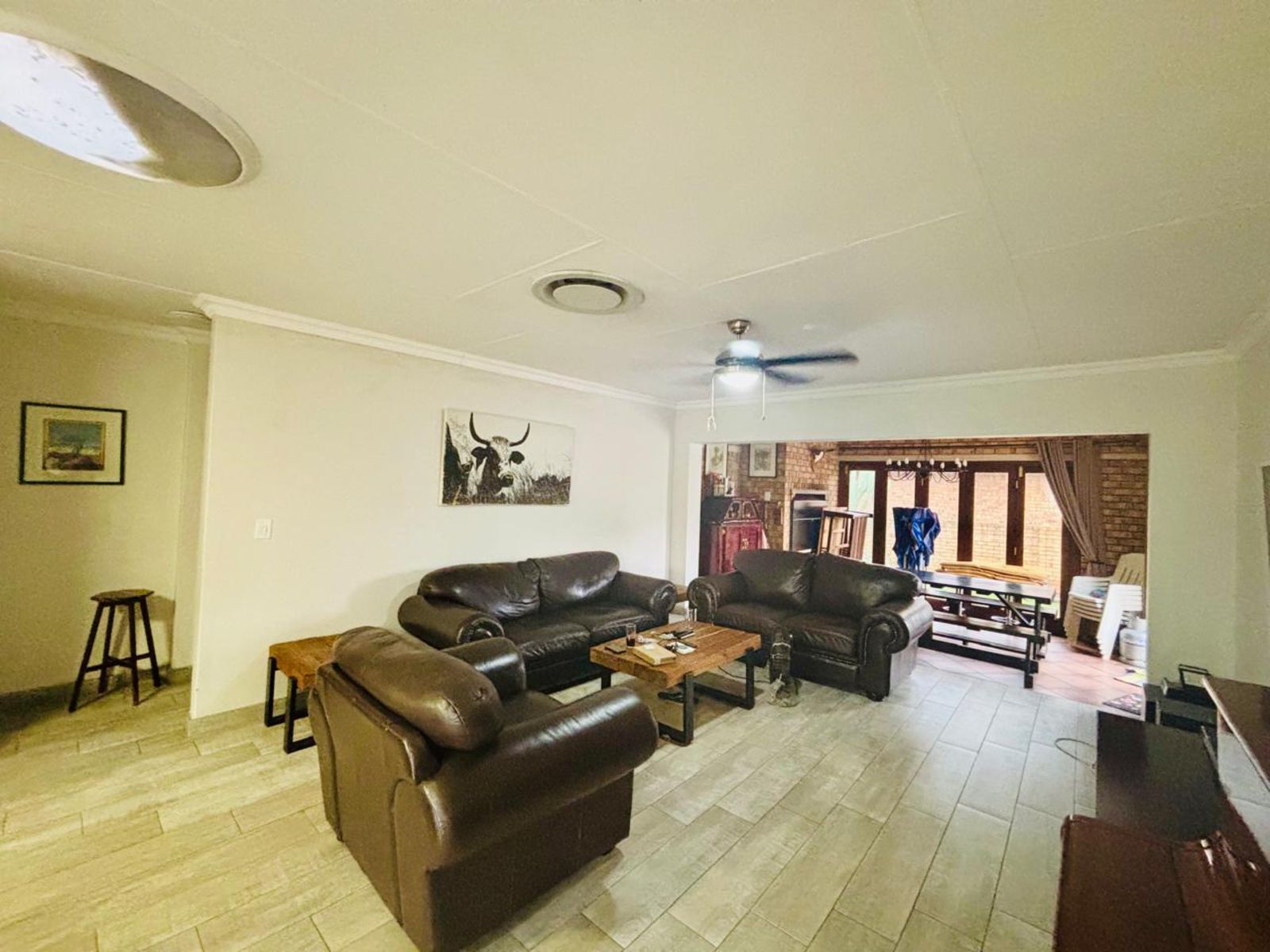 This beautiful home offers 3 spacious bedrooms, 2 bathrooms inside and an open-plan living area that flows seamlessly between the lounge, dining room, and a modern kitchen with ample cupboard space, with a pantry and scullery.
