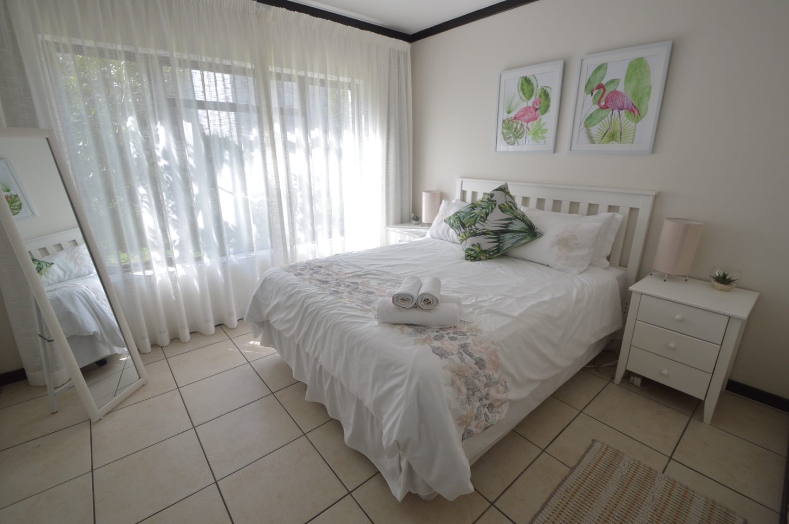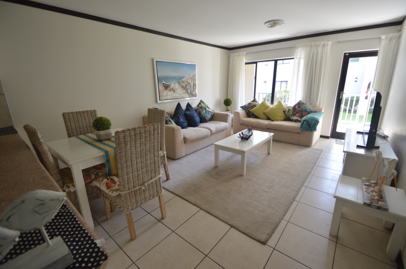 LONG TERM RENTAL (No move out in December): Fully Furnished, 2 bedroom, 1 bathroom apartment on the ground floor in Santini Village. This light and airy unit offers an open plan lounge, dining and kitchen area with a door opening onto a small balcony (patio) overlooking a communal garden area. The complex has a communal swimming pool and 24H security.