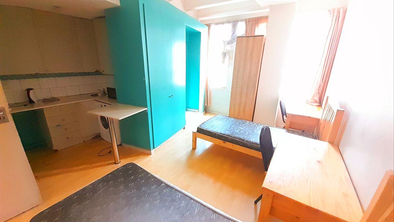 This well-maintained bachelor apartment, with the potential of generating a rental income of R6000, is ideally located in the vibrant area of Braamfontein. The kitchen features modern cabinetry with granite countertops, a built-in stove, oven, and extractor fan. The layout includes an open-plan kitchen and bedroom. The bedroom is equipped with a built-in wardrobe and is spacious enough to accommodate two beds comfortably.
