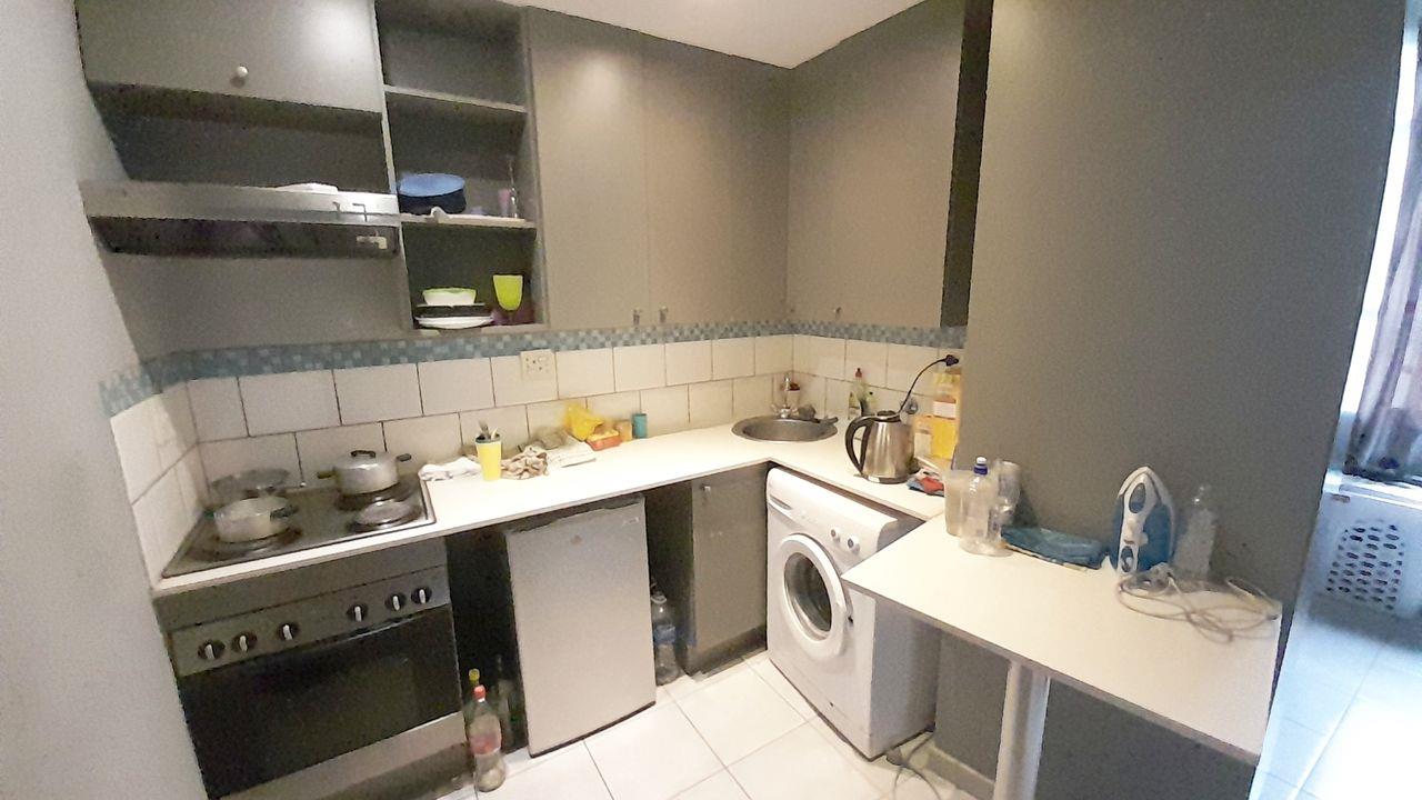 This impeccably maintained bachelor apartment is a fantastic investment opportunity, perfectly positioned in the lively area of Braamfontein. The kitchen boasts modern cabinetry with sleek granite countertops, featuring a built-in stove, oven, and extractor fan. The layout is designed for modern living, with an open-plan kitchen and bedroom that maximizes space. The bedroom includes a built-in wardrobe and is generously sized, easily accommodating two beds.