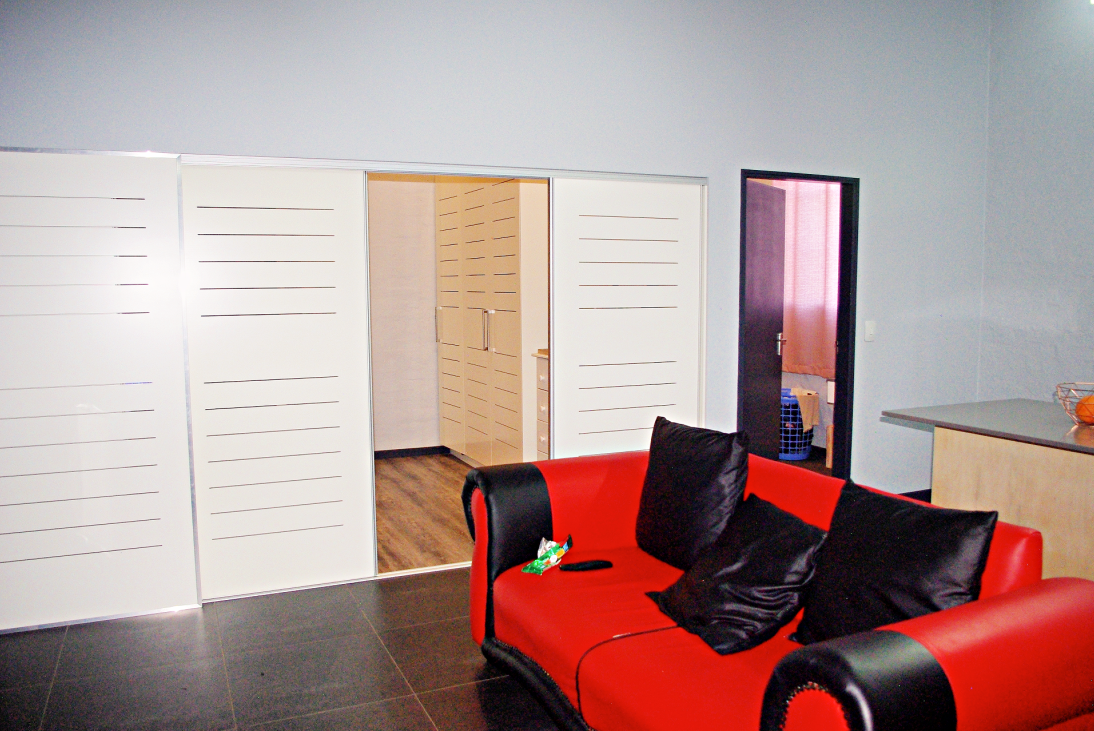 Open bedroom with built in cupboards (Sliding doors to create privacy)