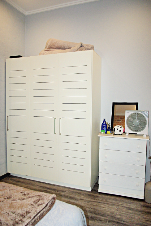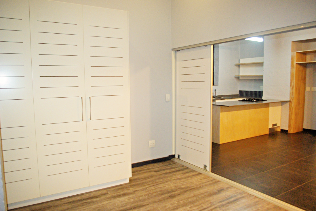 Open bedroom with built in cupboards (Sliding doors to create privacy)