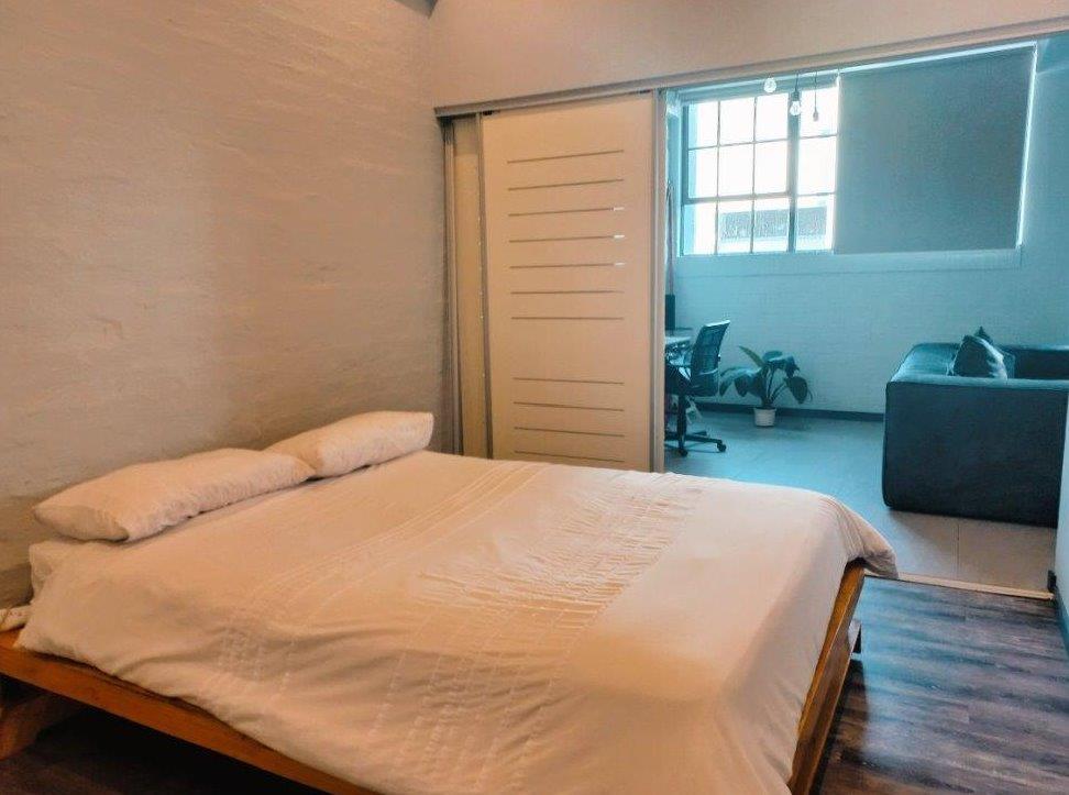 This urban style apartment situated at The Exchange Lofts on the edge of Braamfontein comes standard with modern fittings and features with attention paid to every detail. The large windows and high ceilings serve to enhance the feeling of space and light. Ideal for a young professional of couple with a busy lifestyle and a passion for style.