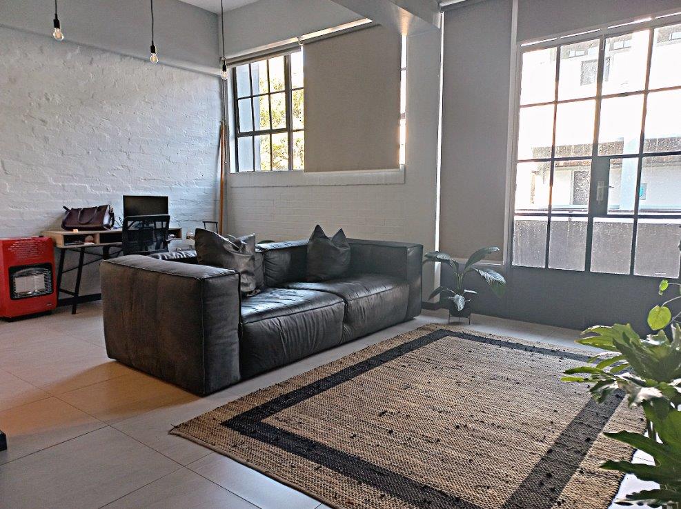 This urban style apartment situated at The Exchange Lofts on the edge of Braamfontein comes standard with modern fittings and features with attention paid to every detail. The large windows and high ceilings serve to enhance the feeling of space and light. Ideal for a young professional of couple with a busy lifestyle and a passion for style.