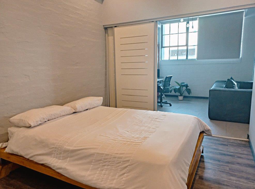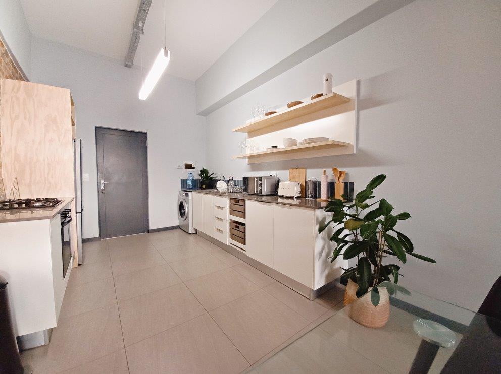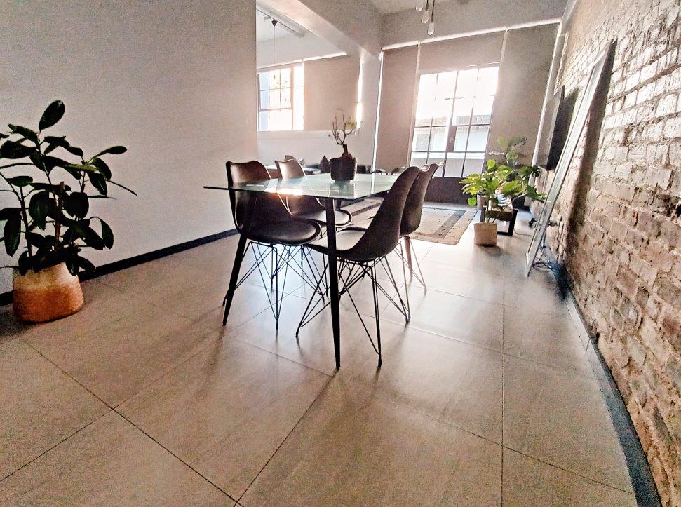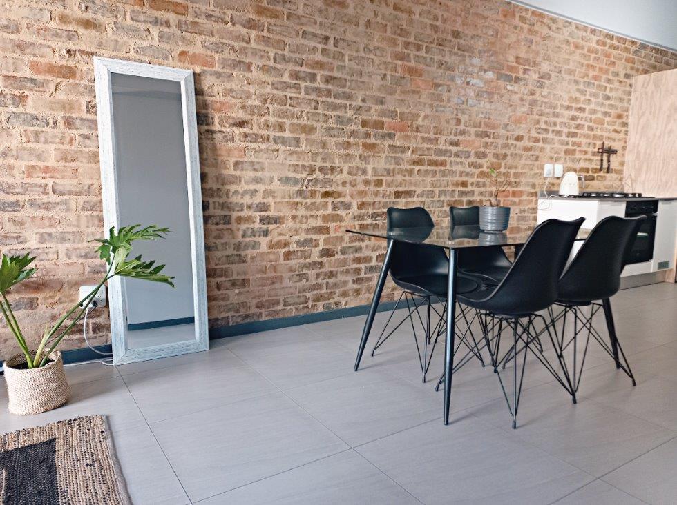This urban style apartment situated at The Exchange Lofts on the edge of Braamfontein comes standard with modern fittings and features with attention paid to every detail. The large windows and high ceilings serve to enhance the feeling of space and light. Ideal for a young professional of couple with a busy lifestyle and a passion for style.