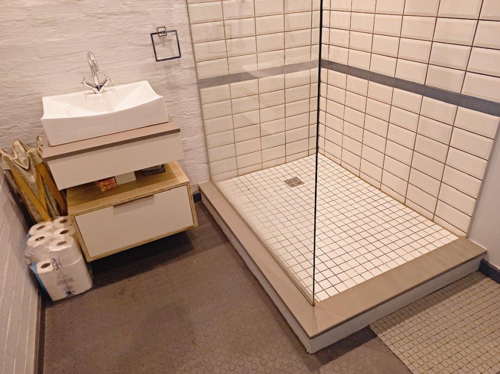Large bathroom with shower