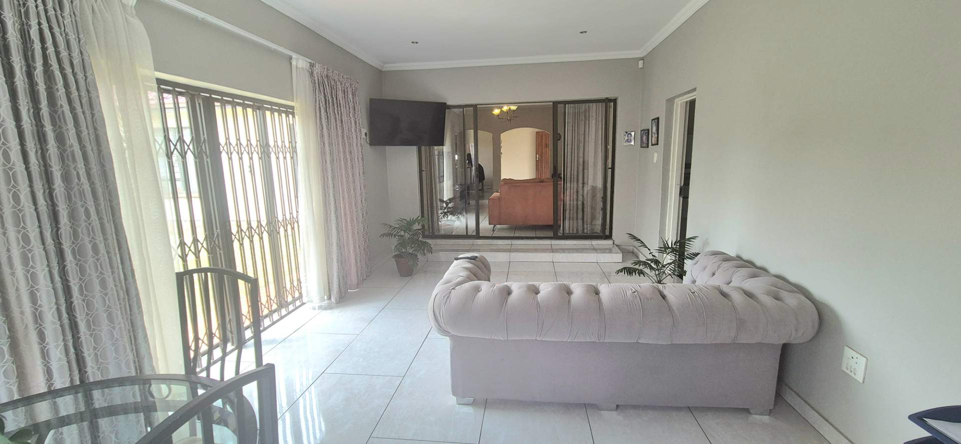 This home is designed for modern living with extra features such as a 10 KVA inverter with backup batteries, 10 solar panels, an alarm system, fiber-ready connectivity, prepaid electricity, an electric stove with a gas hob, and a gas geyser. Practical additions include an outside room for storage and an outside toilet. The property is fitted with aluminum window frames and an intercom system for convenience and security.