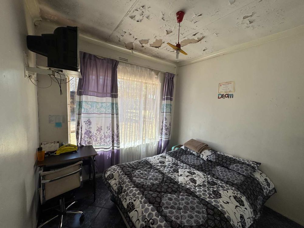 Back yard with large grassed areas, small lapa, wendy house, massive entertainment lapa with a built in braai and bar, lapa-swing and pool (no leaks, working order)