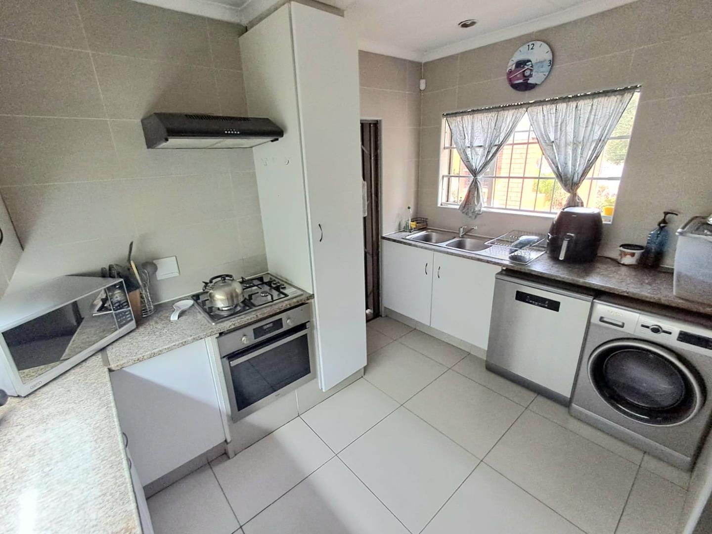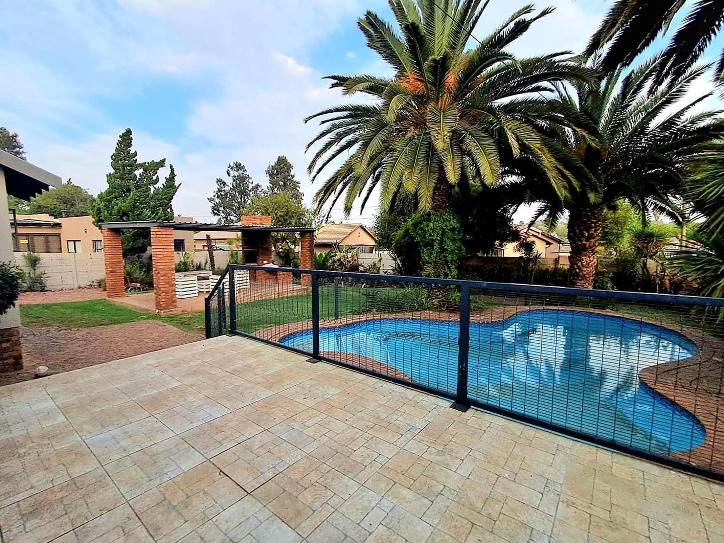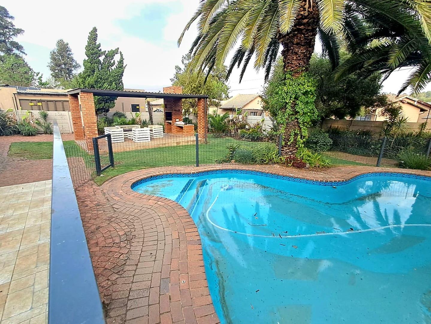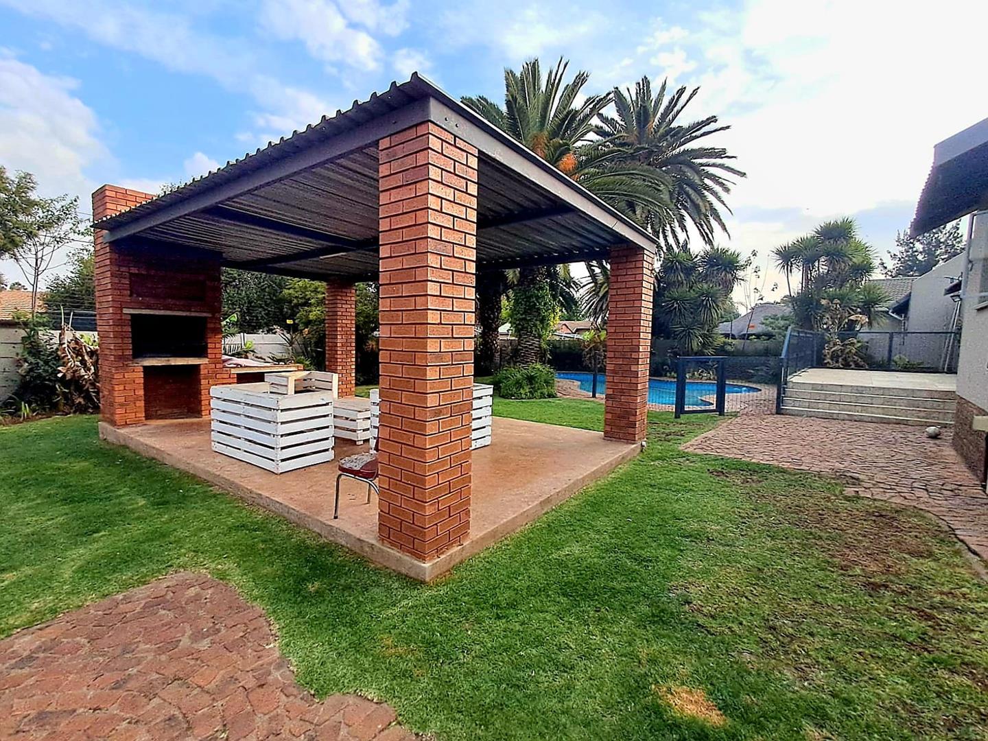 Step outside to enjoy the beautiful fenced-in swimming pool, perfect for summer days. The lovely covered terrace features a built-in braai, providing an excellent space for outdoor dining and entertaining. The established garden adds to the charm of this home, offering a serene environment that enhances its overall appeal.