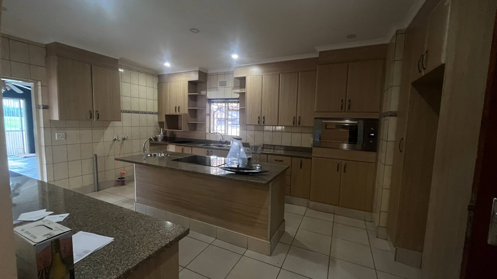 This family home consist of fitted kitchen with granite counter tops ,tiled throughout, 4 bedrooms, 2 bedrooms, lounge and dinning room, study, modern kitchen, indoor braai area, double garage,3 carports, swimming pool, victron solar system, alarm system with motion sensor cameras, pre-paid meter.