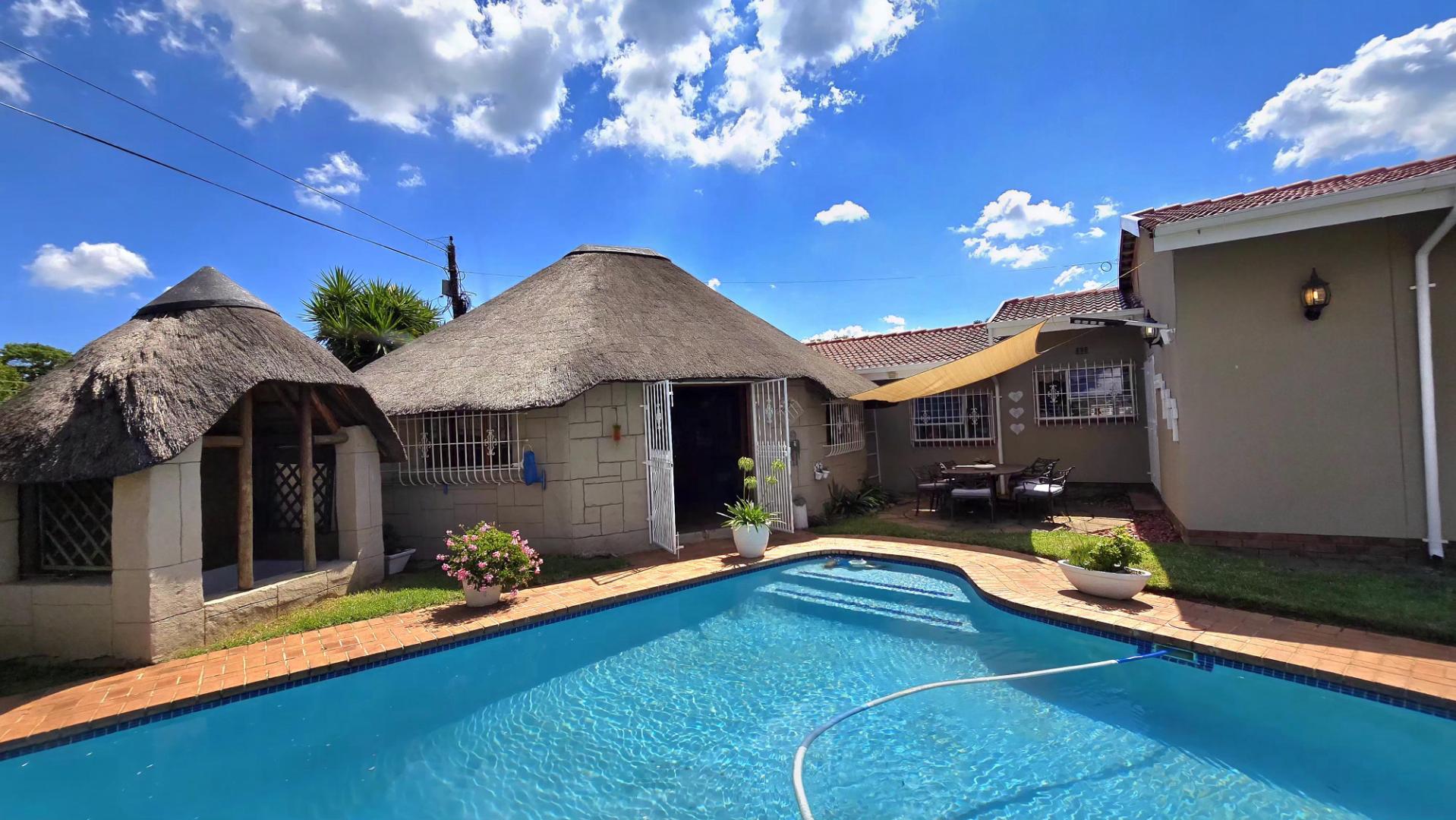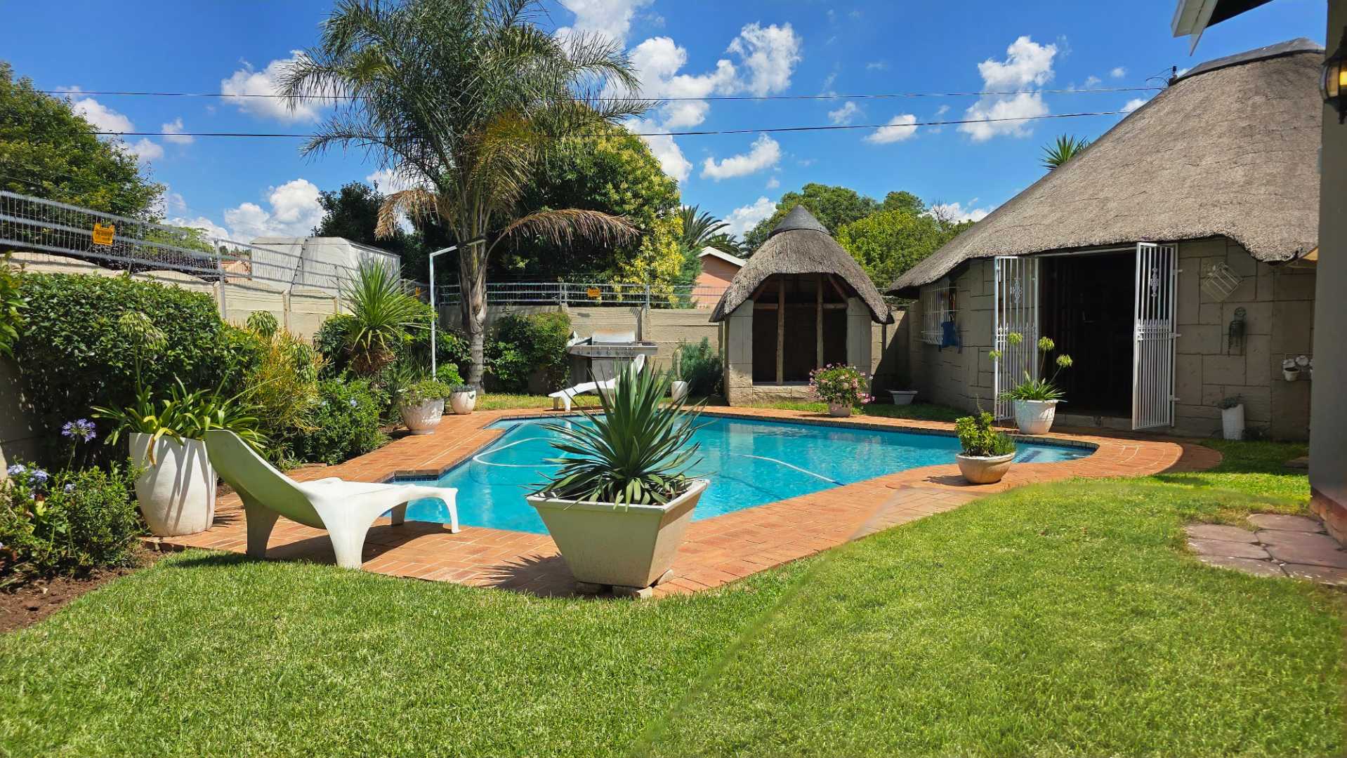 For those who love to host, the entertainment area is unbeatable. Enjoy a thatched lapa complete with a bar area, Jacuzzi, and a large swimming pool – perfect for gatherings and relaxation alike.