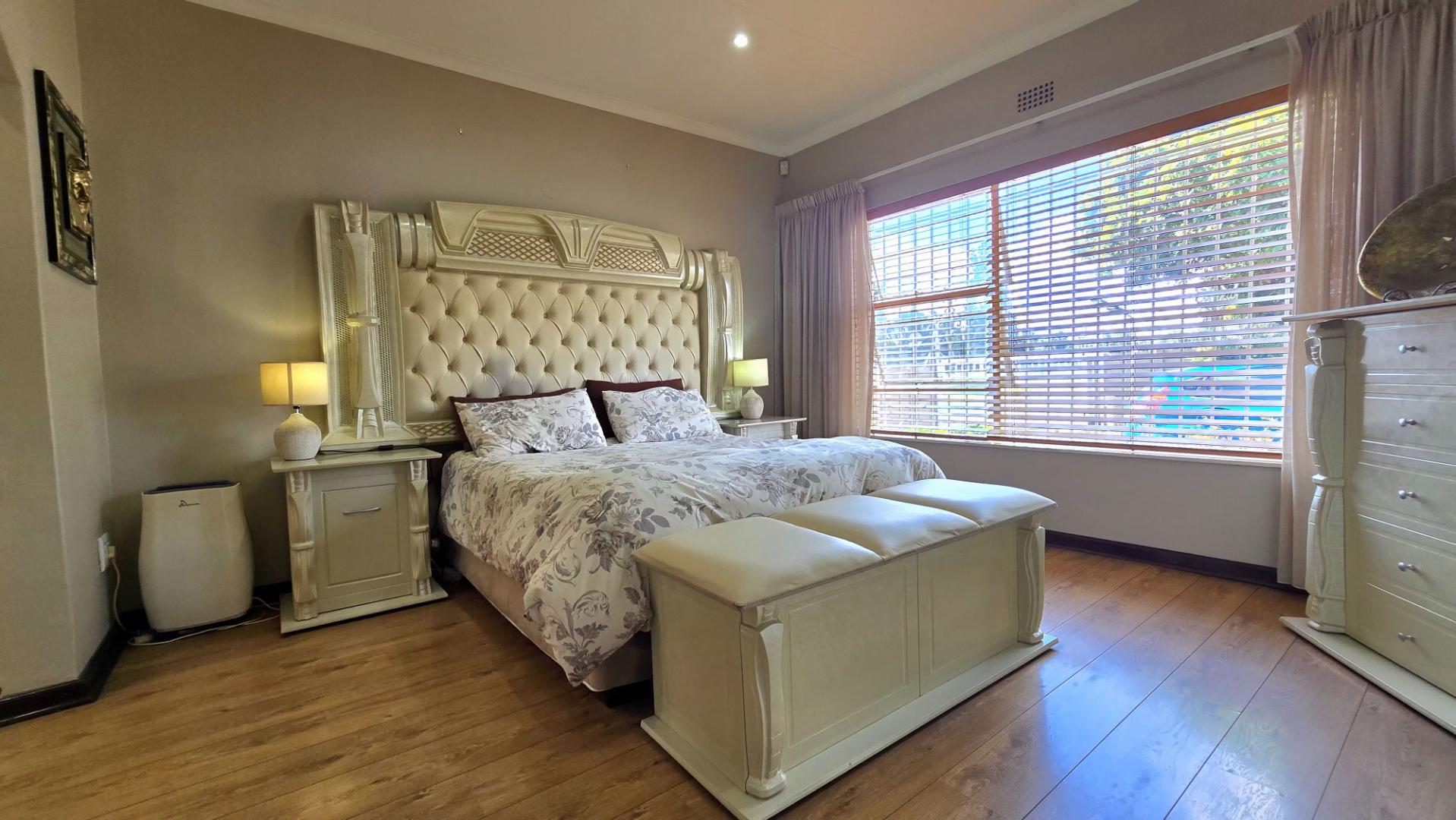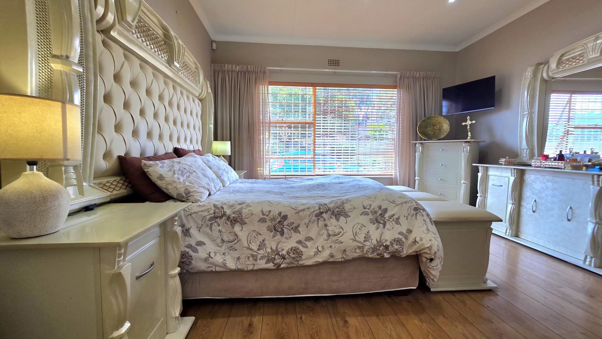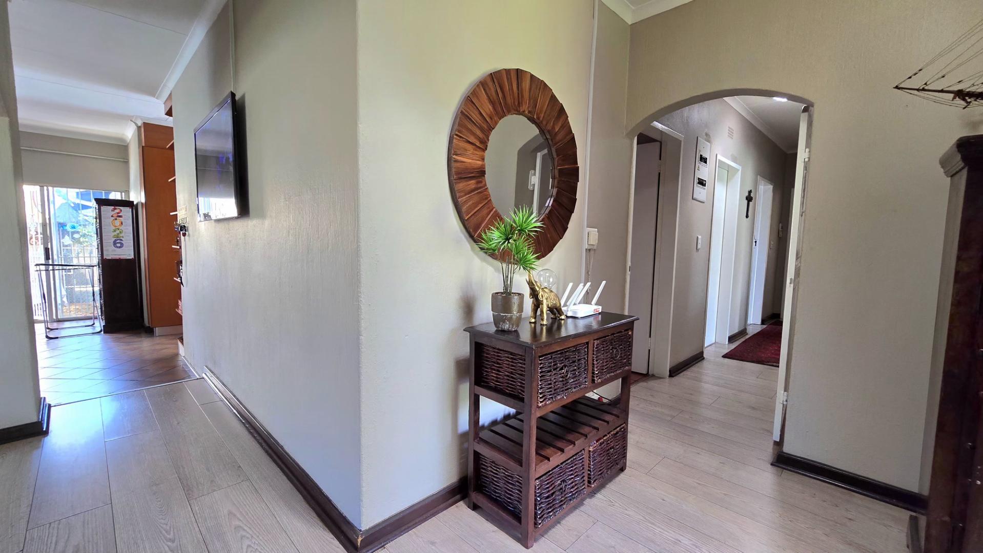 The beautifully maintained garden enhances both the front and back of the property. Security is paramount with an alarm system, electric fencing, and CCTV ensuring peace of mind. Additionally, the location is unbeatable, with easy access to major routes, schools, and shopping centers.