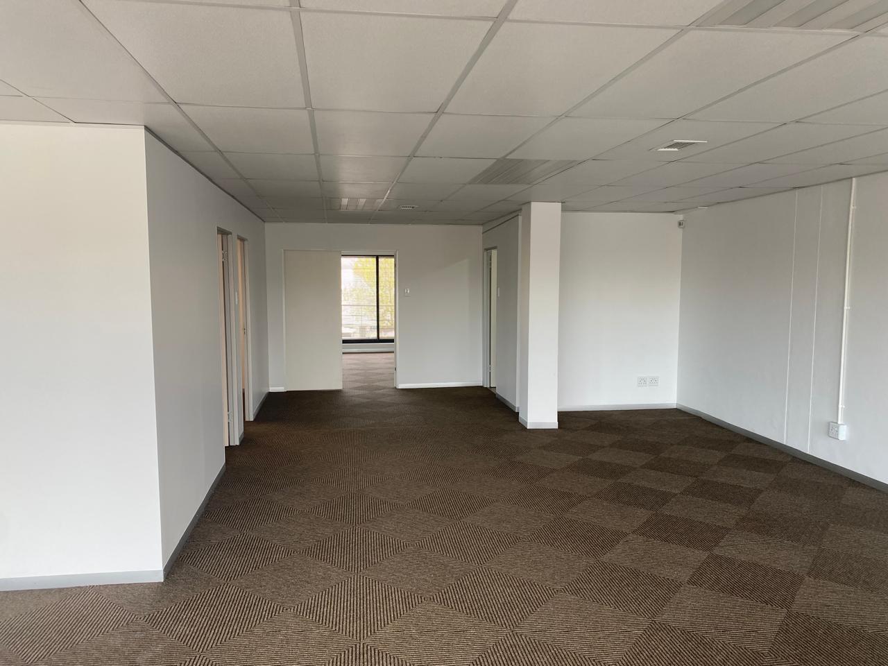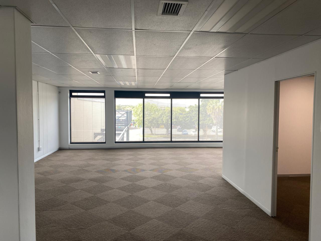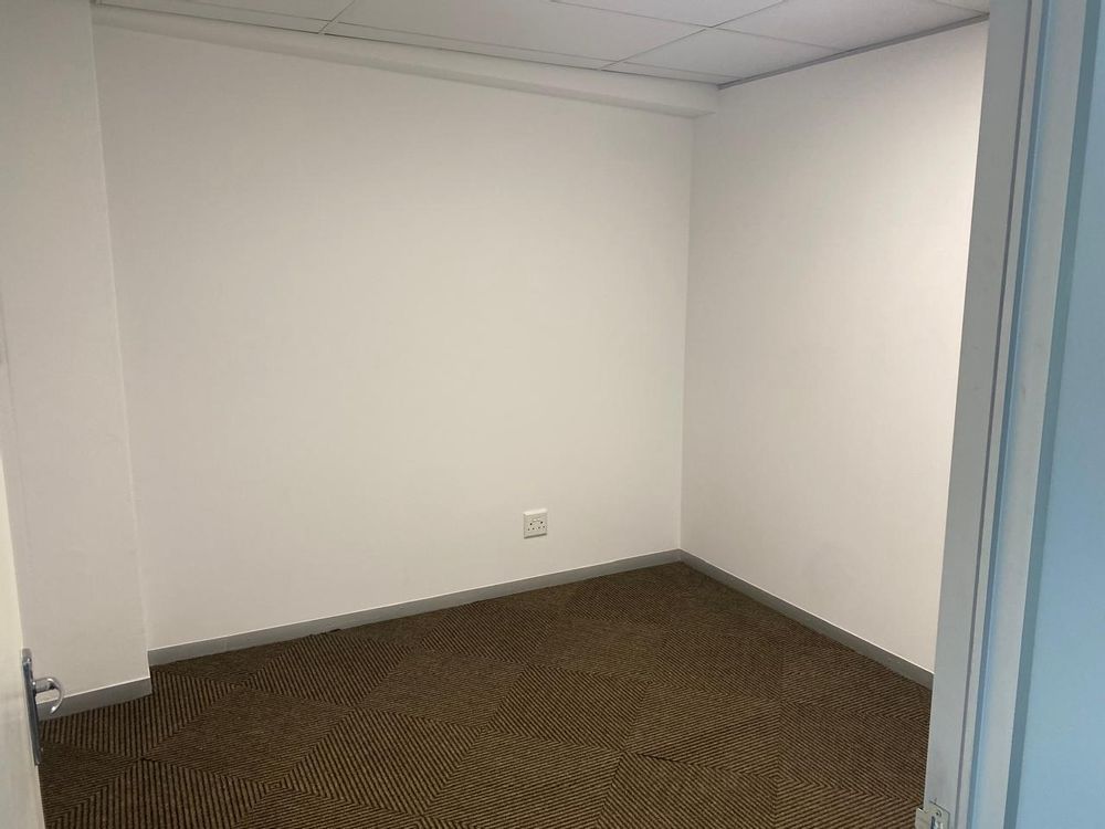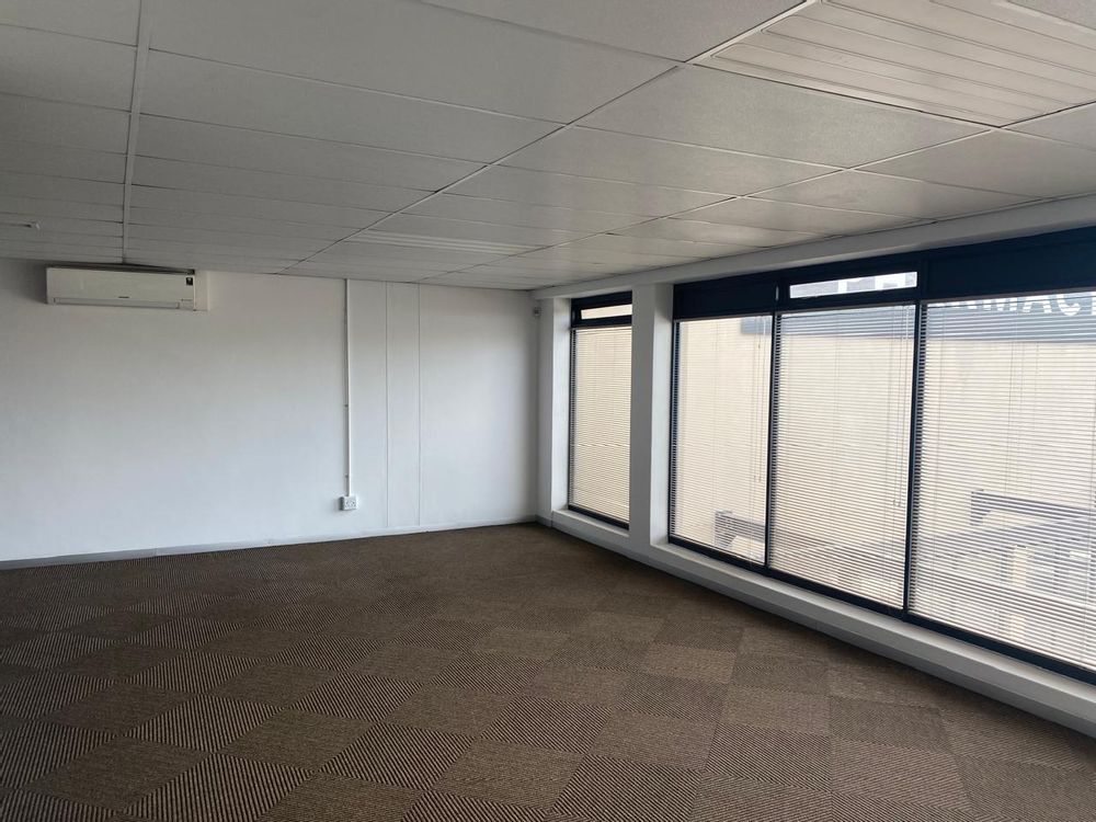 This office is situated in a well-located office building, conveniently near main roads with easy access. Ample public parking is available around the premises. The layout includes two private offices, a spacious boardroom, and an open-plan area upon entry. Additionally, there is a small kitchen, and the space is secure, equipped with two air conditioning units. In the event of load shedding, a generator is available for use. Common restrooms are also provided.