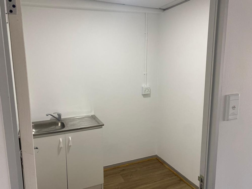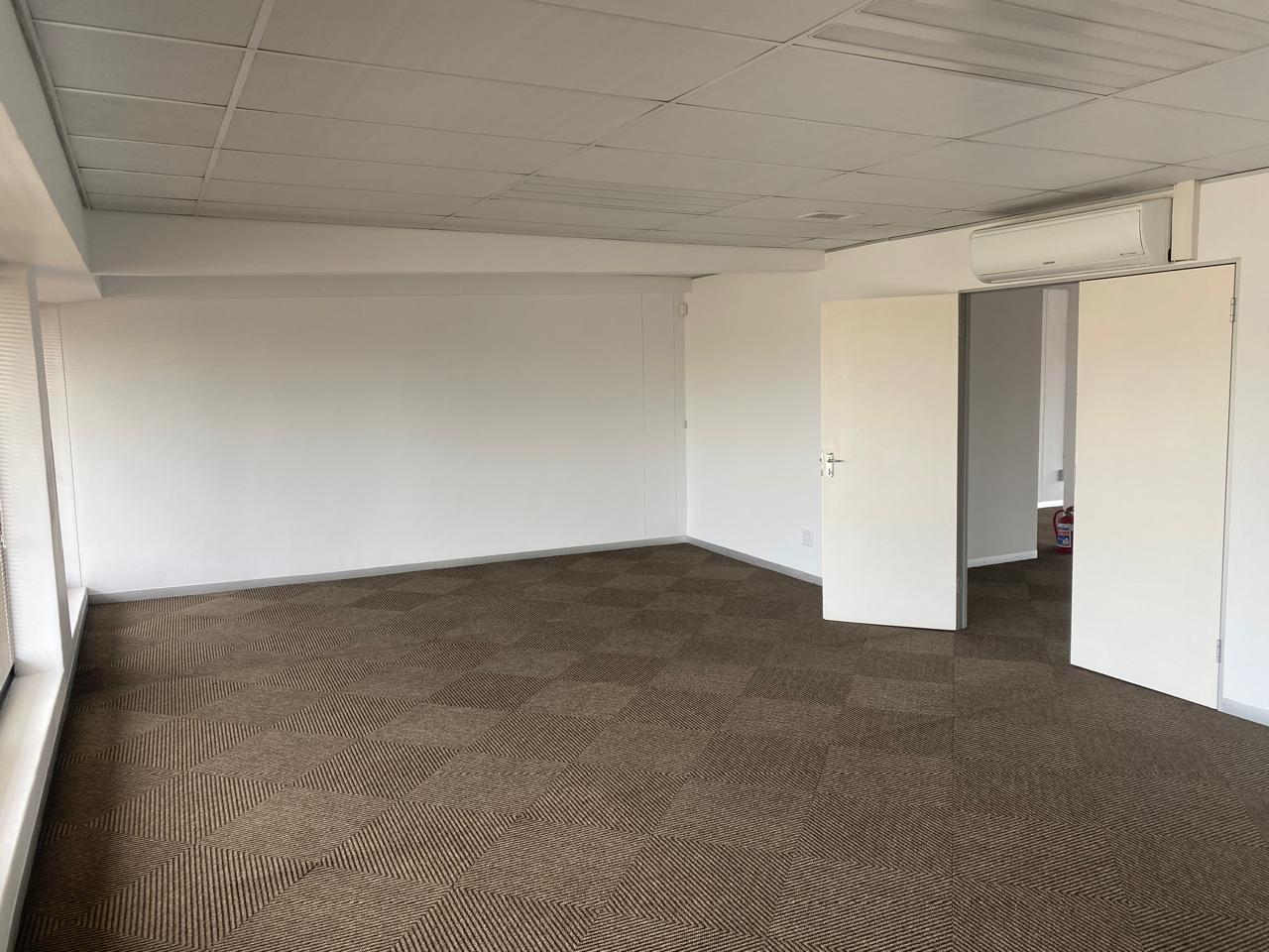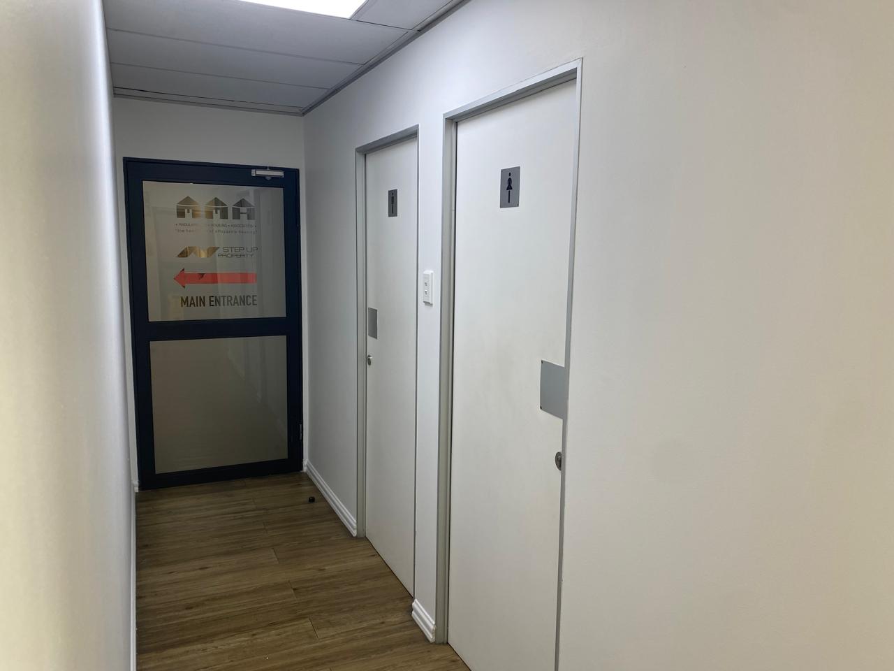 This office is situated in a well-located office building, conveniently near main roads with easy access. Ample public parking is available around the premises. The layout includes two private offices, a spacious boardroom, and an open-plan area upon entry. Additionally, there is a small kitchen, and the space is secure, equipped with two air conditioning units. In the event of load shedding, a generator is available for use. Common restrooms are also provided.