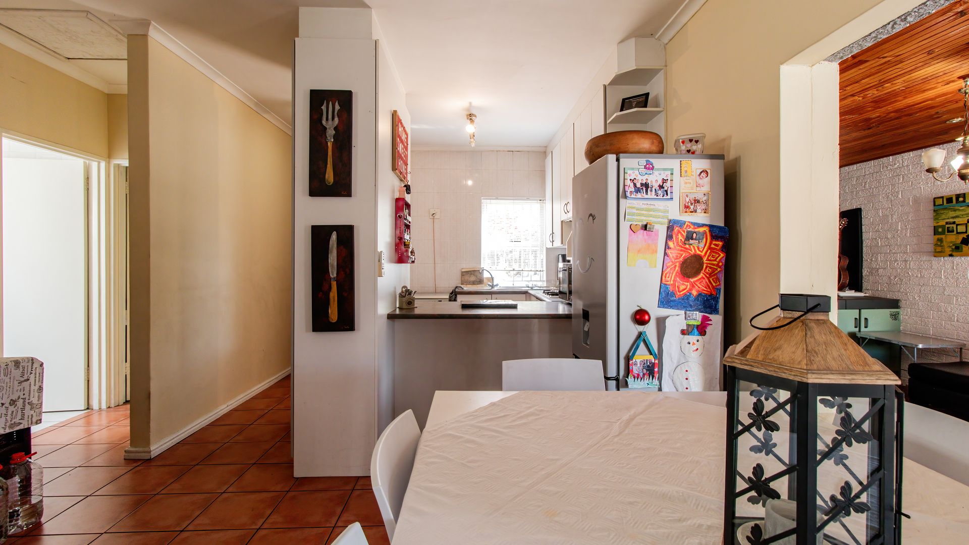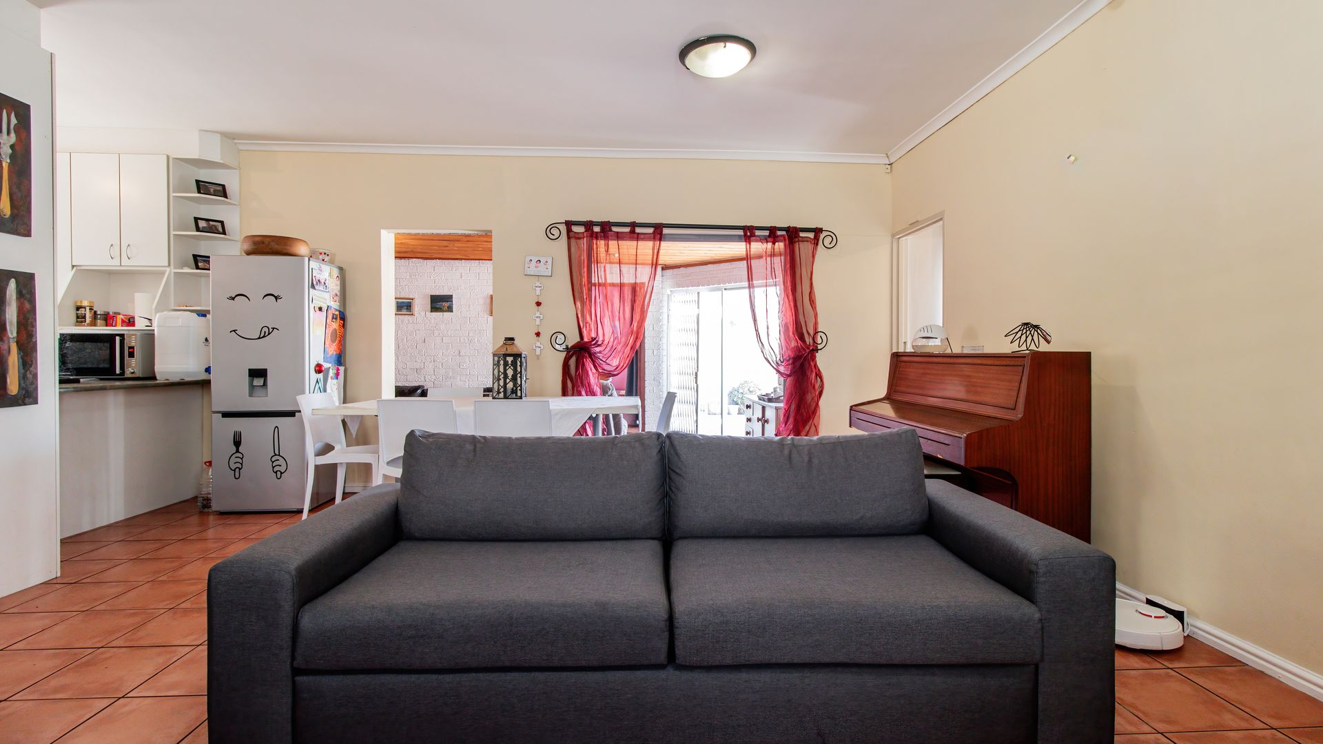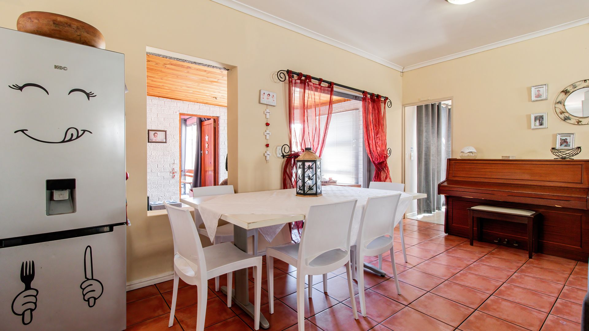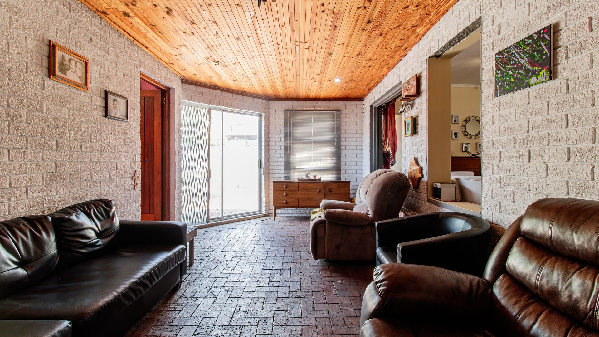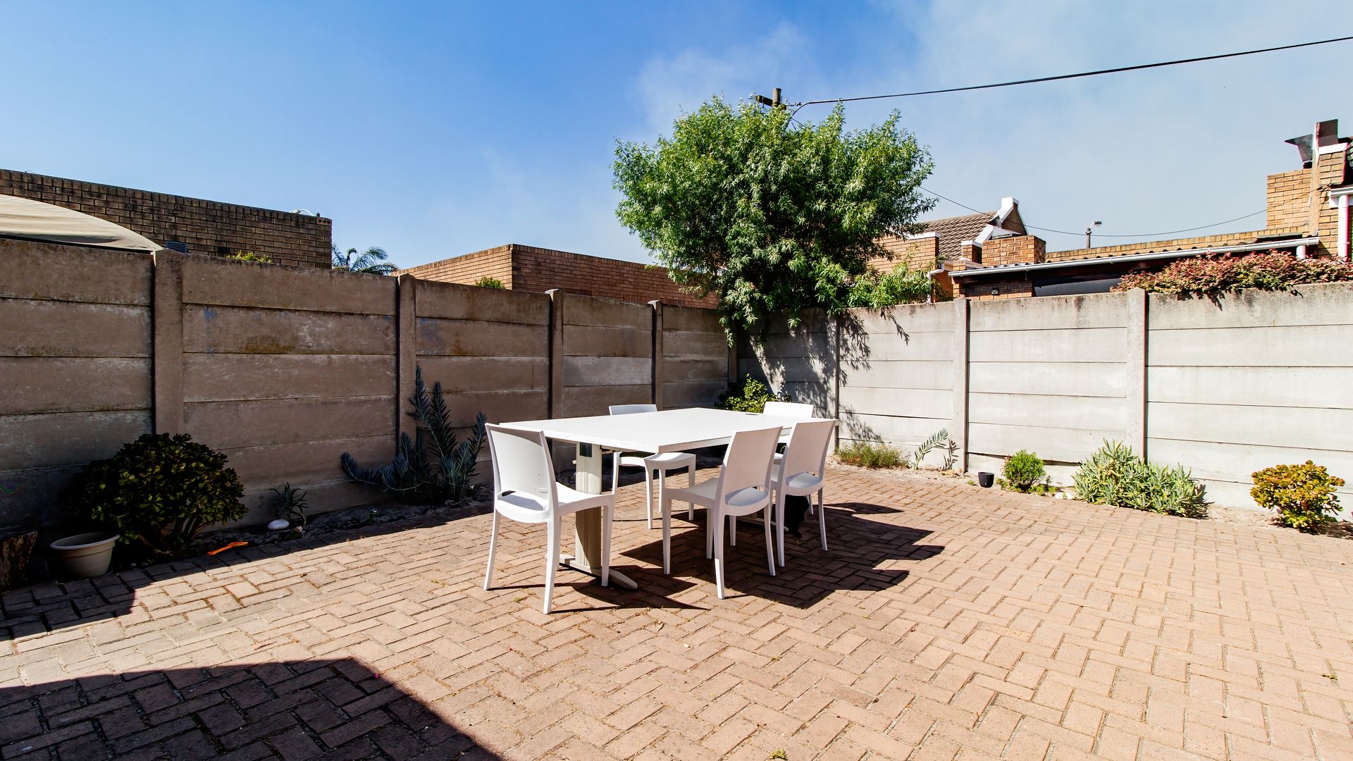 - Enclosed braai patio with sliding doors opening onto a paved backyard.