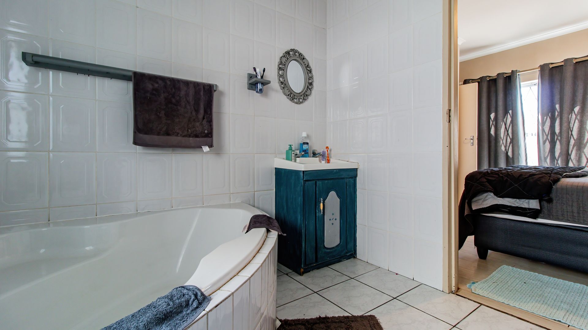 - En-suite bathroom has space for a washing machine.