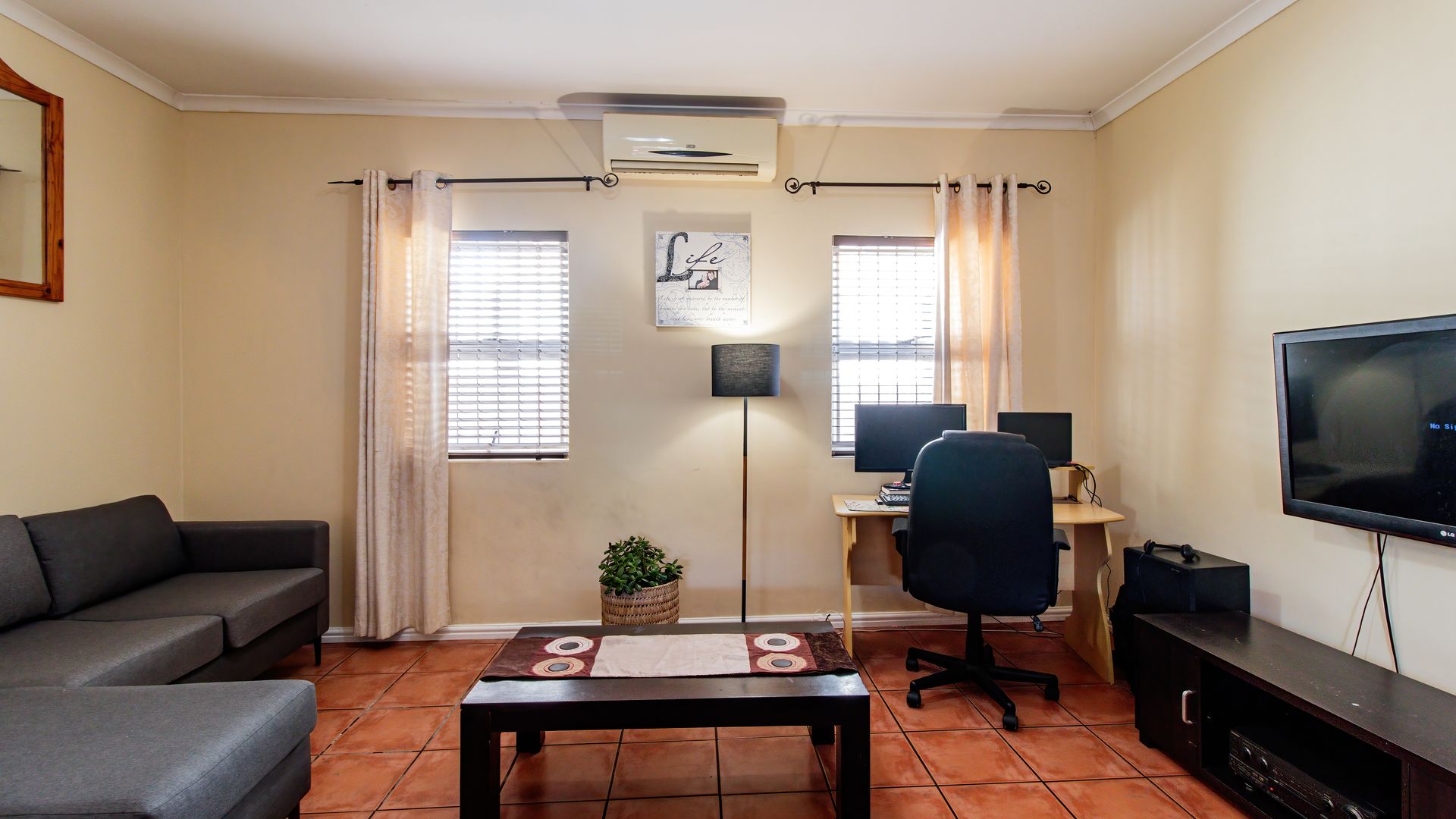 - Tiled living areas with an air con for those hot summer days ahead.