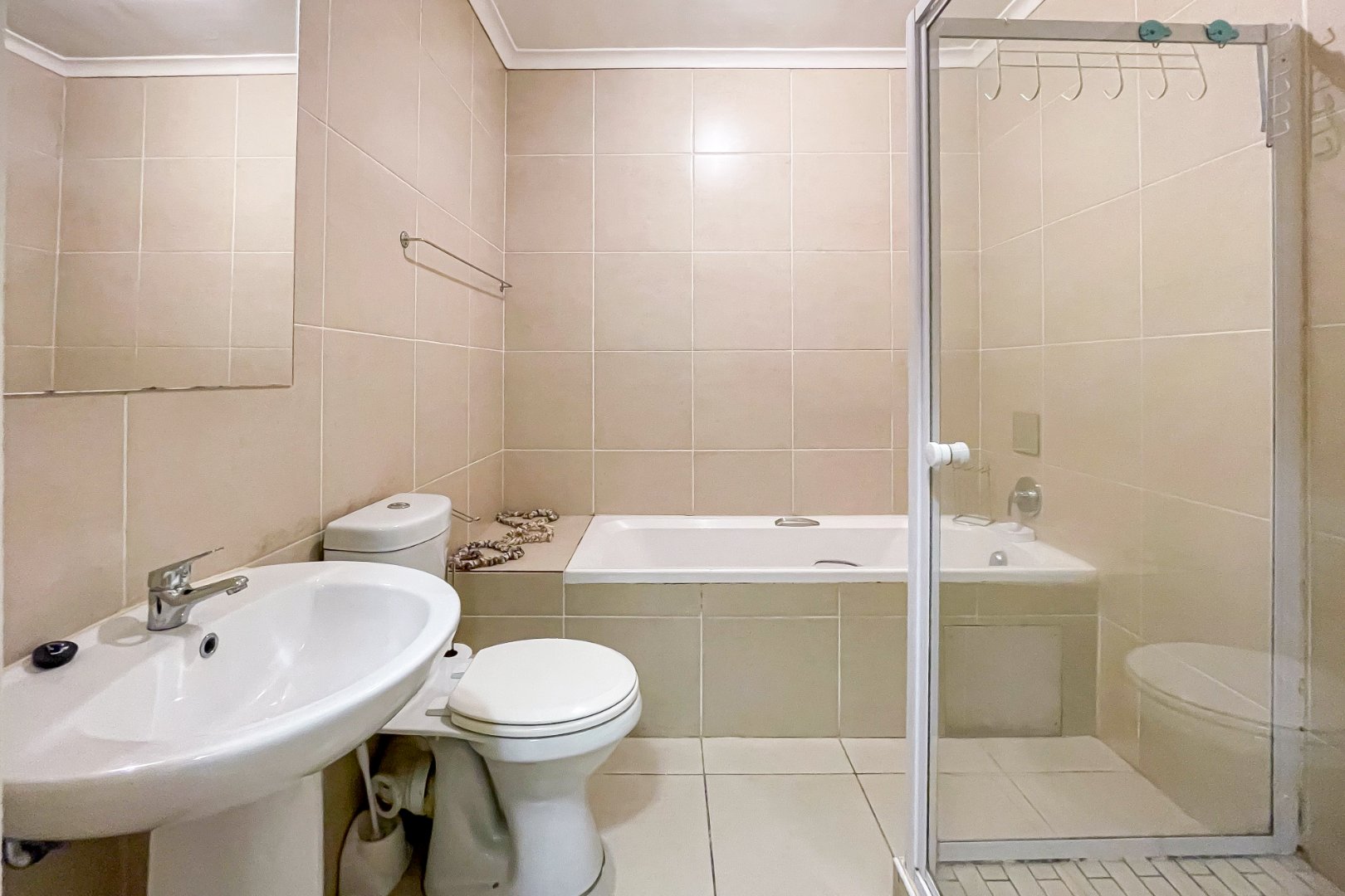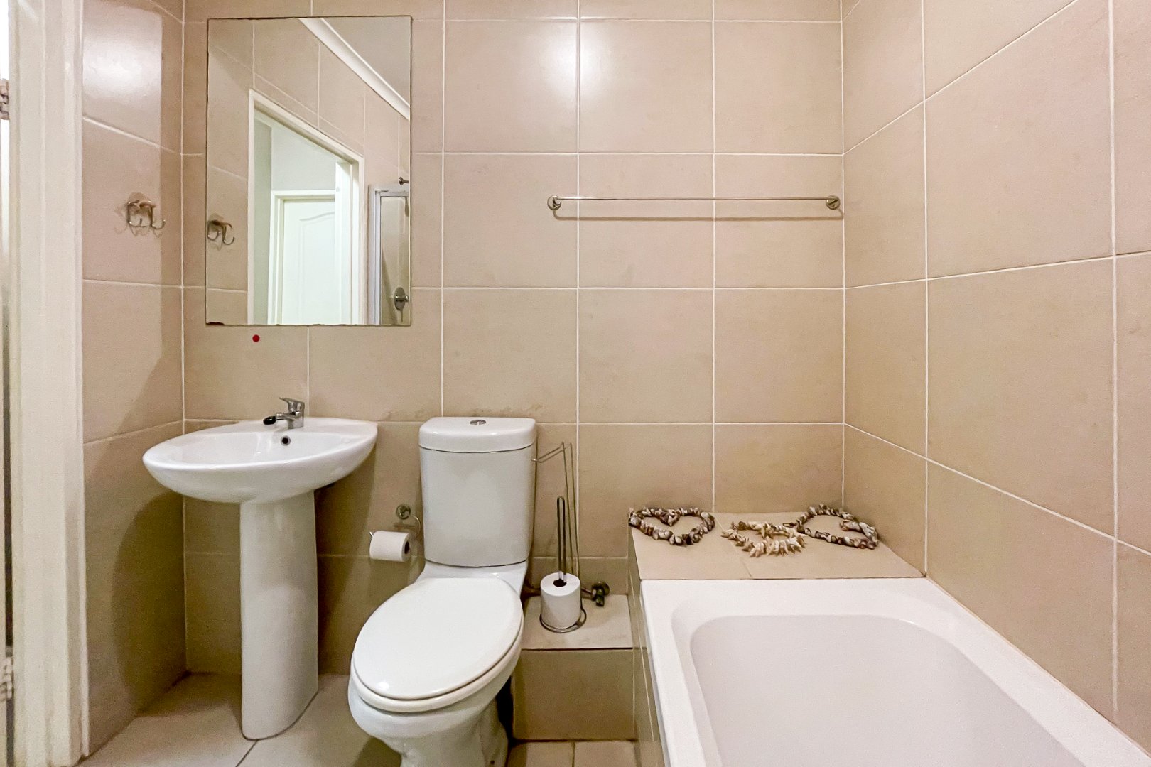 Accommodation includes 2 well-sized bedrooms fitted with built-in cupboards, each bathed in natural light to create a calming and restful retreat. The bathroom has been upgraded with tasteful finishes, offering a serene space to unwind with a hot shower or quick refresh.