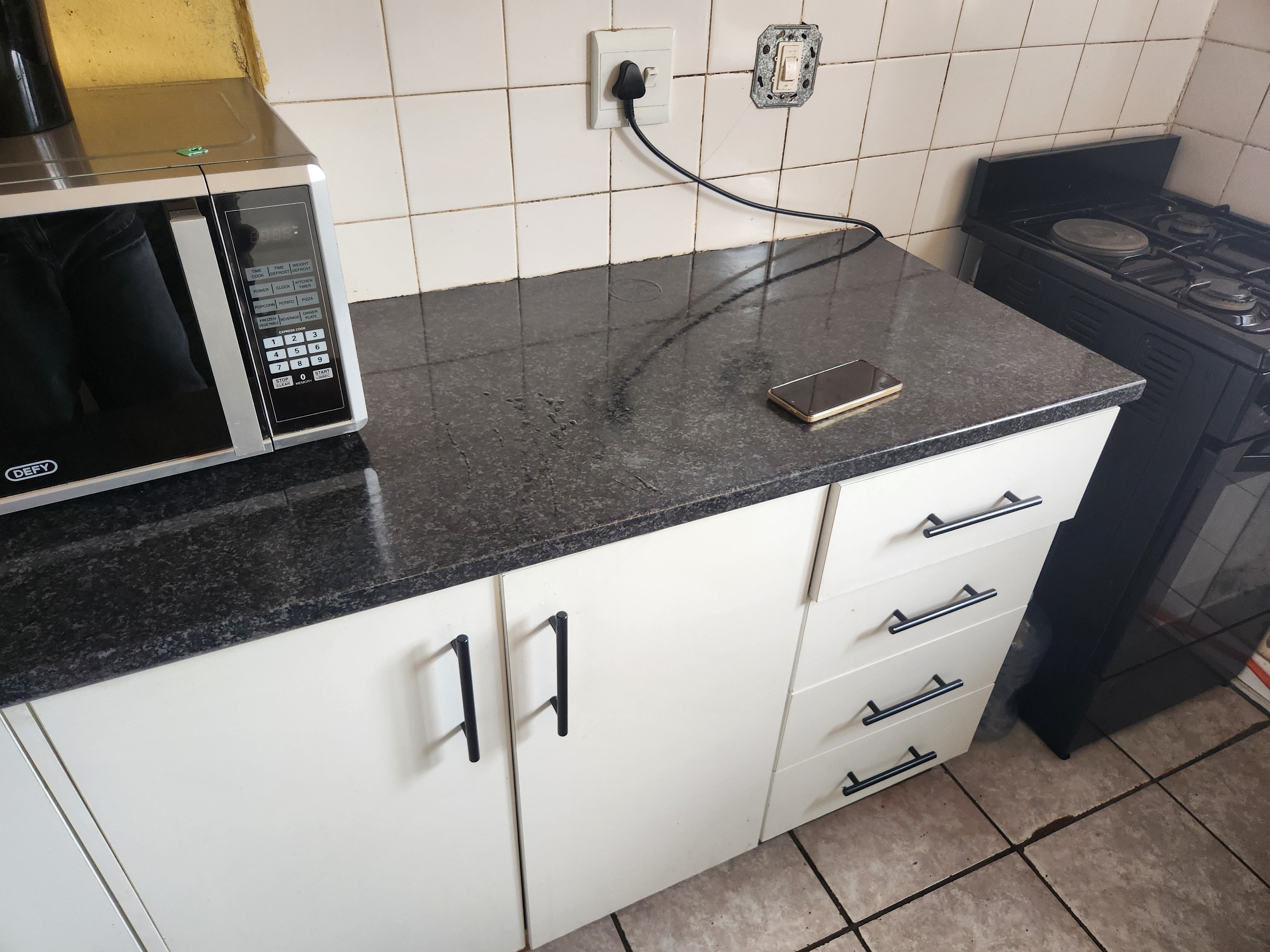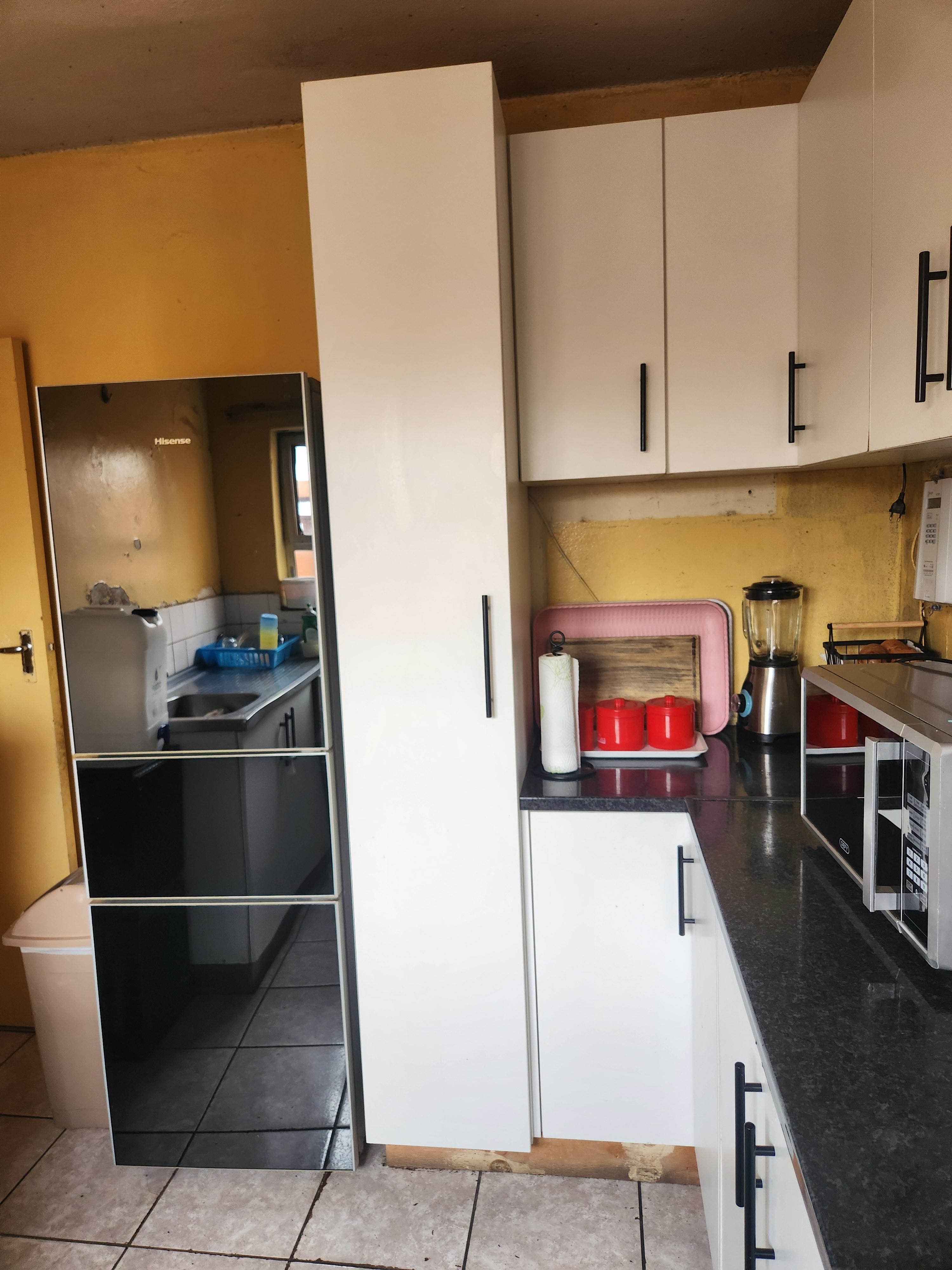 It's a beautiful unit, consists of 3 bedroom, lounge with veranda, fully fitted kitchen and bathroom with toilet, base and shower. It's on the first floor makes it easier to move in. Easy access to the main road. Covered parking bay. Remoted gate with security always on guard. Don't let it pass by!!!