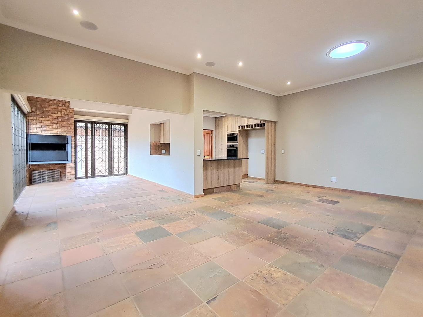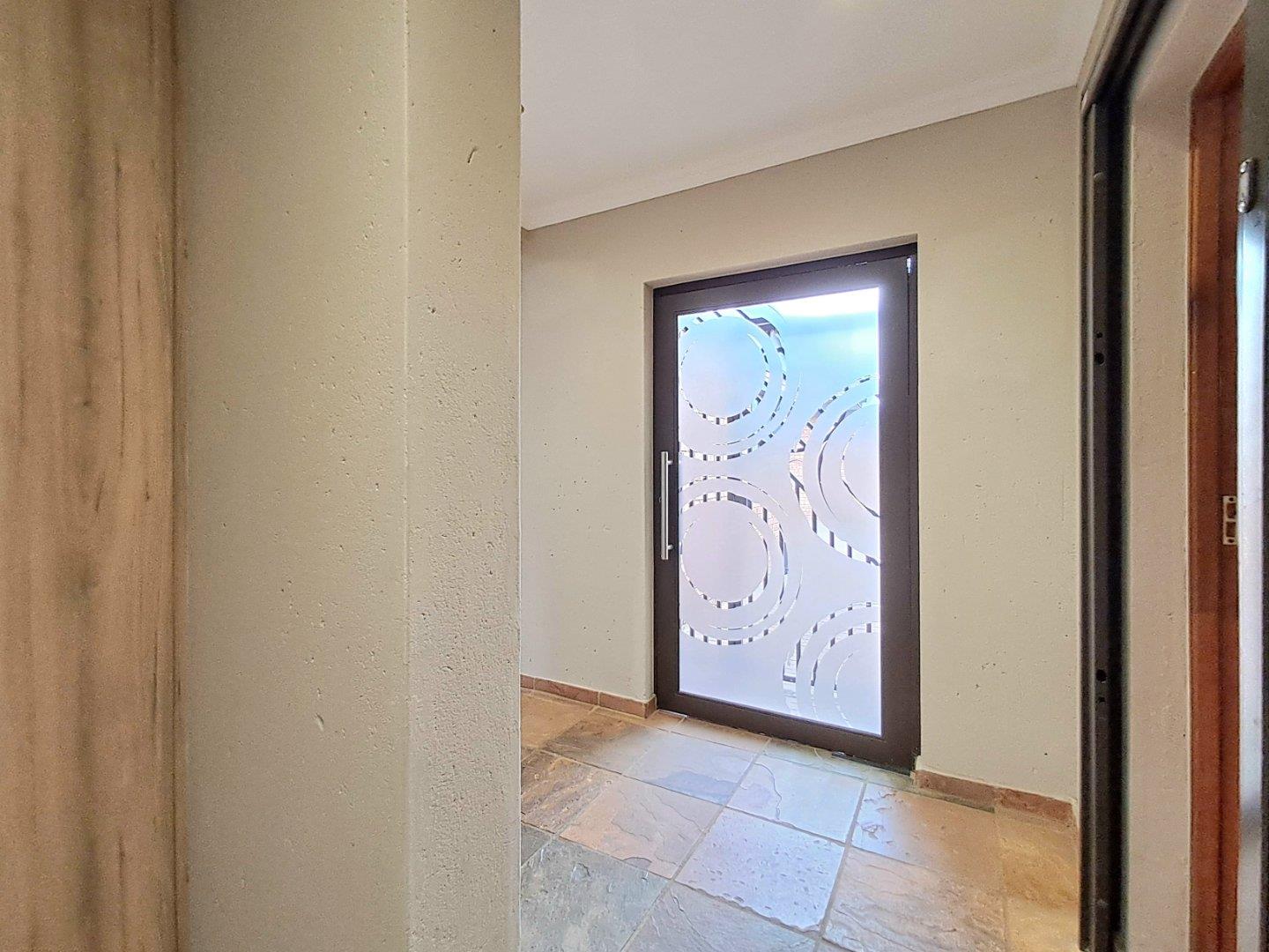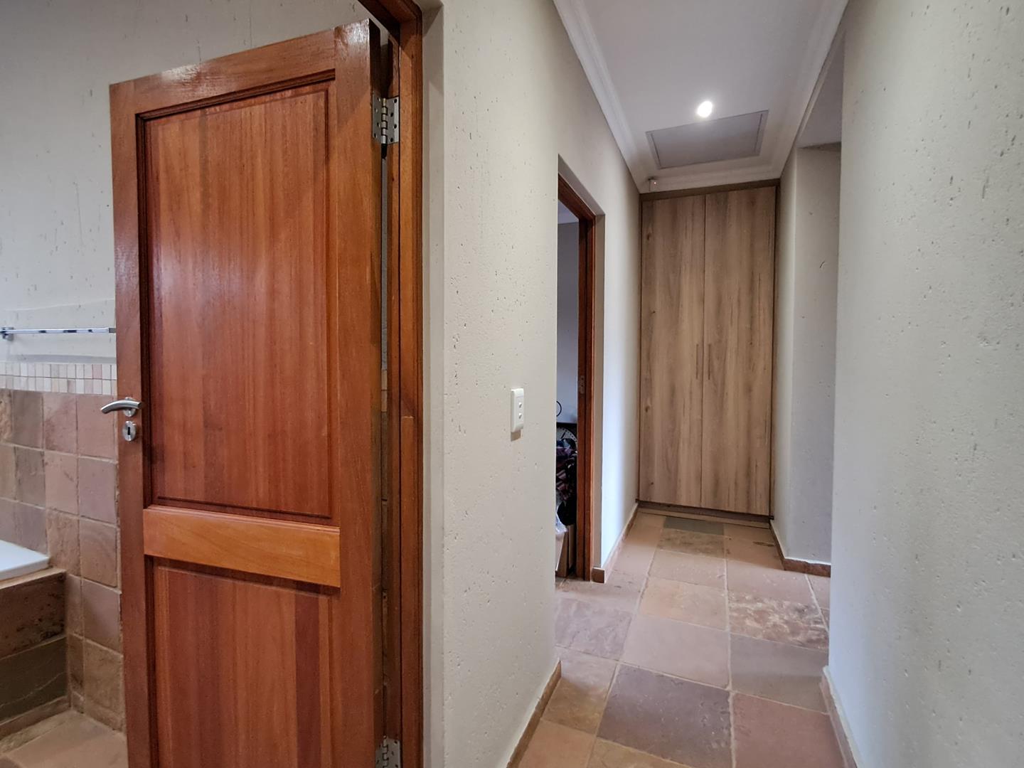 Additional features include strategically placed skylights in the kitchen and lounge area, a solar geyser for energy efficiency, and Trellidors along with comprehensive security measures throughout the property.