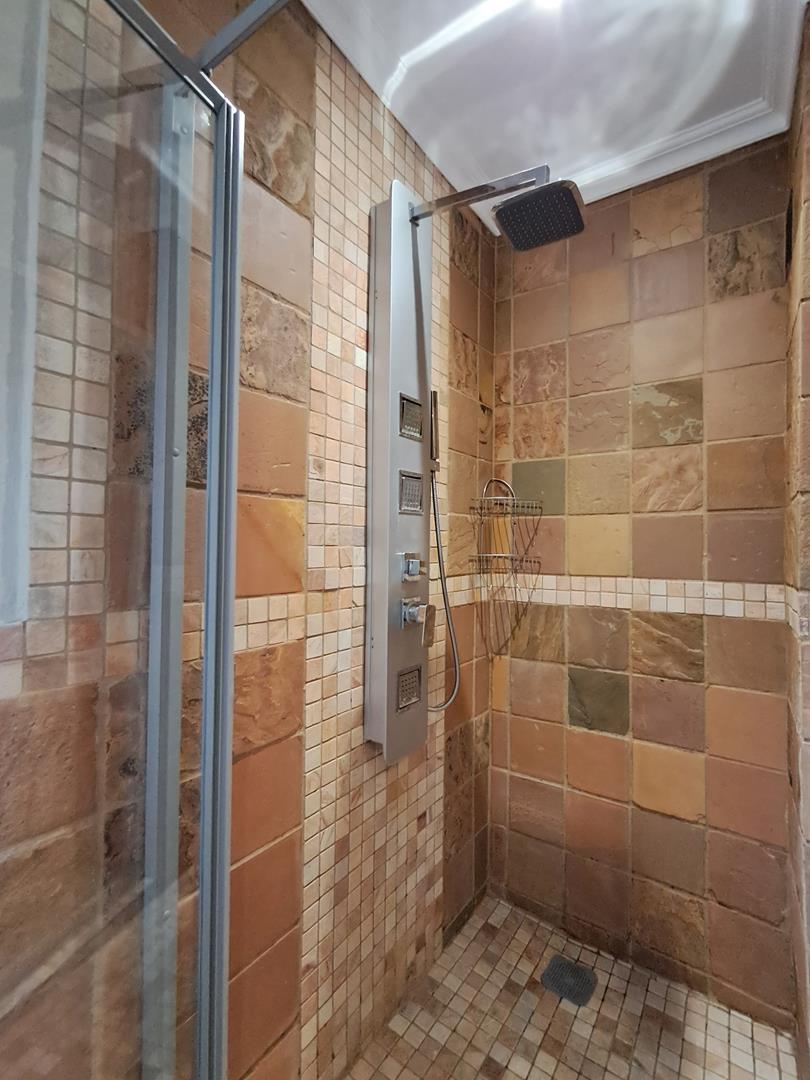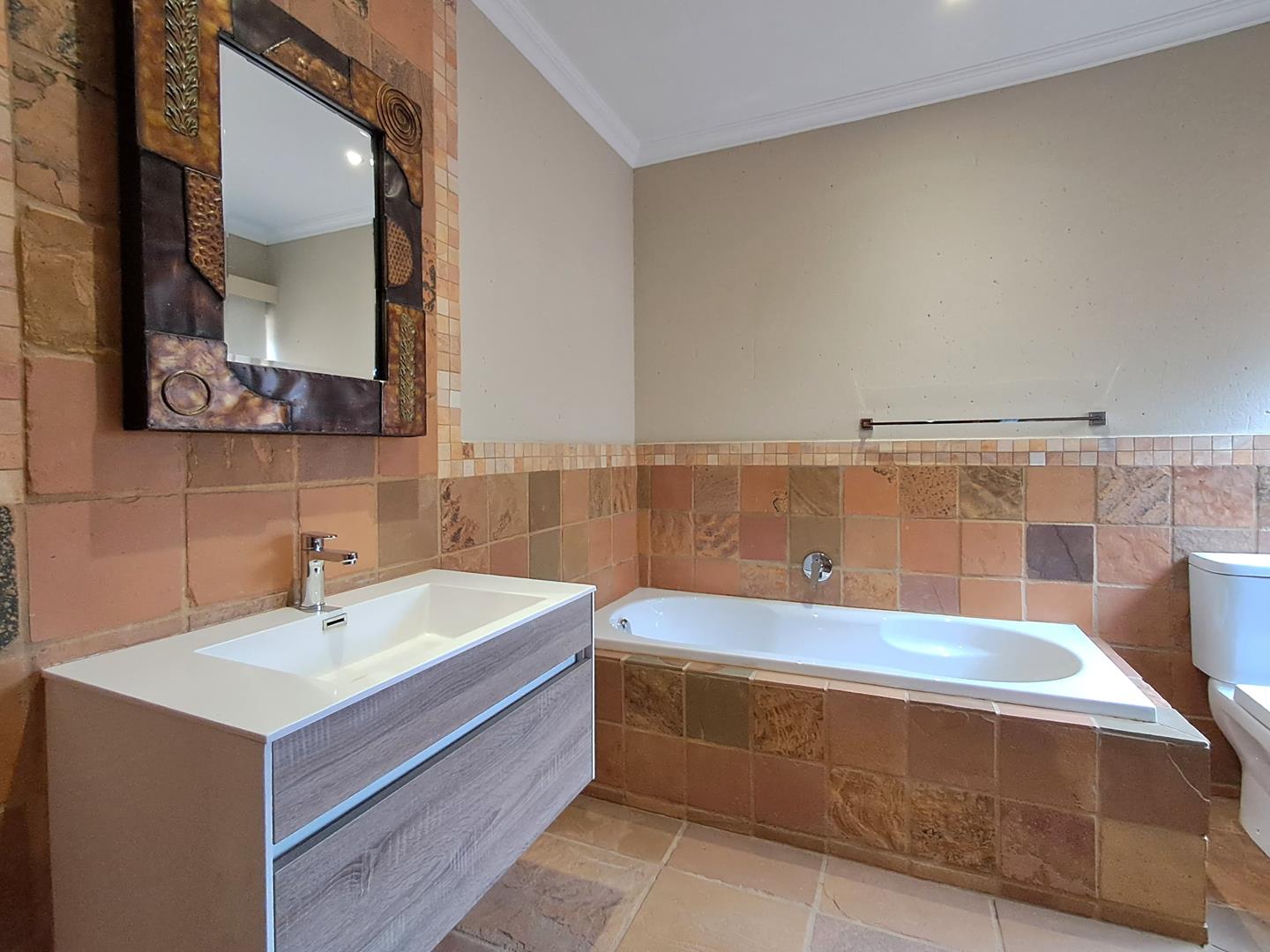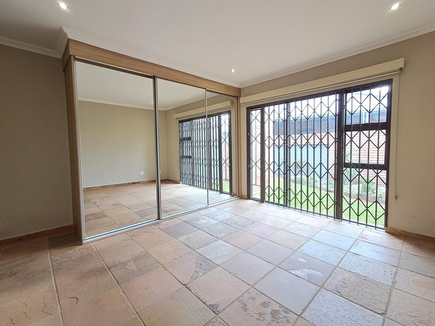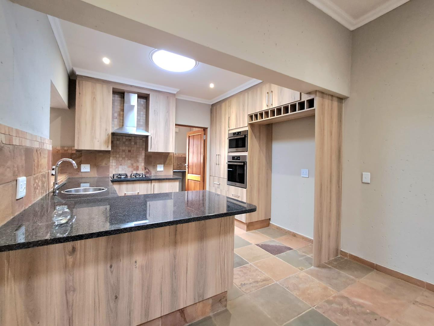 Additional features include strategically placed skylights in the kitchen and lounge area, a solar geyser for energy efficiency, and Trellidors along with comprehensive security measures throughout the property.