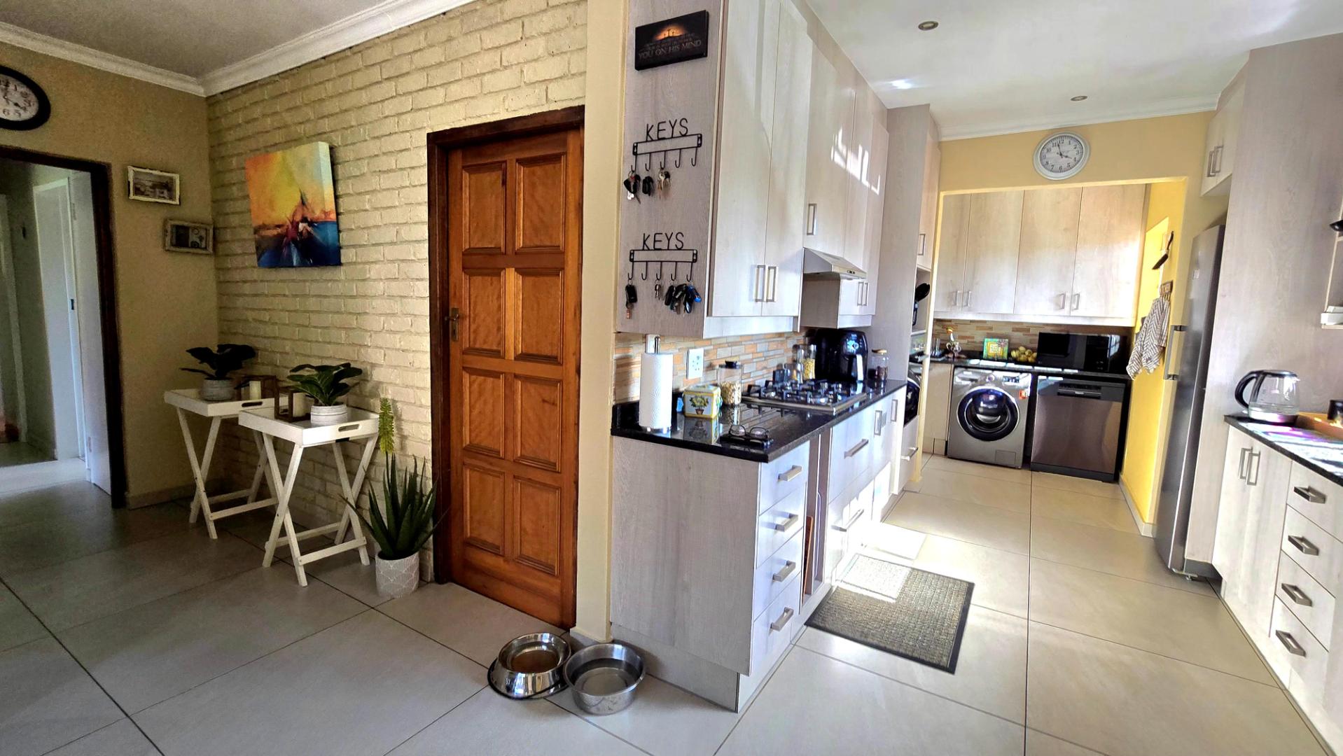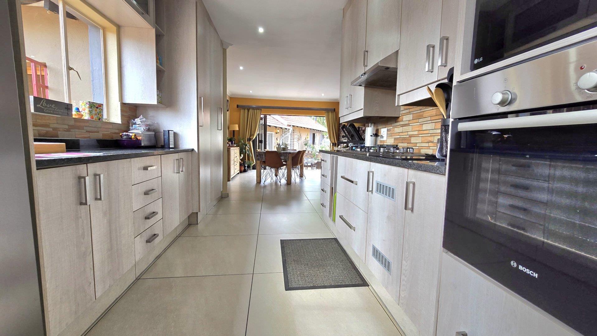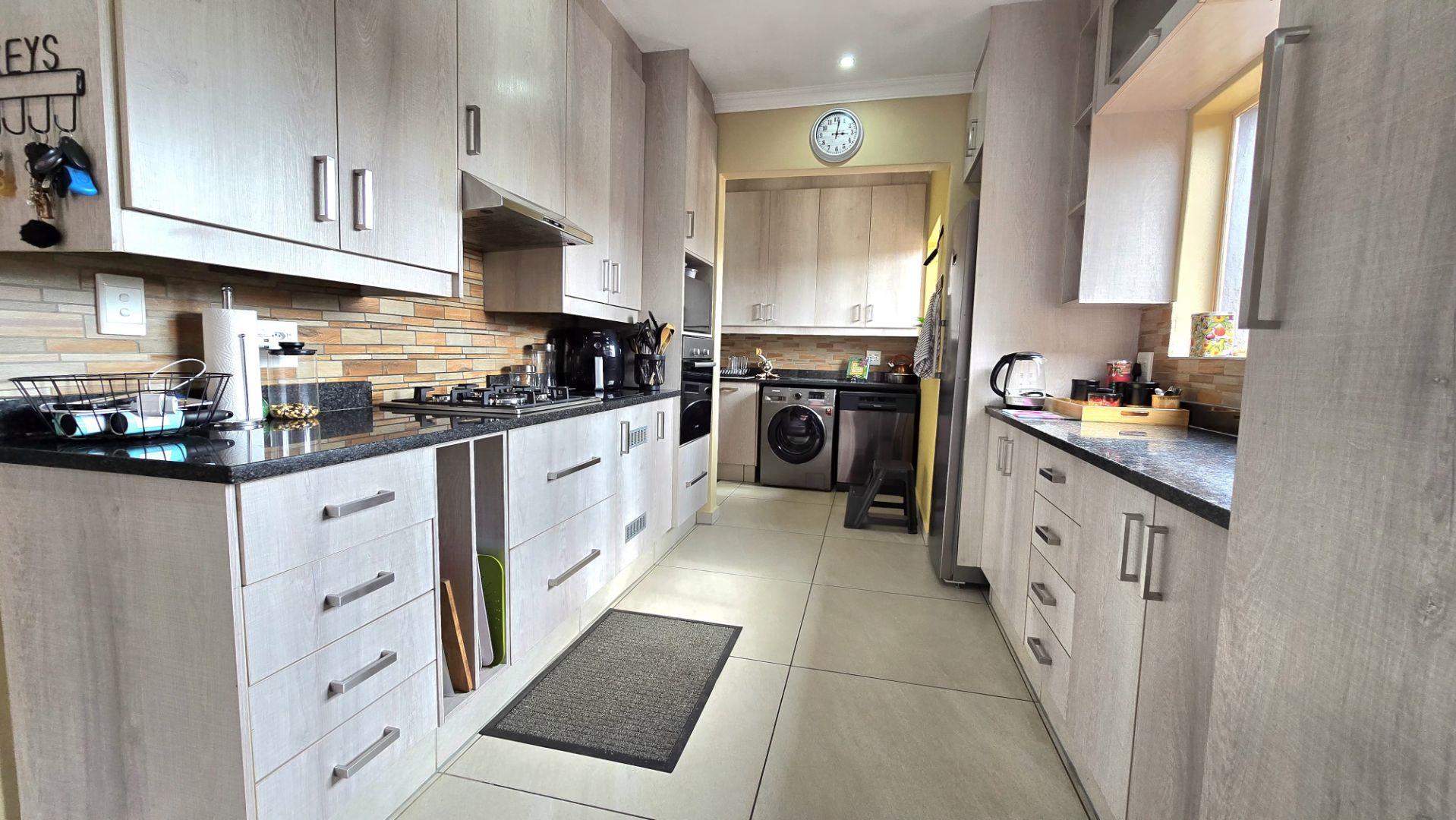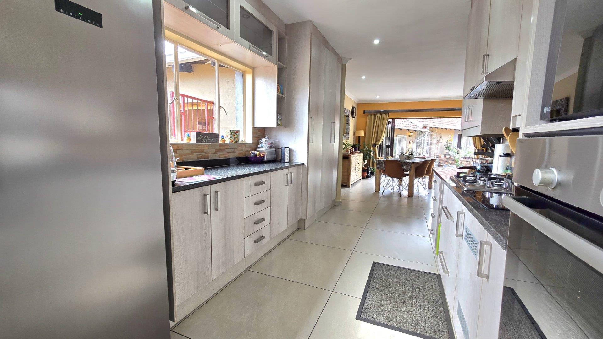 The home boasts four spacious bedrooms and two full bathrooms, each equipped with built-in wardrobes. The master suite is a private retreat, featuring an en-suite bathroom for your convenience. The modern kitchen, complete with a separate scullery, flows effortlessly into the dining area, creating a warm and inviting atmosphere for family gatherings.