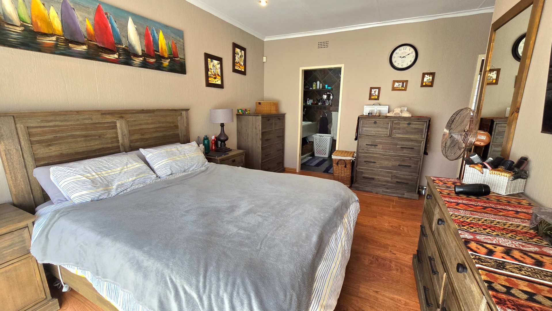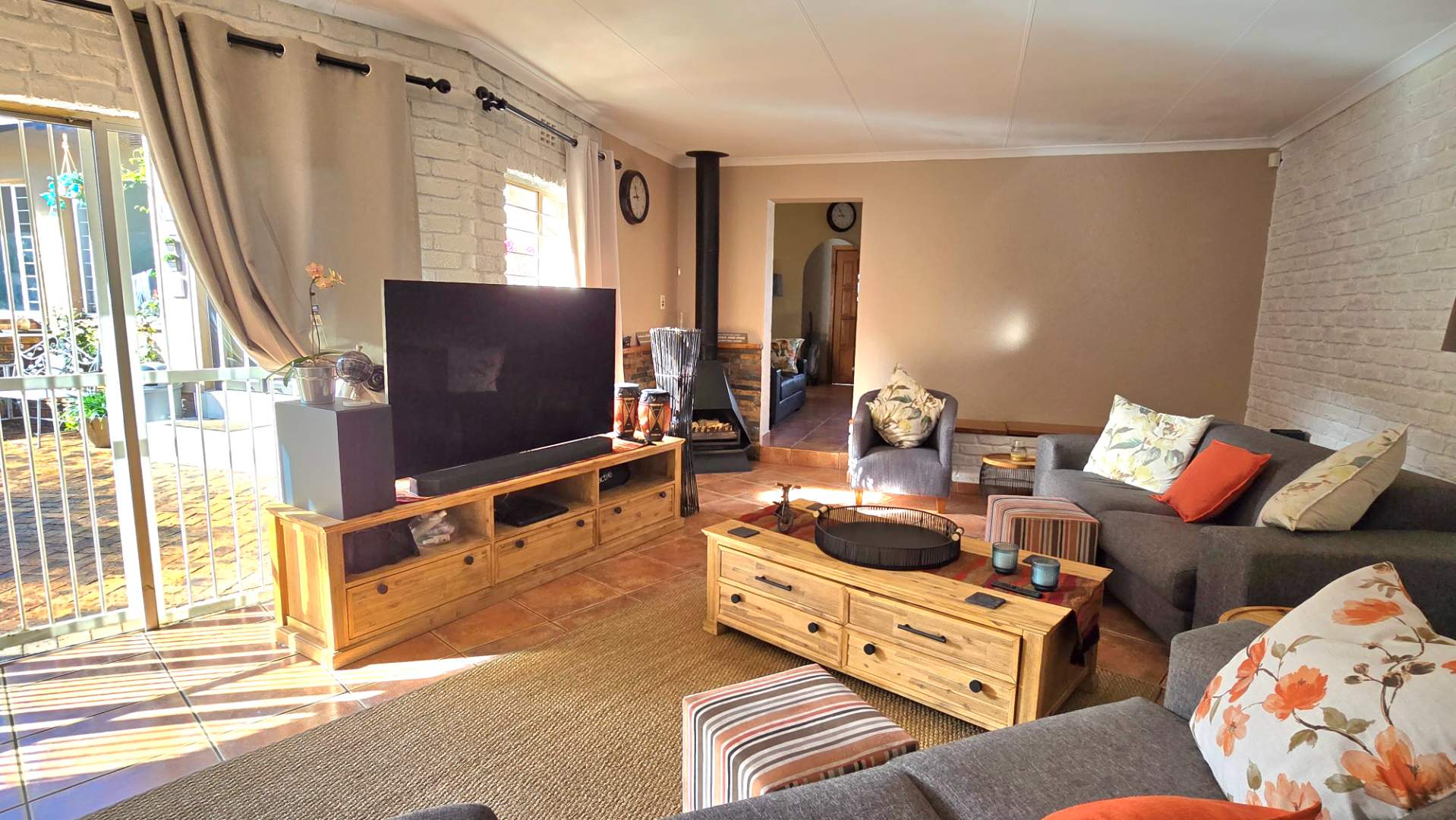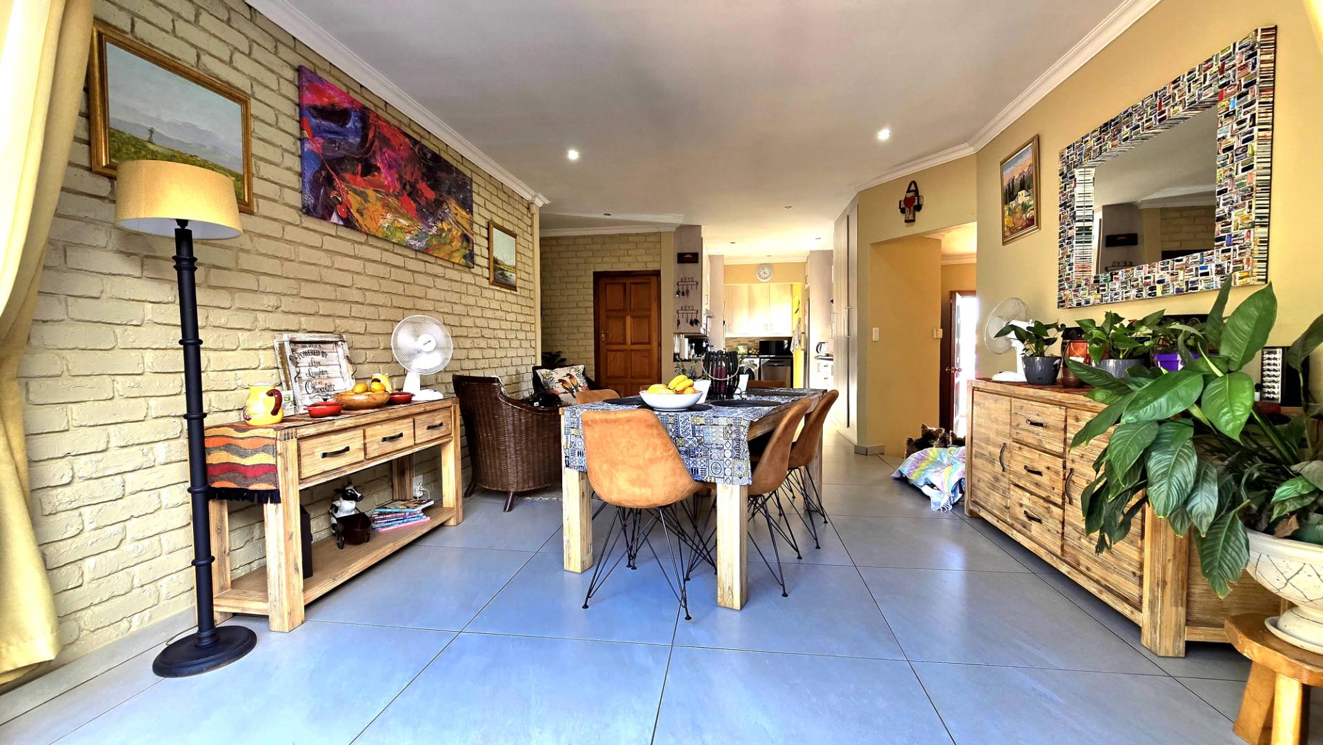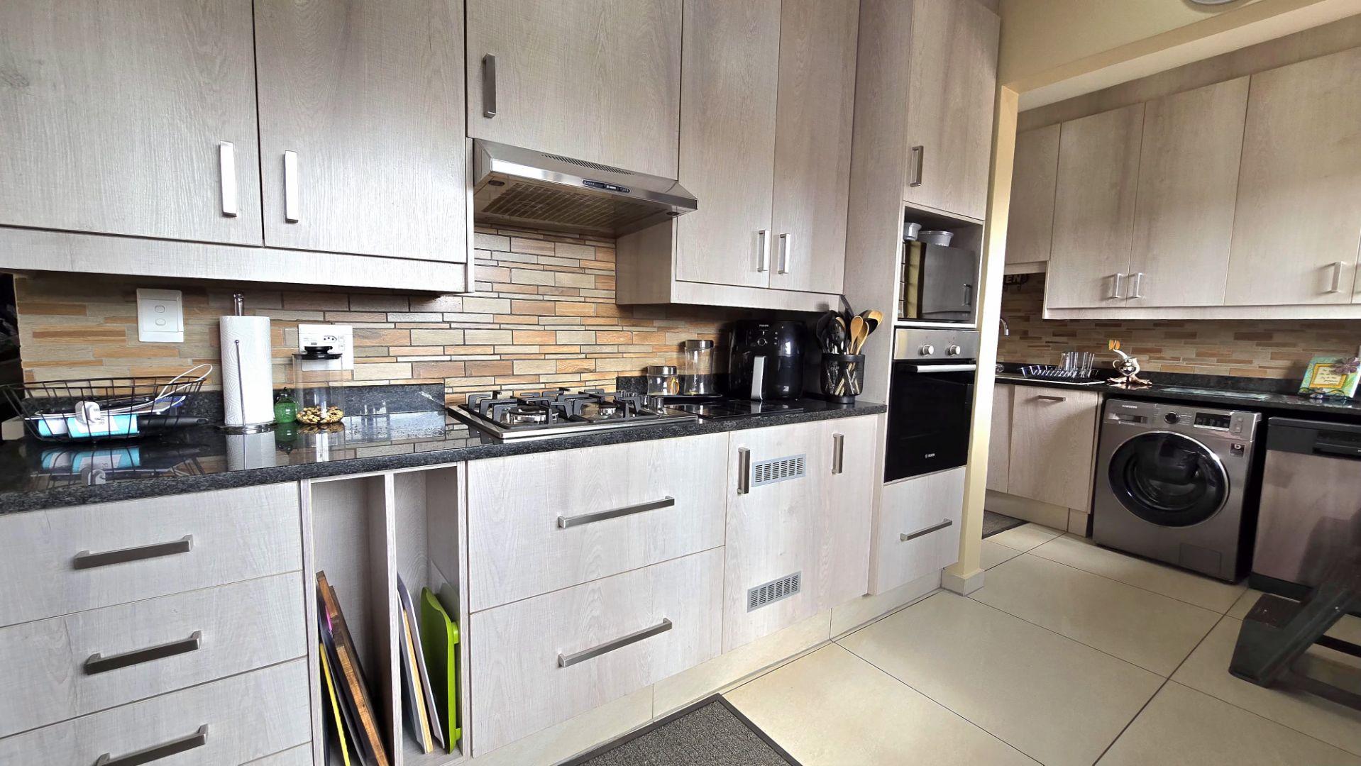 The home boasts four spacious bedrooms and two full bathrooms, each equipped with built-in wardrobes. The master suite is a private retreat, featuring an en-suite bathroom for your convenience. The modern kitchen, complete with a separate scullery, flows effortlessly into the dining area, creating a warm and inviting atmosphere for family gatherings.