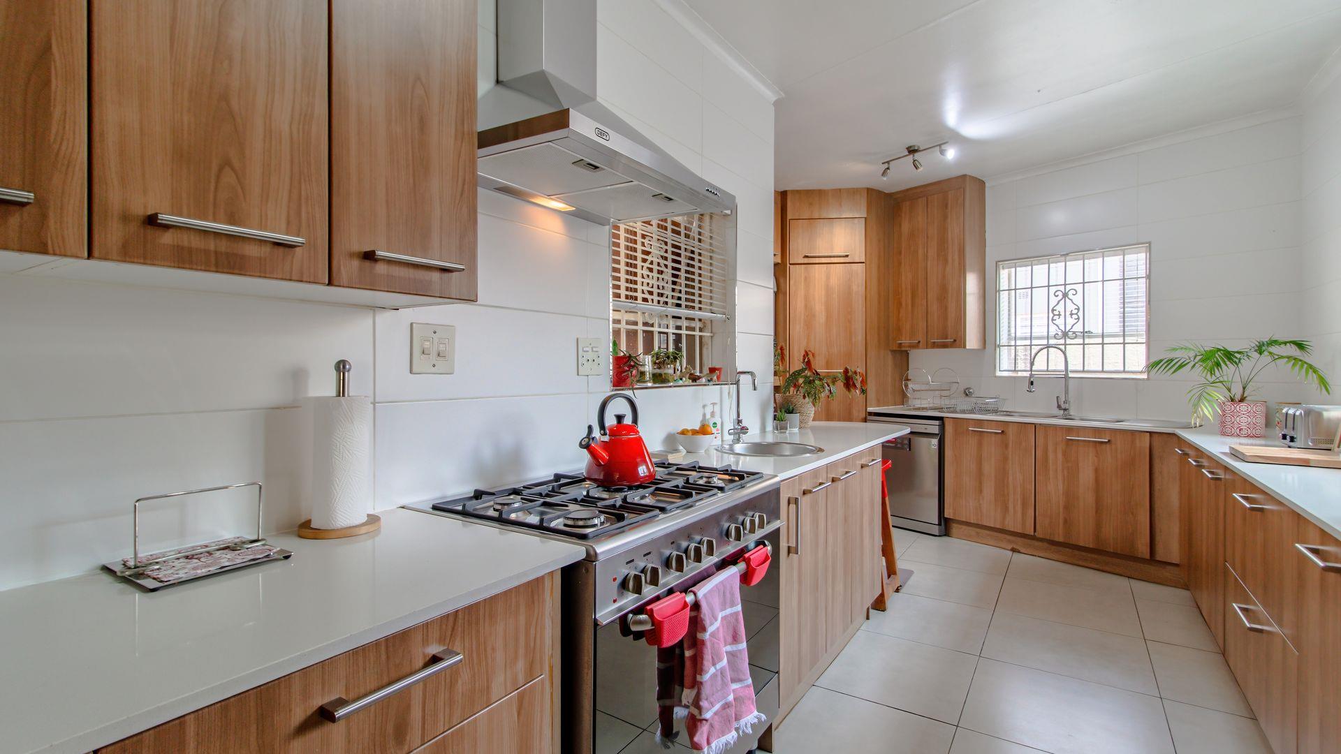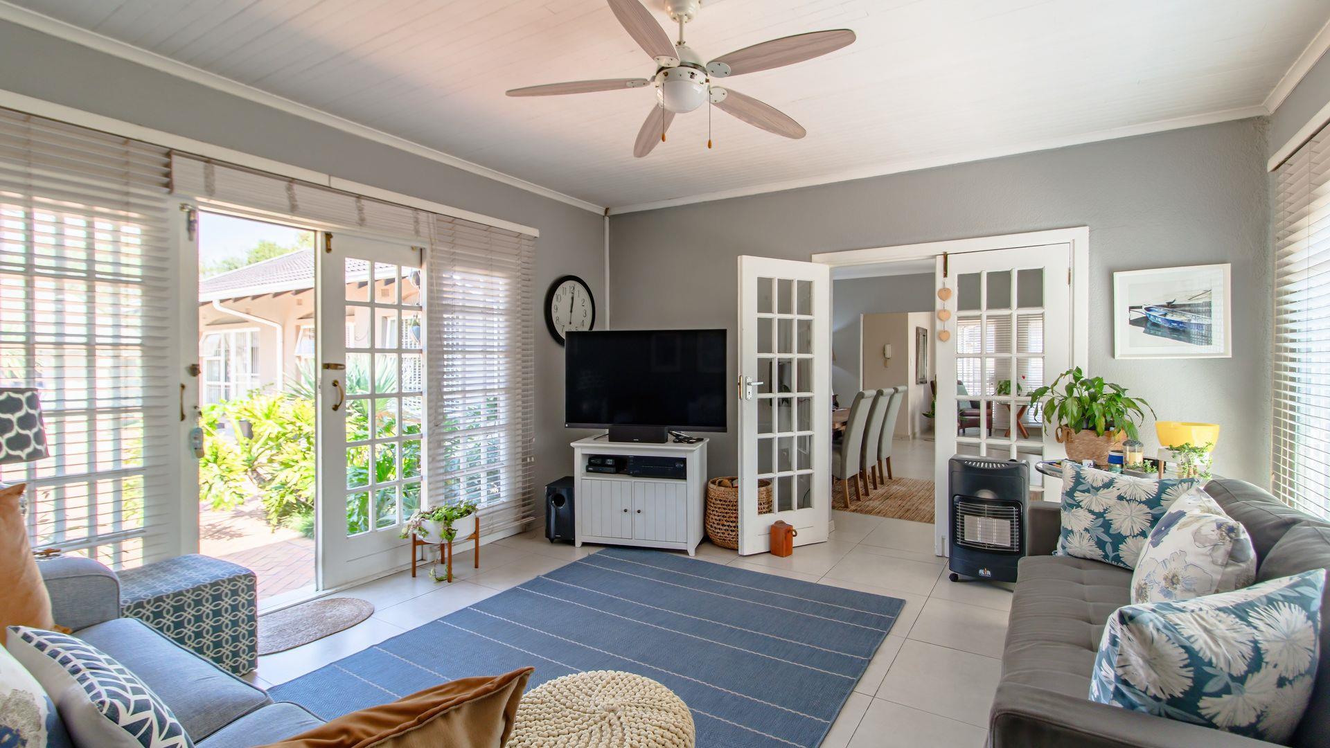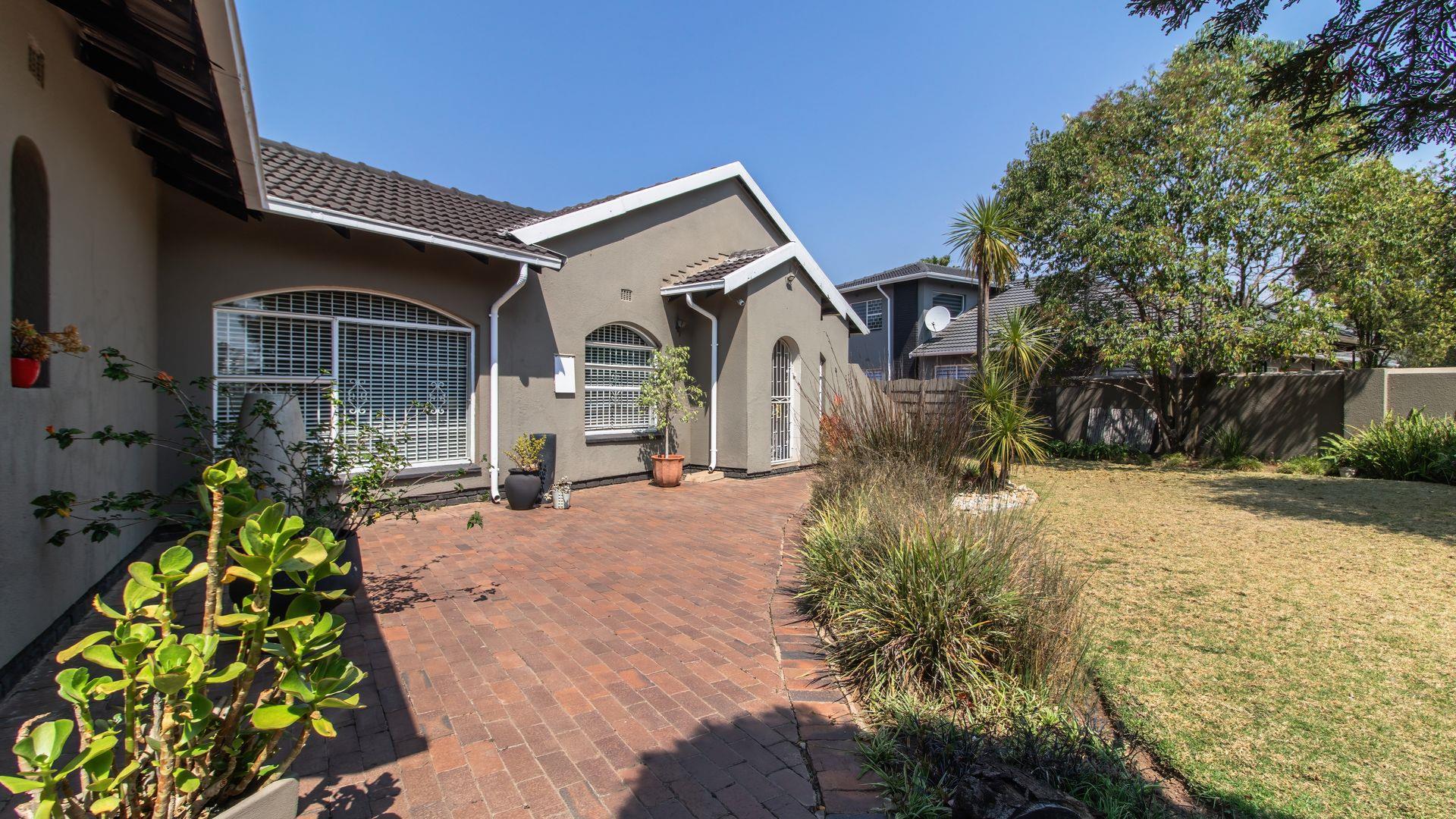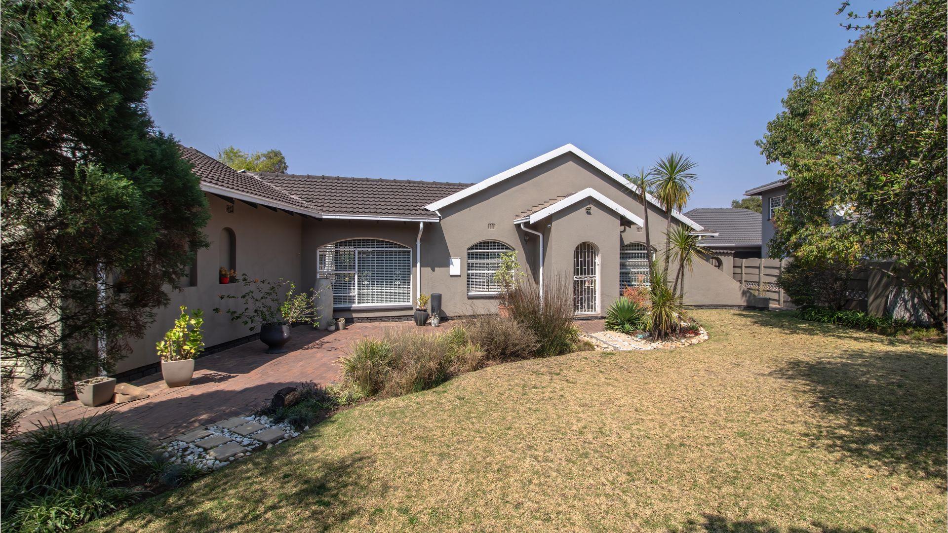 Step outside to explore the beautifully landscaped garden, an ideal setting for family gatherings and outdoor fun. The sparkling pool and thatched area with a built-in braai promise endless enjoyment during warm summer days. Completing this exceptional offering is a double garage and covered parking for at least three vehicles, ensuring ample space for all your transportation needs.